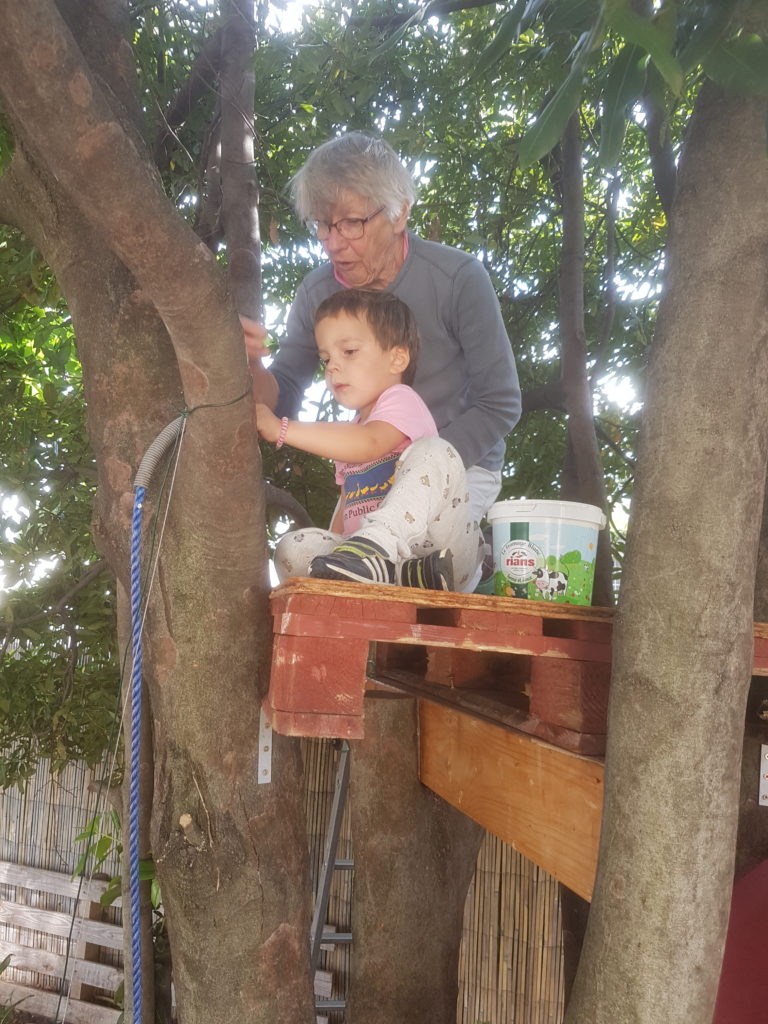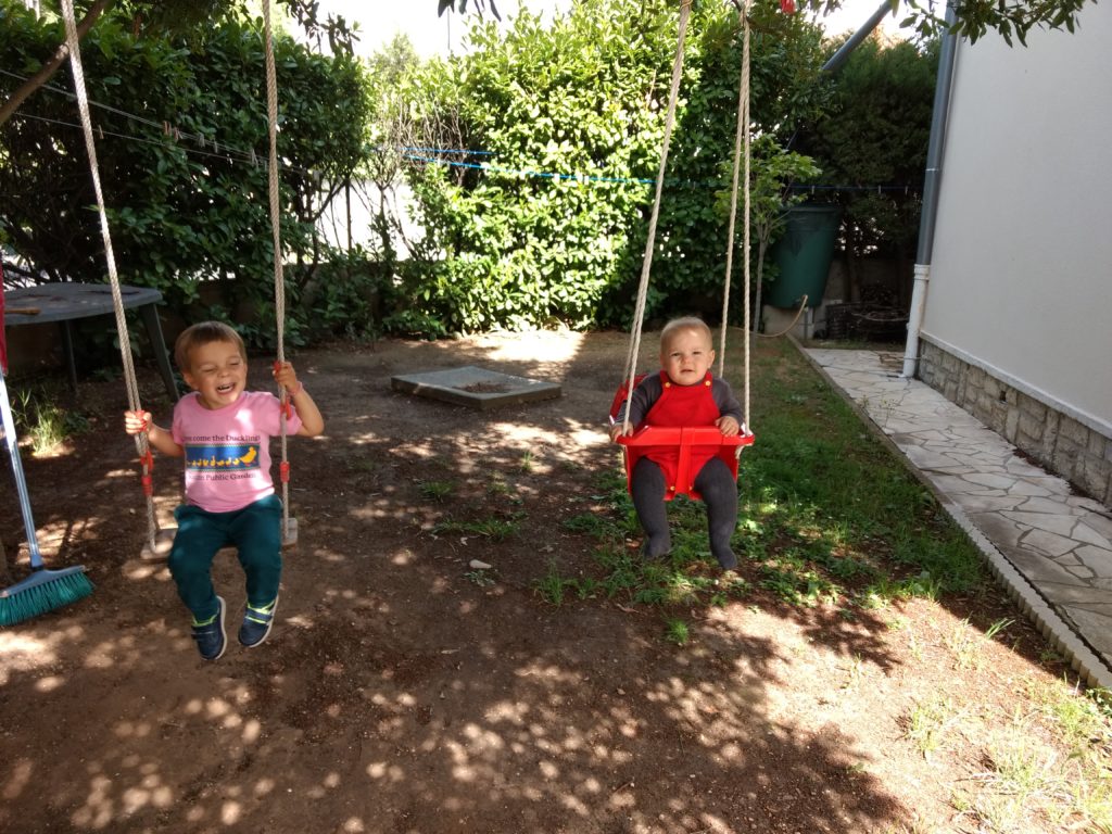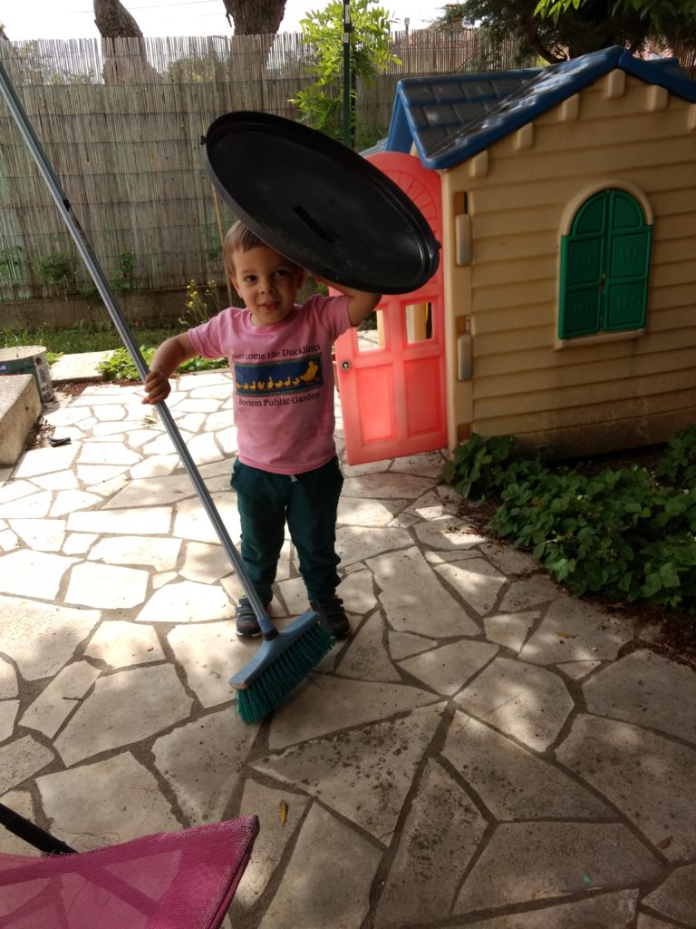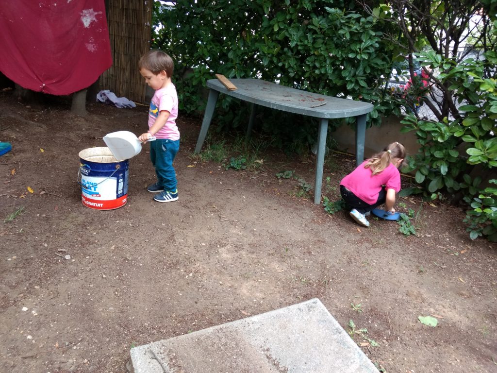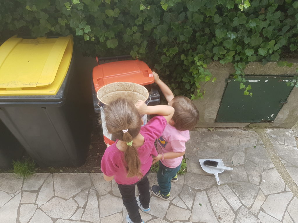 Nous avons quand même profité du jardin (les enfants adorent toujours autant balayer dehors, et ils se mettent à deux pour vider leur seau dans la poubelle).