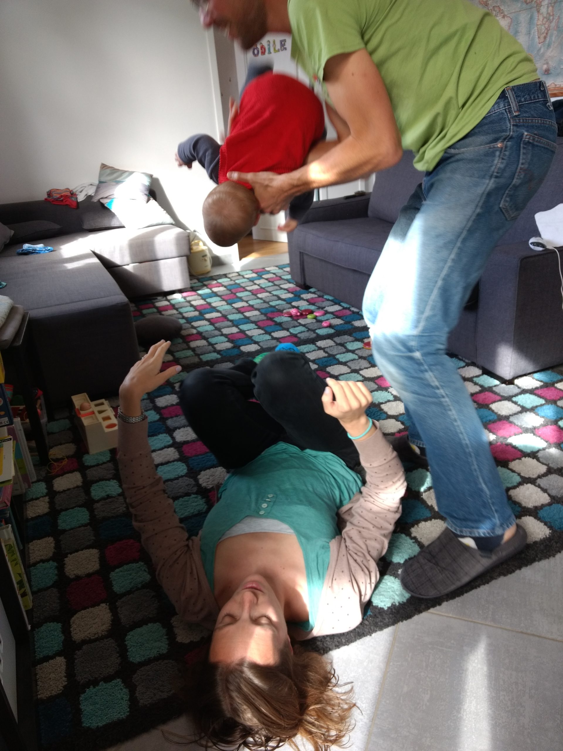 Nous avons quand même profité du jardin (les enfants adorent toujours autant balayer dehors, et ils se mettent à deux pour vider leur seau dans la poubelle).