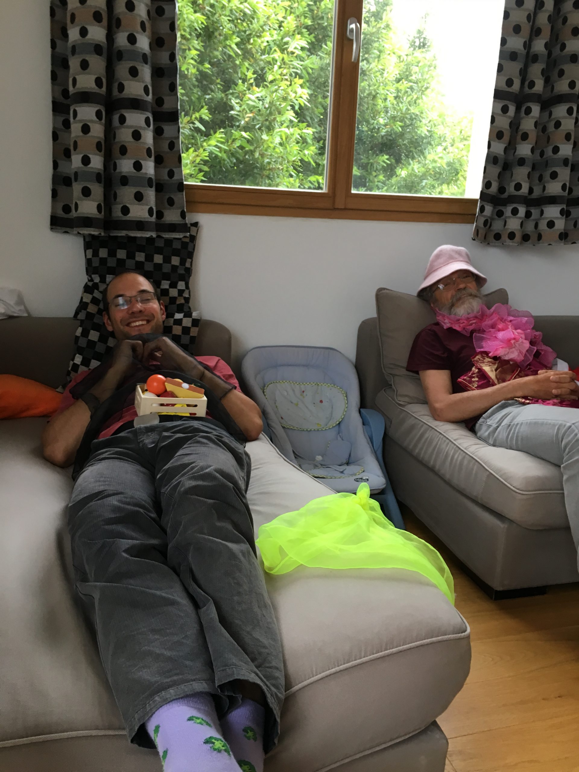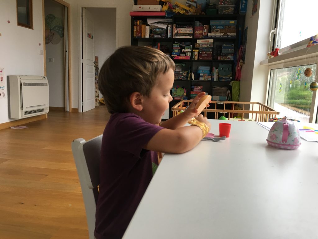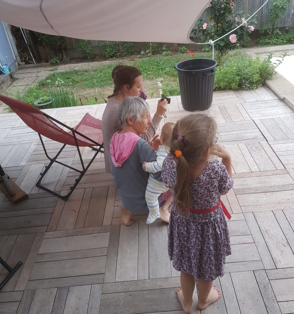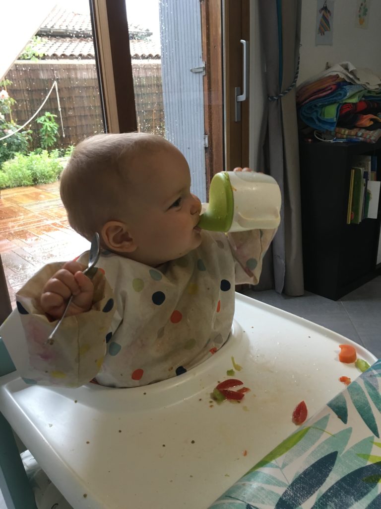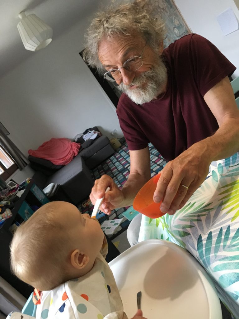 Odile est bien habituée à ses grands-parents, c’est Grand-Papa qui lui a donné à manger ce midi 🙂