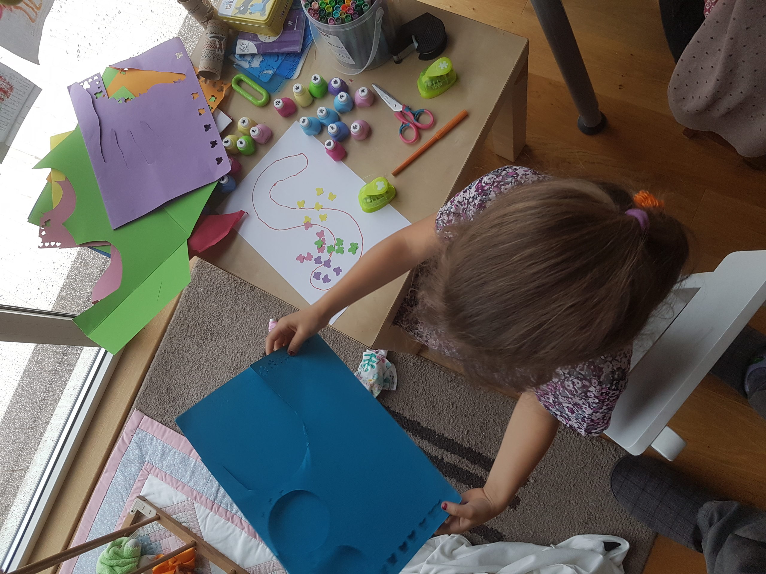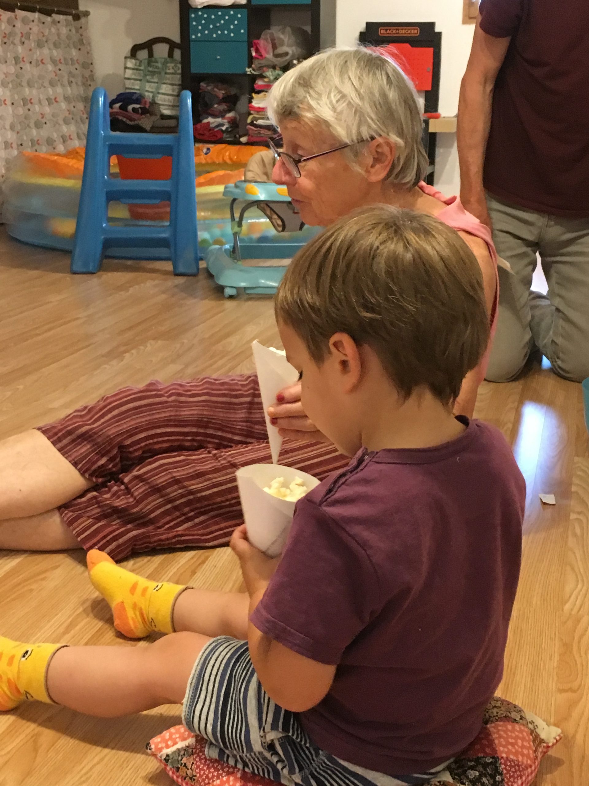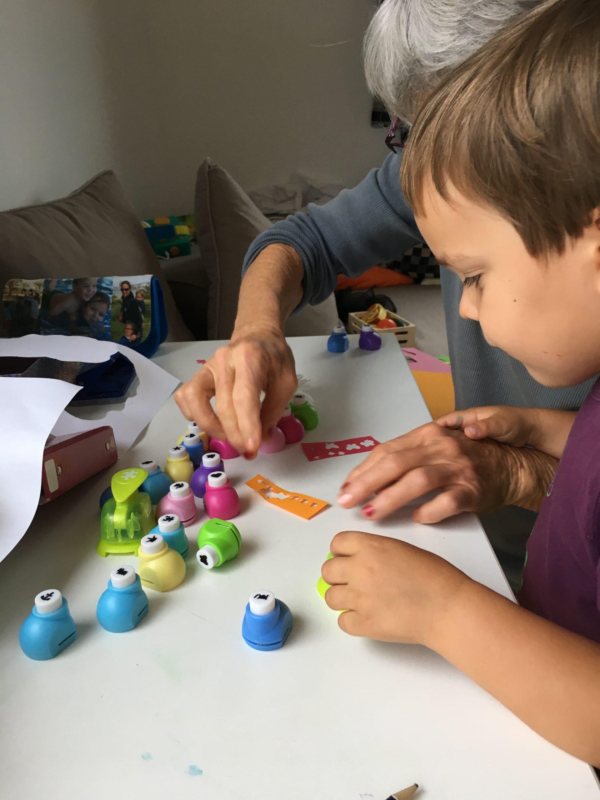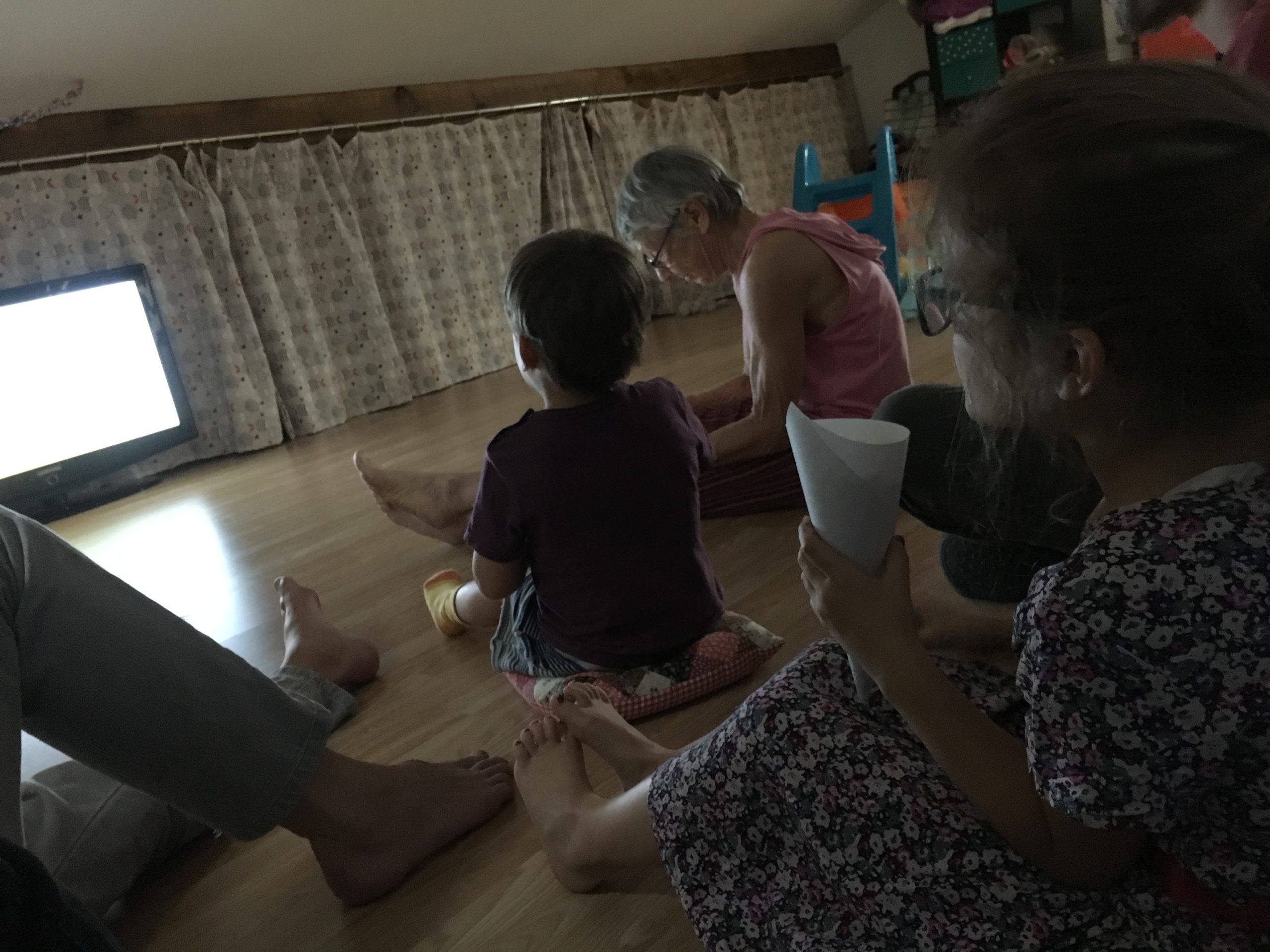 Alors dès qu’Odile a été à la sieste, nous avons lancé notre grand projet cinéma ! Nous avons préparé la salle – Cinémezza -, les popcorns, et Lucie a préparé l’affiche du film – Ernest et Célestine : Bibi et Une étoile pour Celestine.