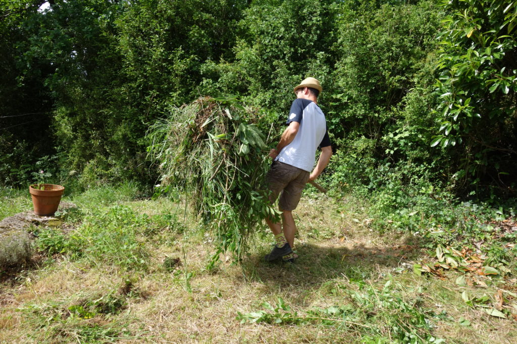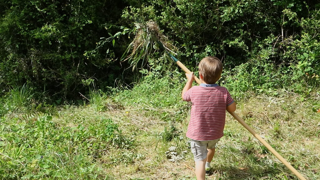 Ce matin, nous avons jardiné. Chacun porte ce qu’il peut 😉