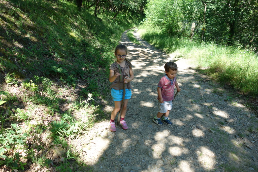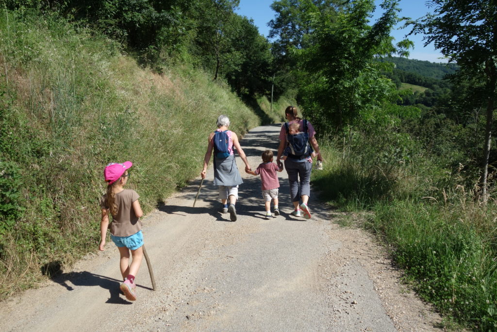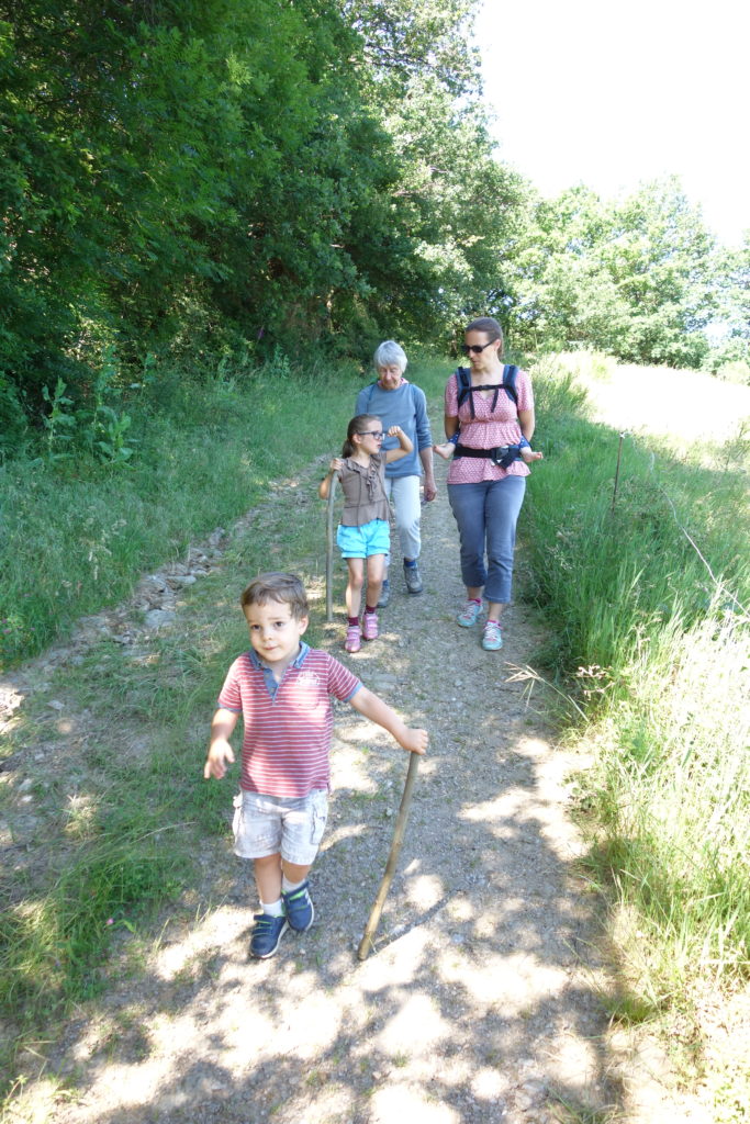 Après le repas et les siestes, nous sommes allés à pied jusqu’à Bar, où Grand-papa nous a récupéré en voiture. Nous étions plus au soleil que la dernière fois, et les enfants ont davantage ralés… Mais nous sommes arrivés au bout sans porter Émile 😉