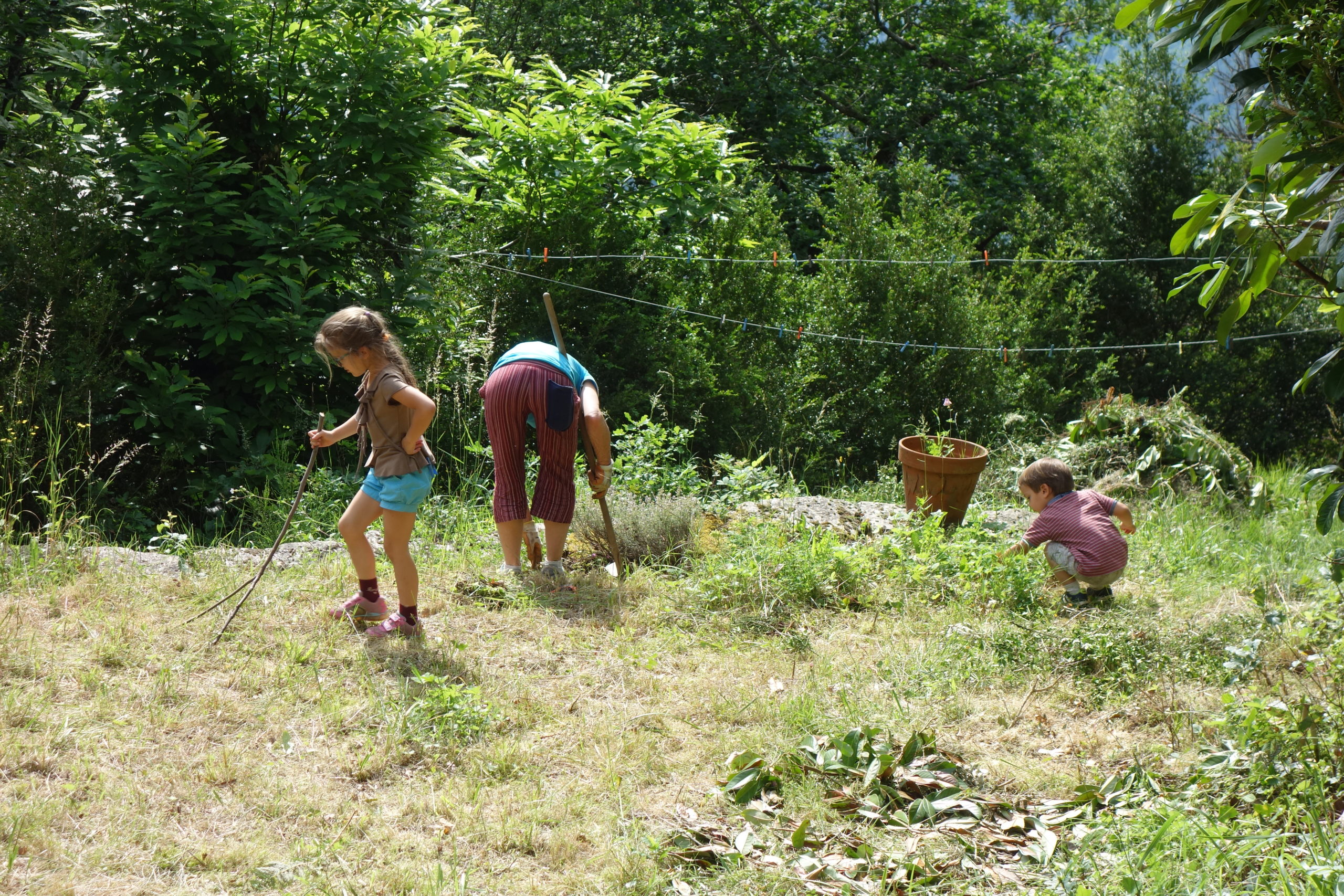 Ce matin, nous avons jardiné. Chacun porte ce qu’il peut 😉
