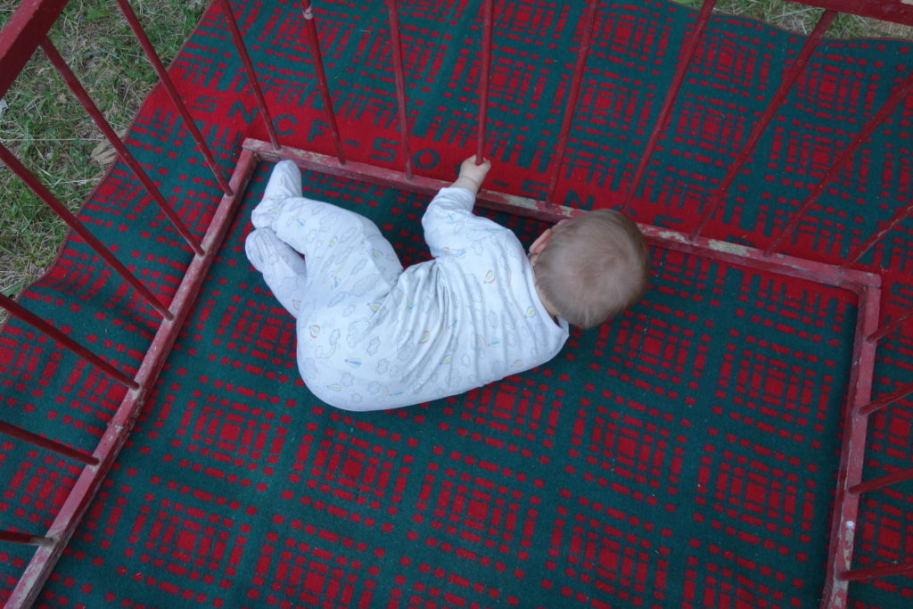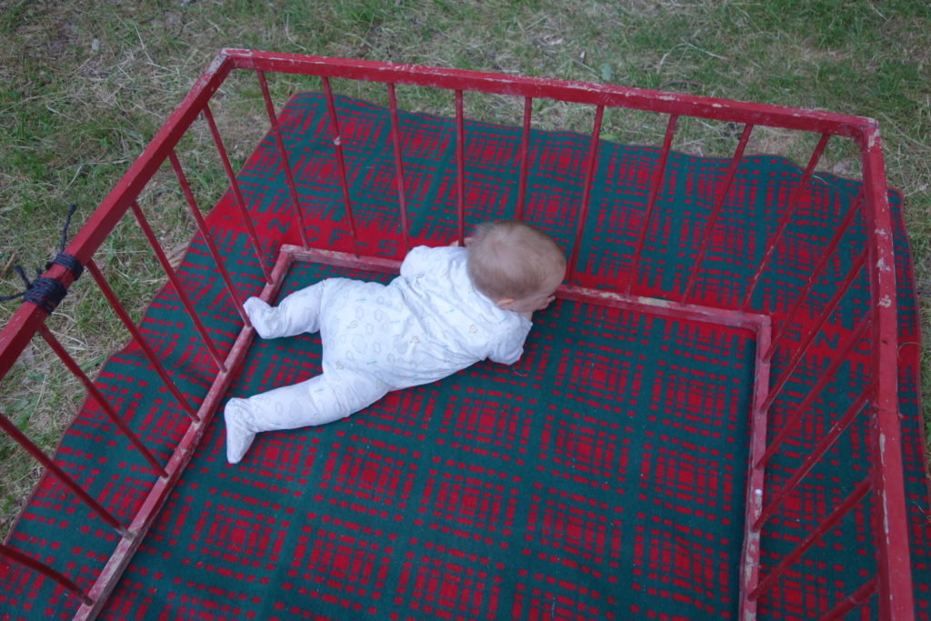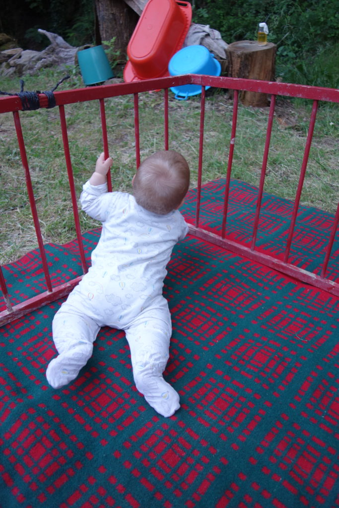 Odile s’est retournée dans son parc, à l’aide des barreaux. C’est sans doute la première fois ! Puis elle s’est mise debout et a fait plusieurs fois le tour du parc, mais ça elle le fait tout le temps 😉