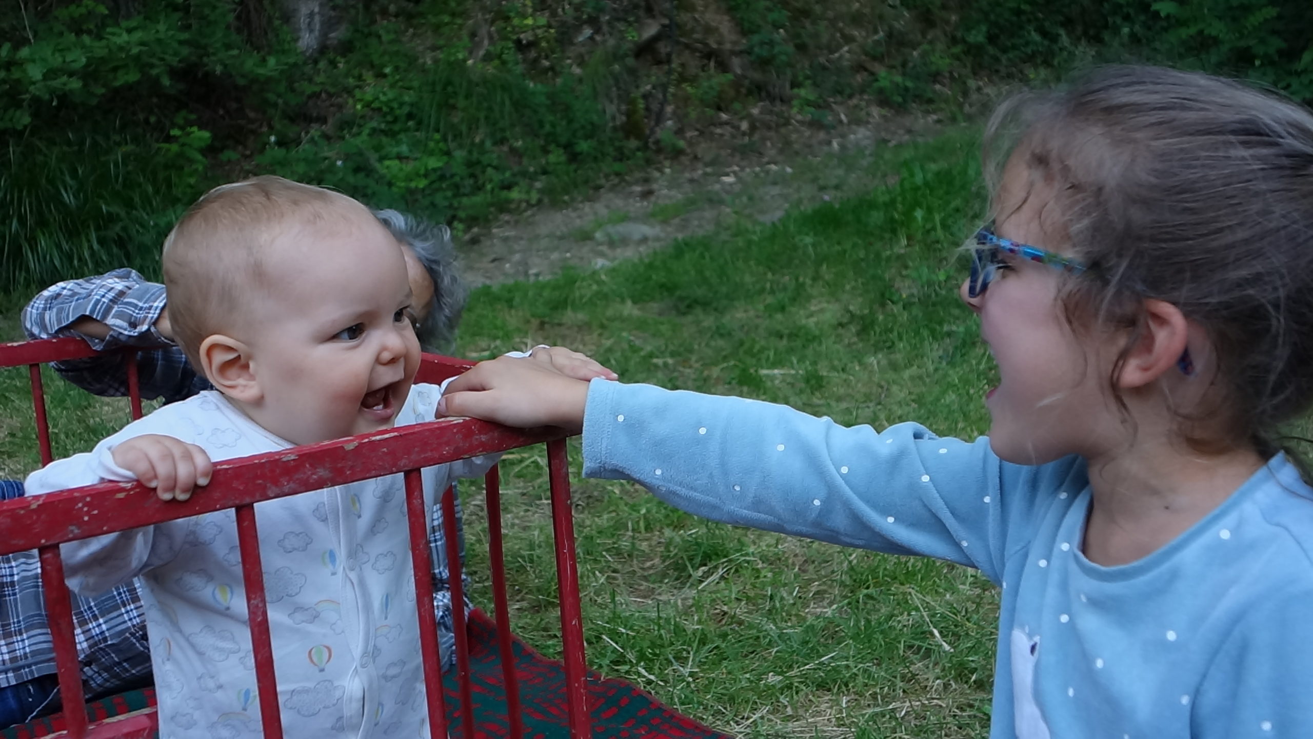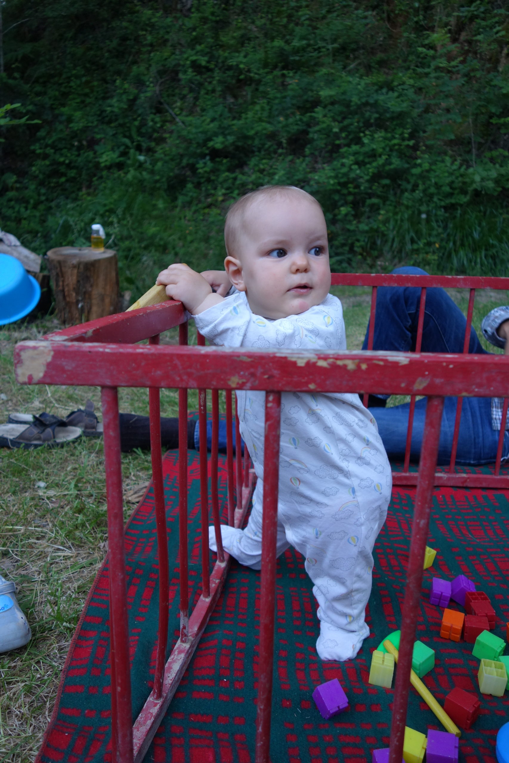 Odile s’est retournée dans son parc, à l’aide des barreaux. C’est sans doute la première fois ! Puis elle s’est mise debout et a fait plusieurs fois le tour du parc, mais ça elle le fait tout le temps 😉