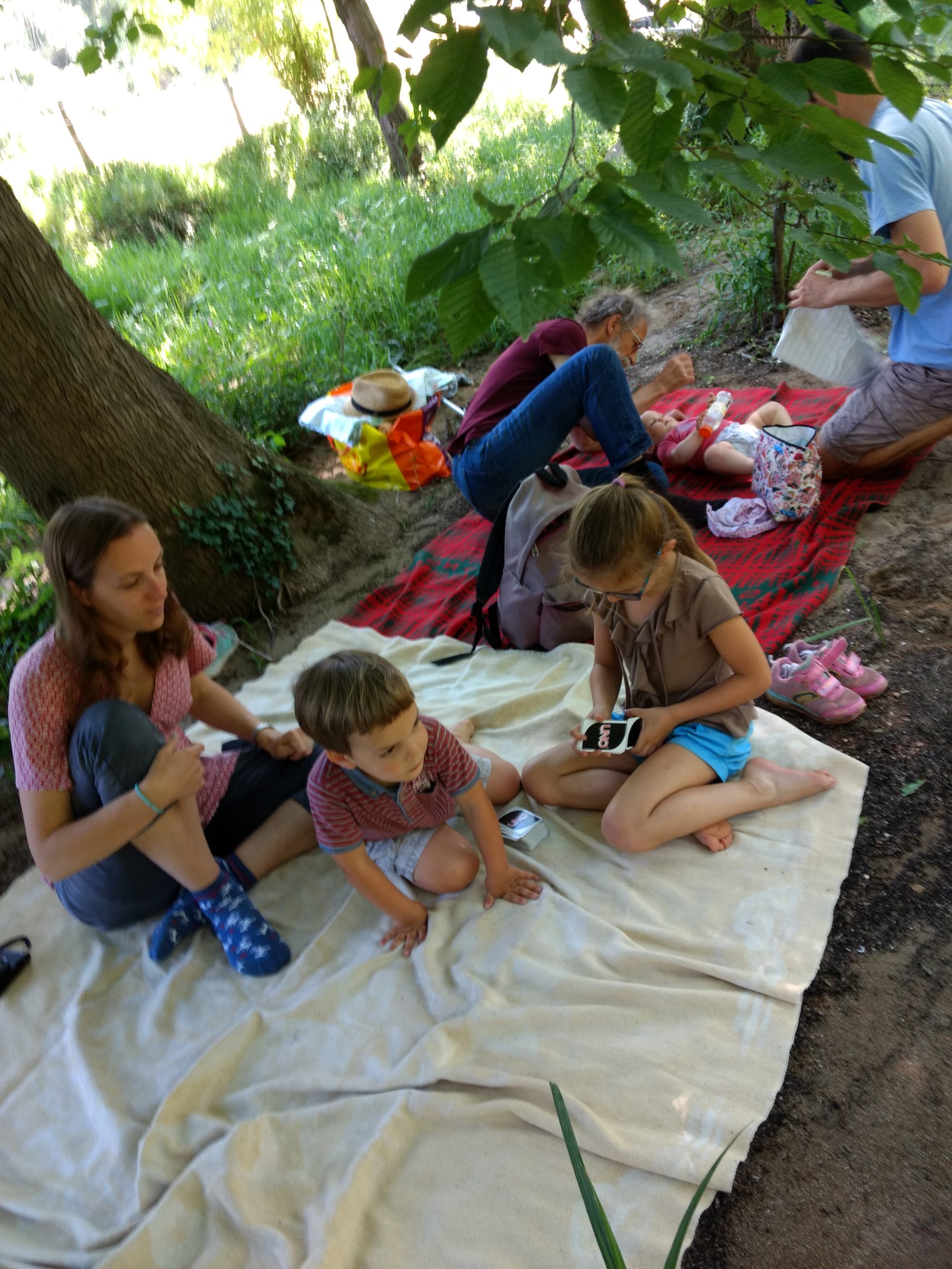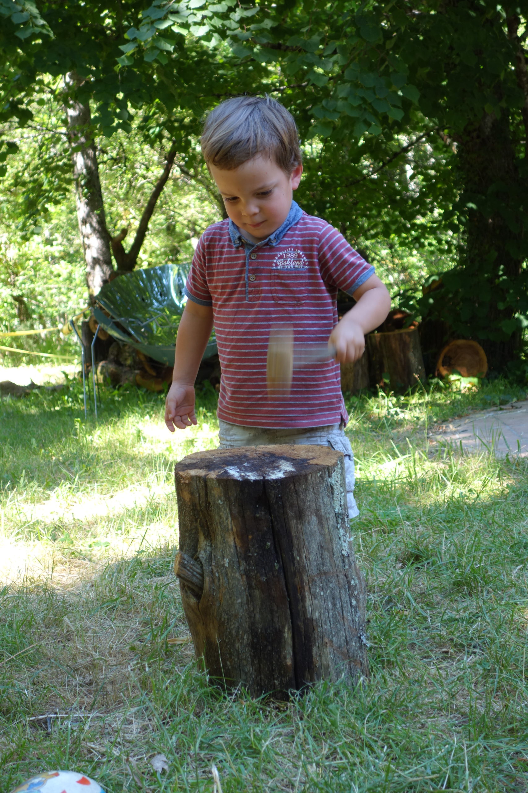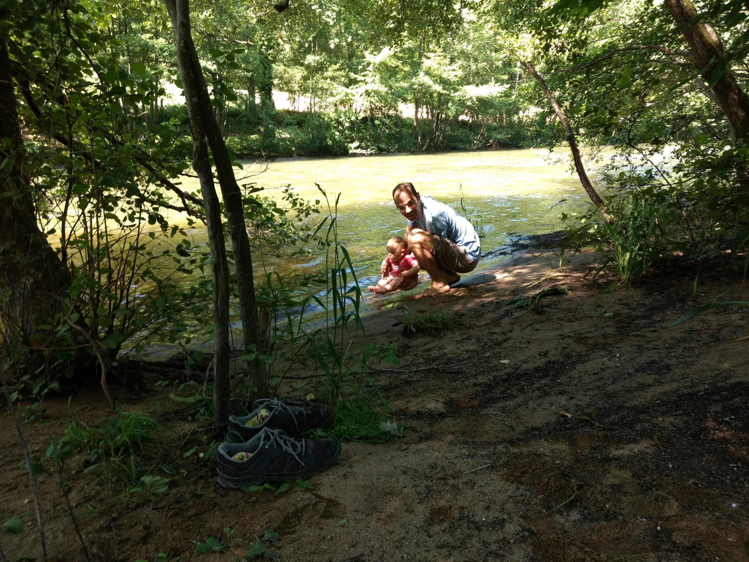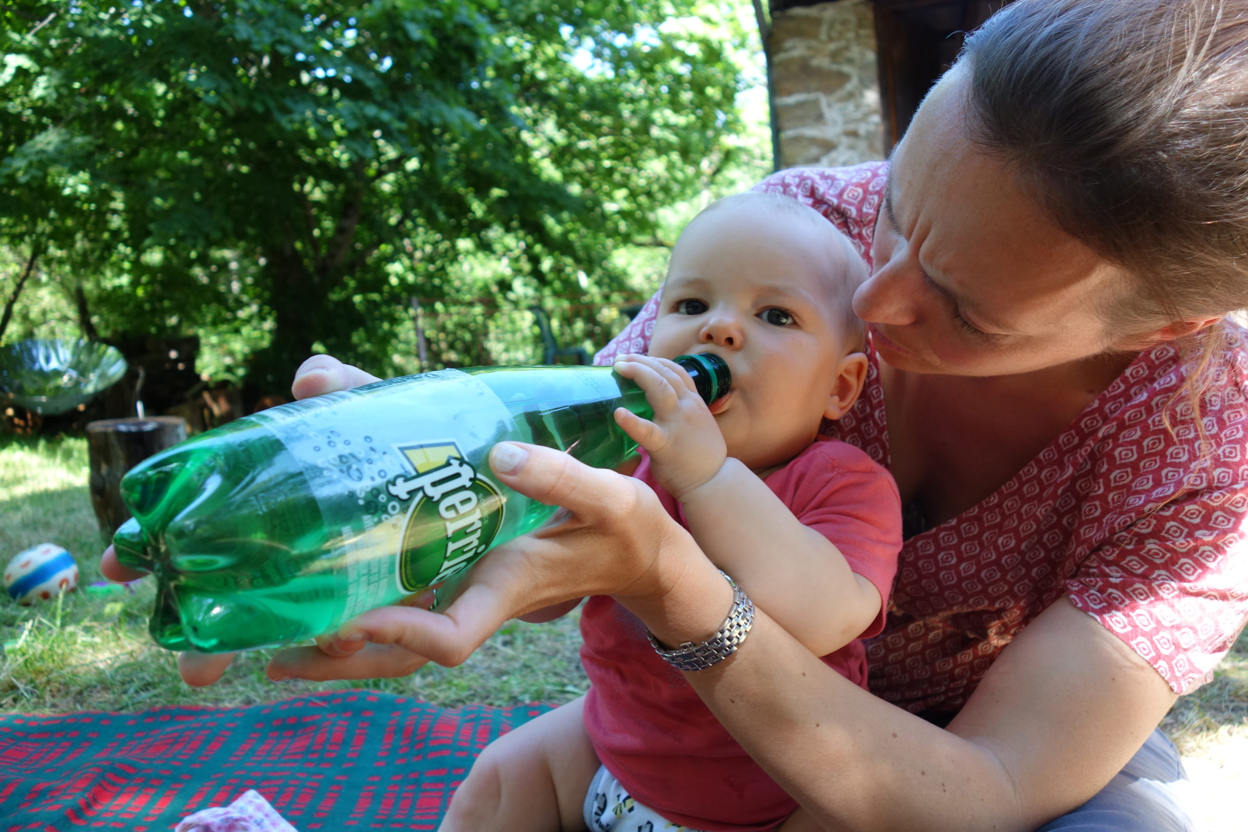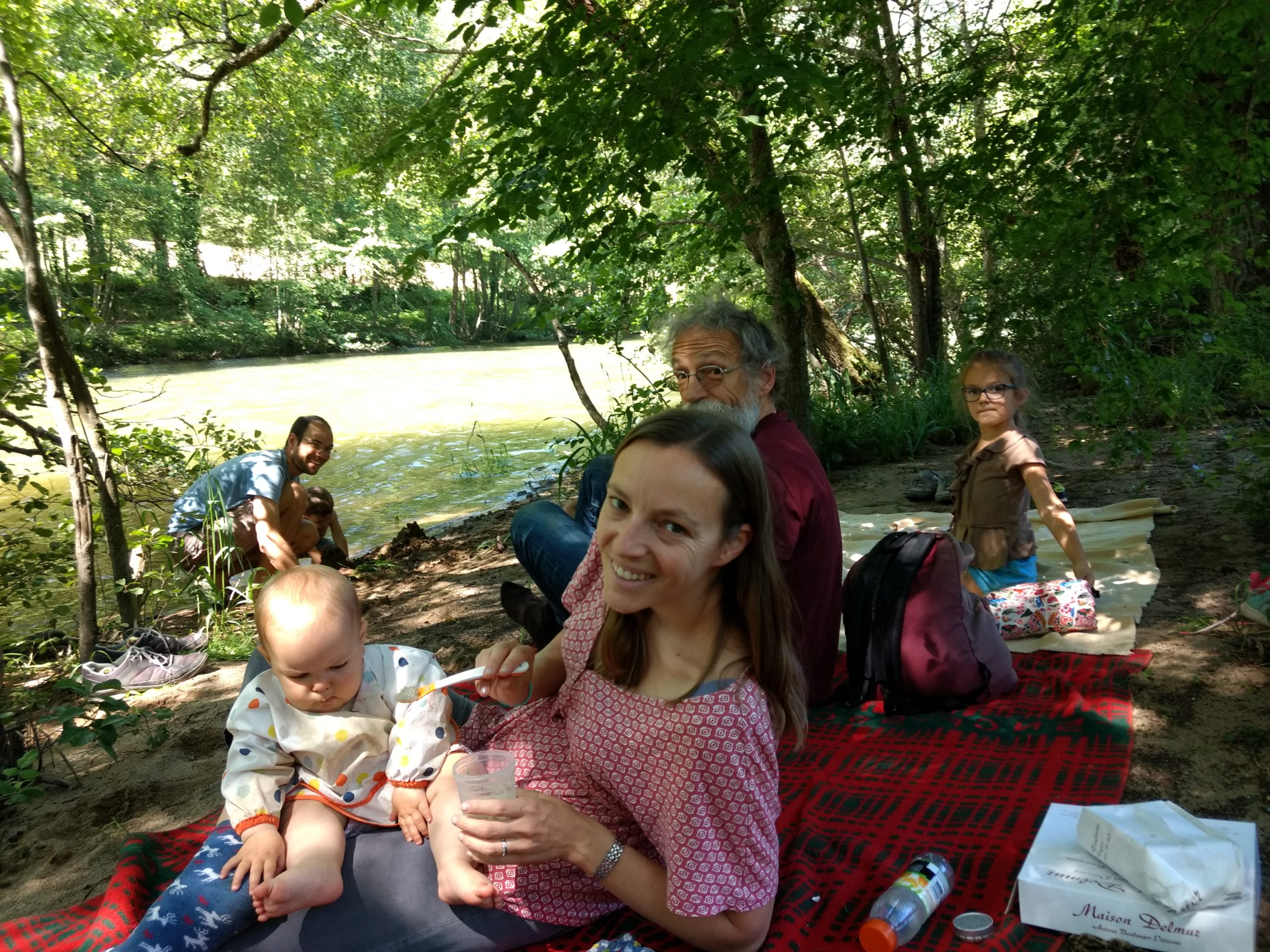 Aujourd’hui, nous sommes retournés voir le Viaur. Il a bien grossi depuis les sources que nous avions vues la semaine dernière 😉 Nous avons trouvé un petit coin très sympa, une mini-plage avec une sorte de sable (du ‘berk’ pour les intimes) qui a fait le bonheur d’Émile !