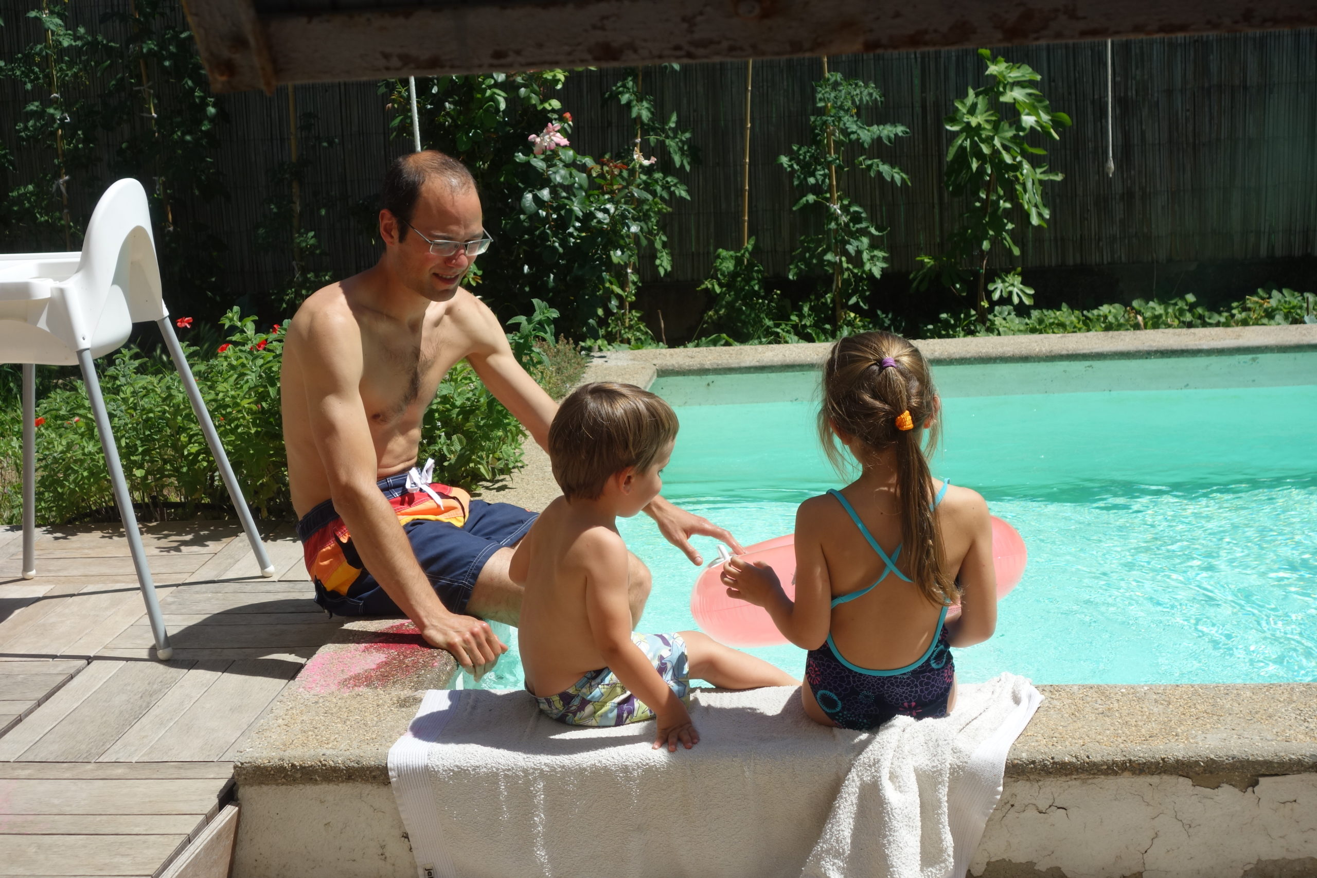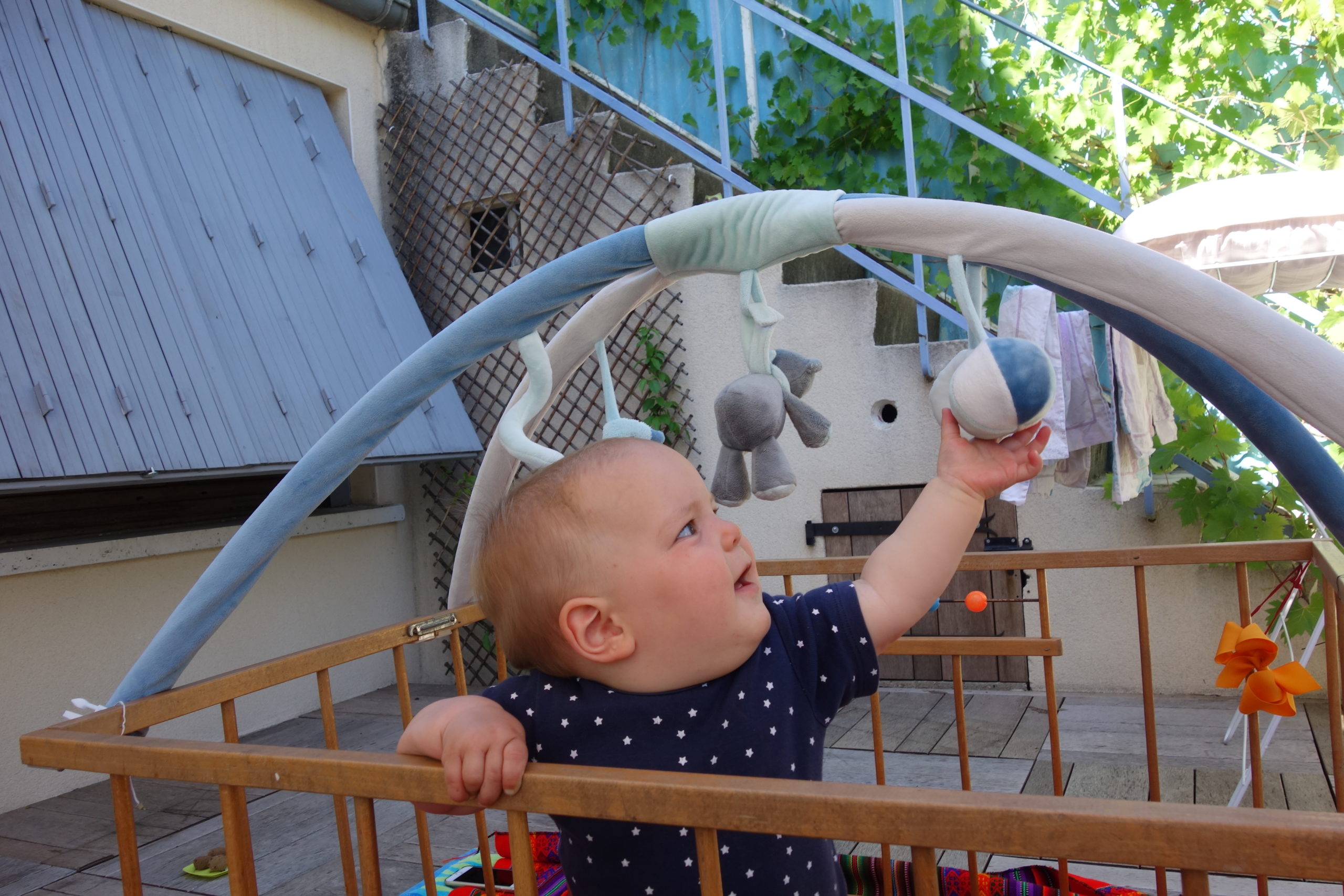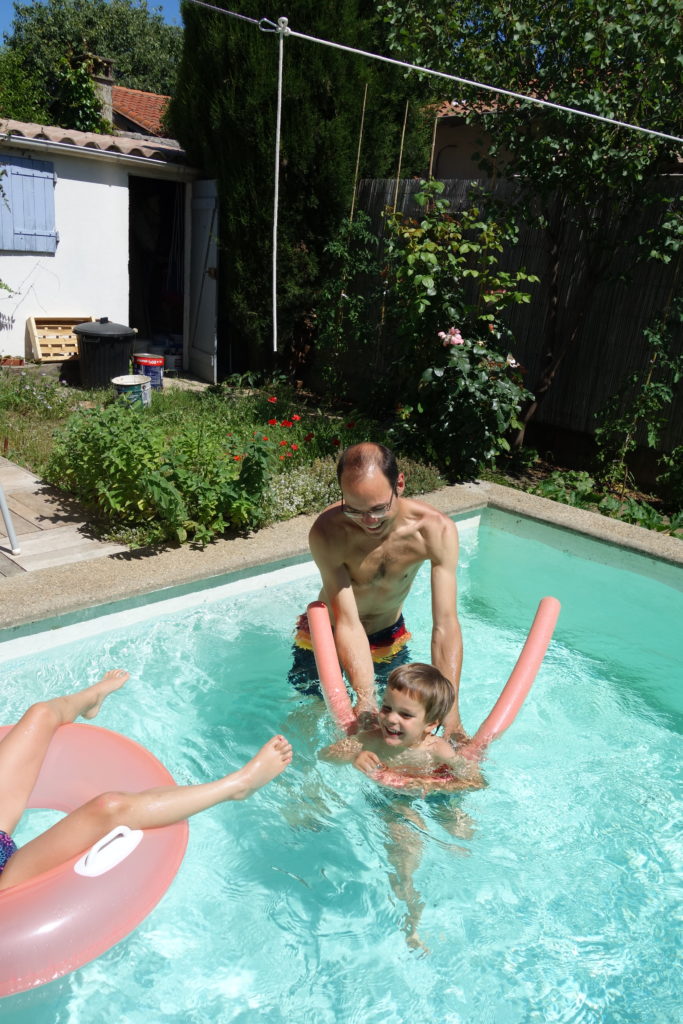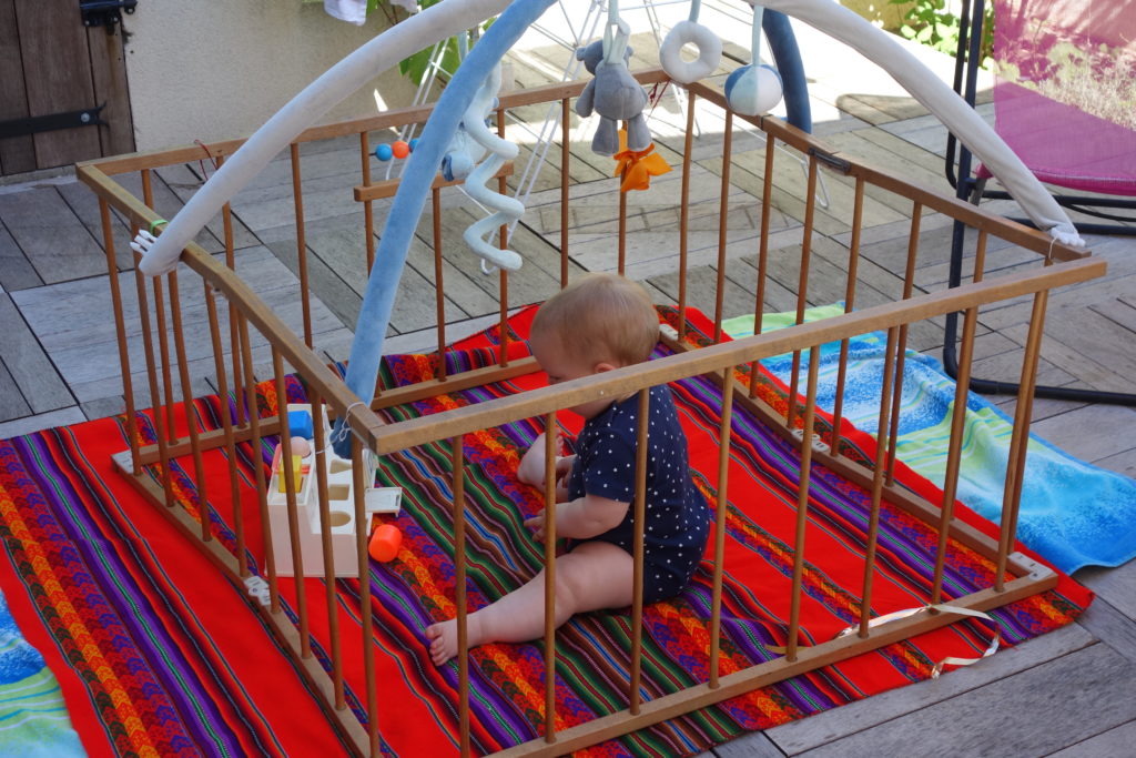 Mais Thomas Émile et Lucie ont profité de la piscine pendant que je testais le parc en extérieur avec Odile. Cela parait chouette sur les photos, mais elle le déplace en quelques minutes seulement… le répit espéré n’est pas au rendez-vous !