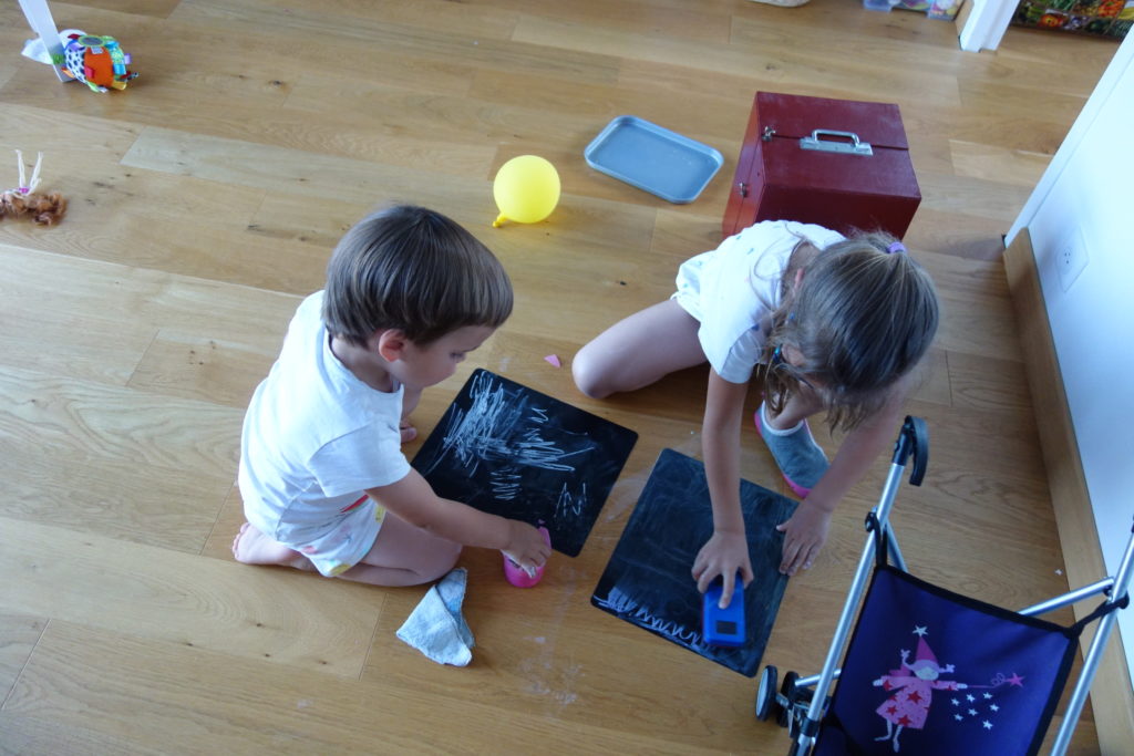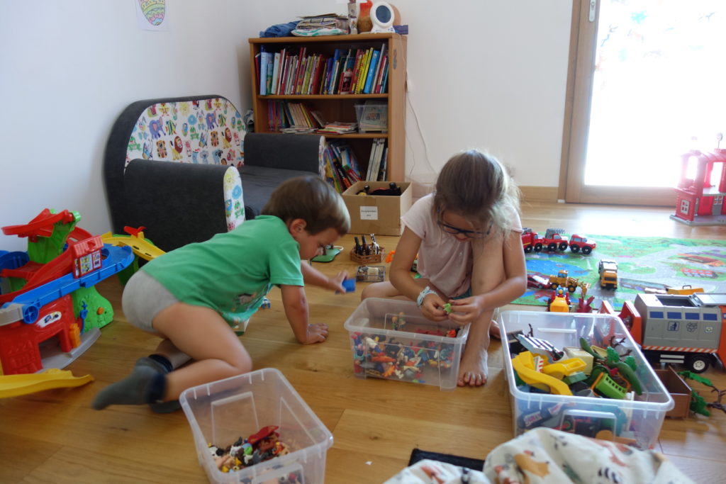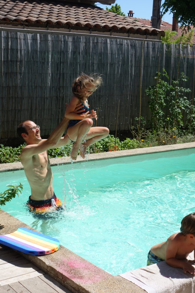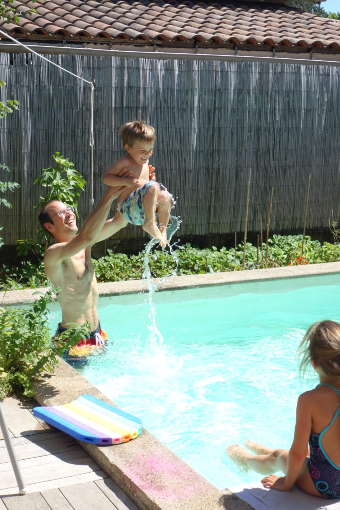 Mais Thomas Émile et Lucie ont profité de la piscine pendant que je testais le parc en extérieur avec Odile. Cela parait chouette sur les photos, mais elle le déplace en quelques minutes seulement… le répit espéré n’est pas au rendez-vous !