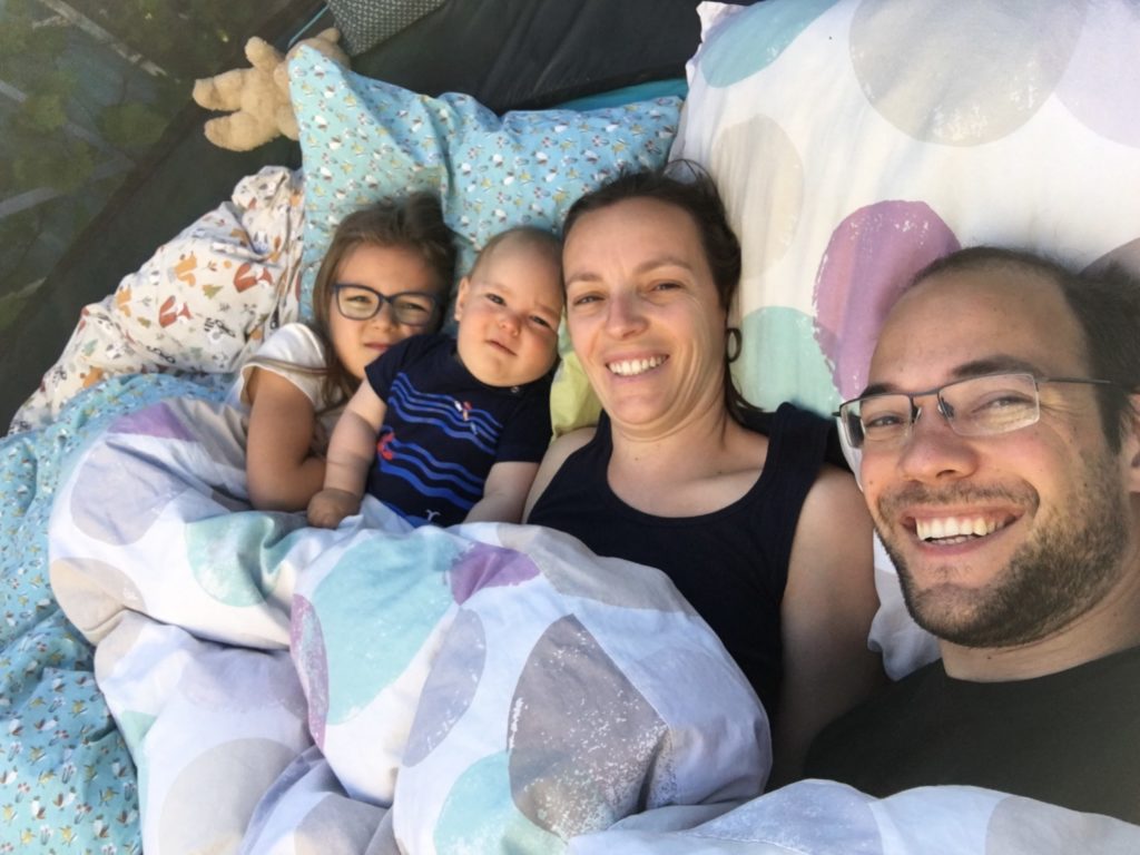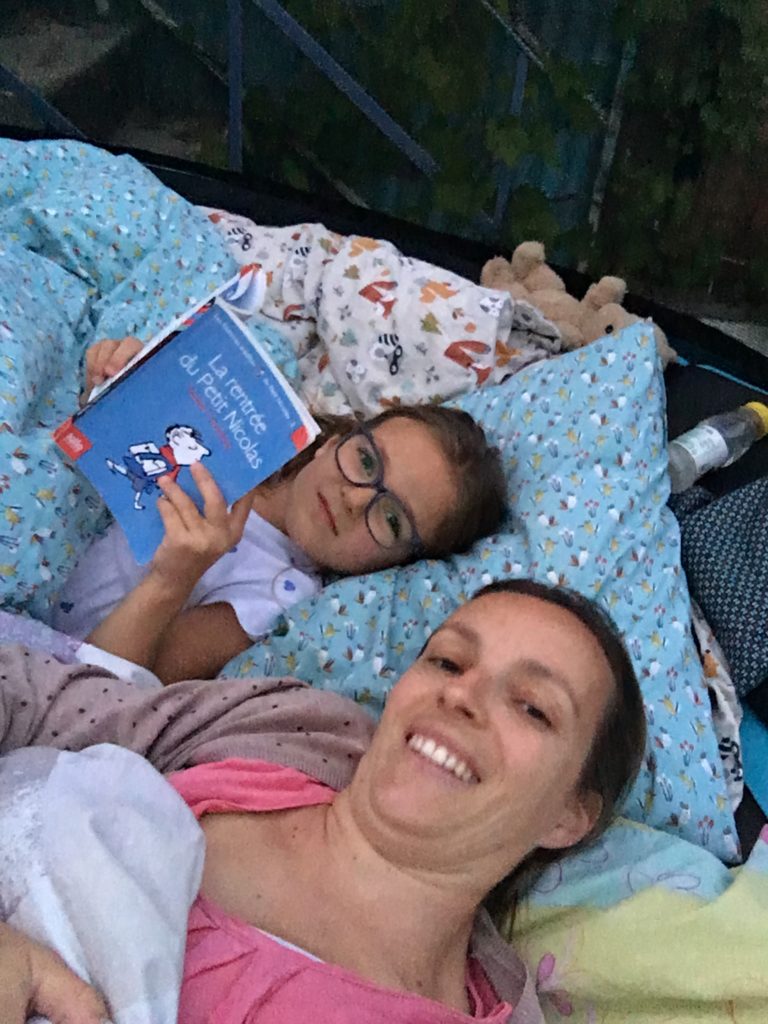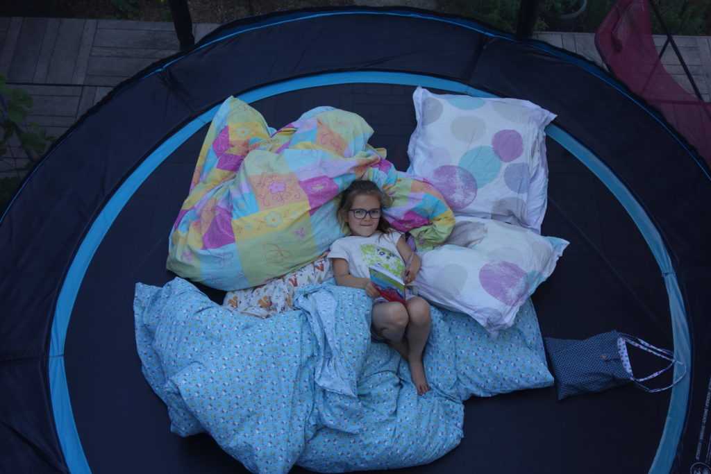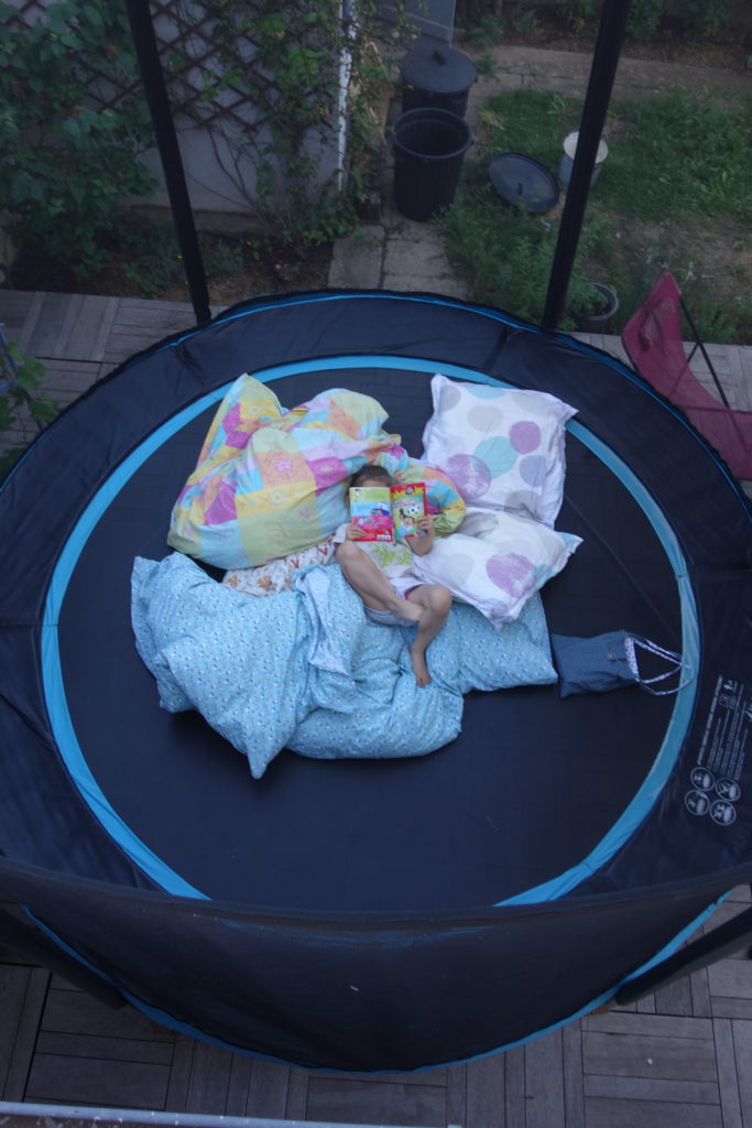 Le dimanche soir, nous (Lucie, Thomas et moi) avons dormi sur le trampoline ! C’était très amusant, vraiment confortable, et la température était parfaite !