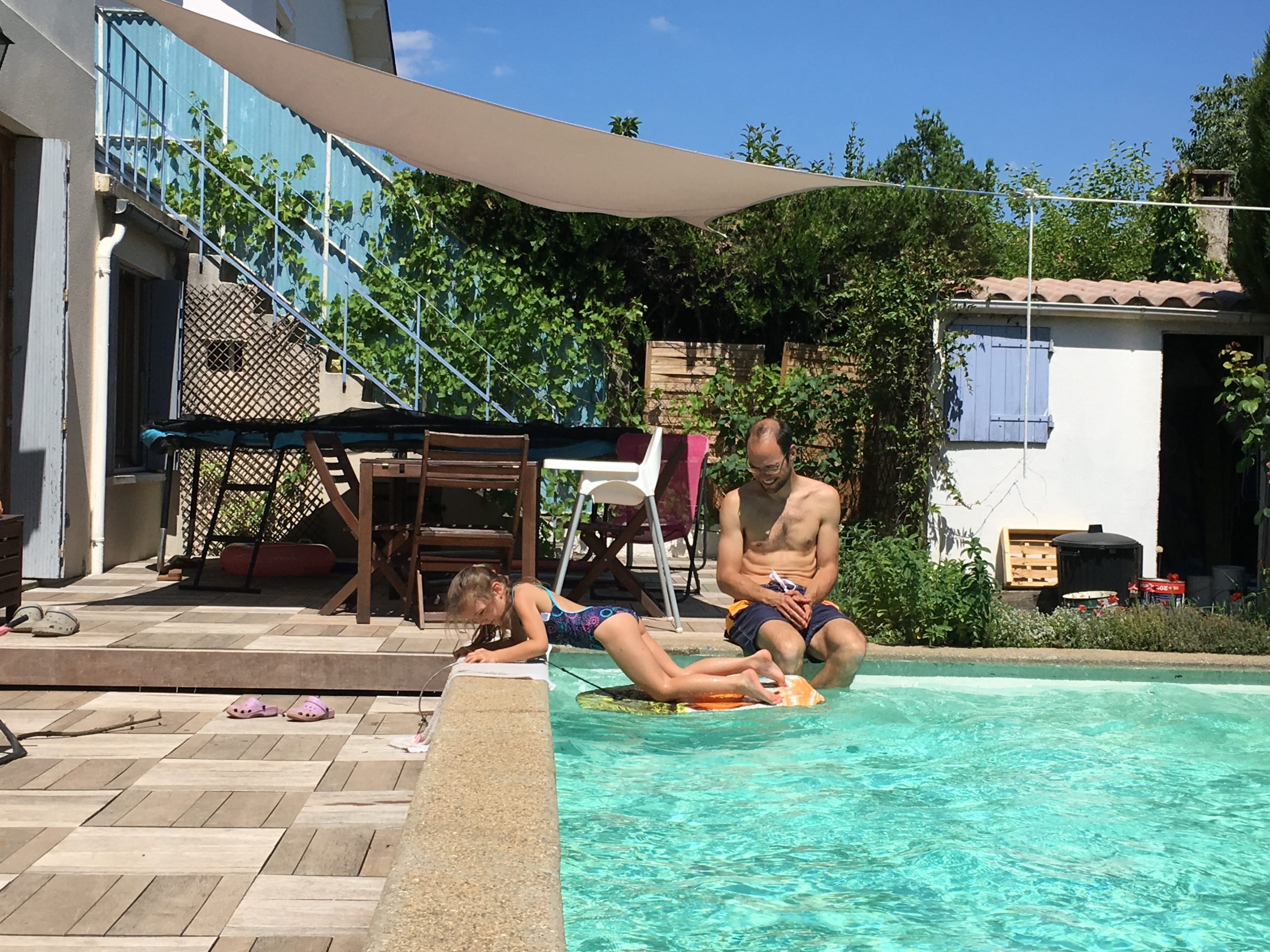 Le dimanche soir, nous (Lucie, Thomas et moi) avons dormi sur le trampoline ! C’était très amusant, vraiment confortable, et la température était parfaite !