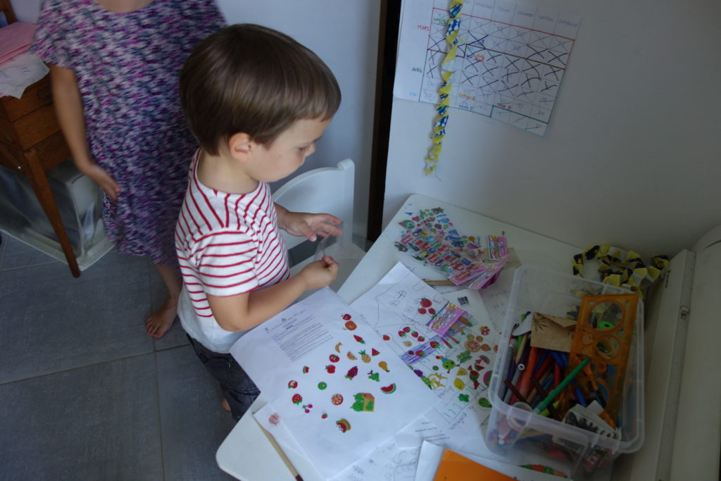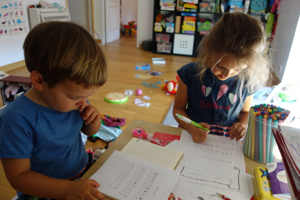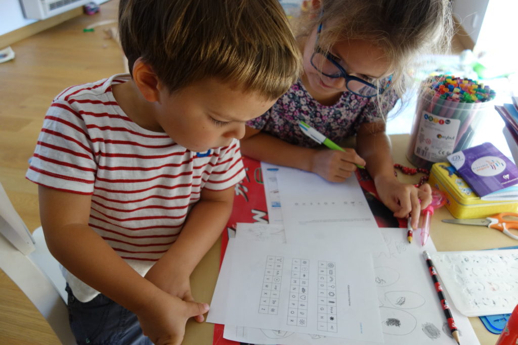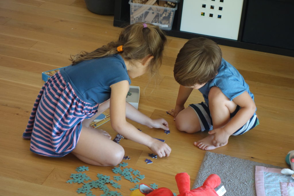 Les enfants étaient ravis de se retrouver après 2 jours séparés. Devoirs, livres, puzzles, ils font tout ensemble.