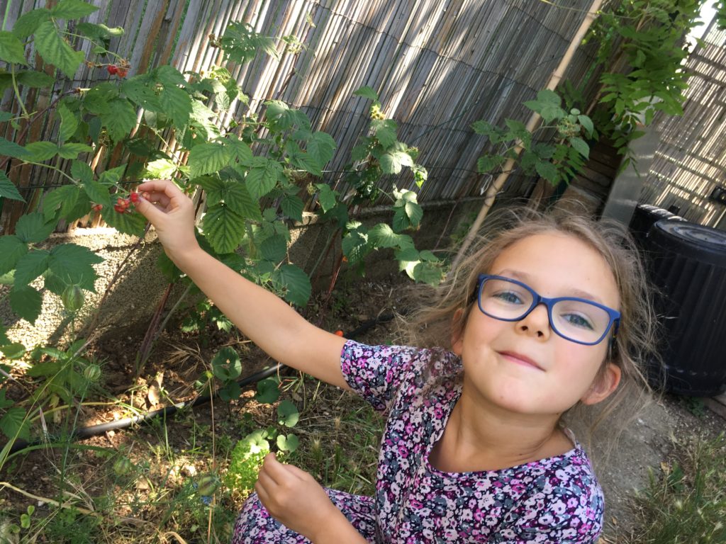 Nous avons mangé nos premières framboises du jardin ! Pépi et Mémie nous avaient apportés des framboisiers cet automne, et ils se plaisent bien ici 😉