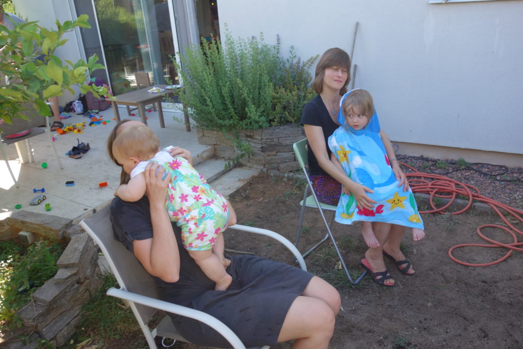 Nous avons passé un chouette moment, les enfants ont pu tester la toute nouvelle piscine de Gilles et Nicole (Émile avait pied partout et s’est éclaté !), et nous nous sommes régalés !
