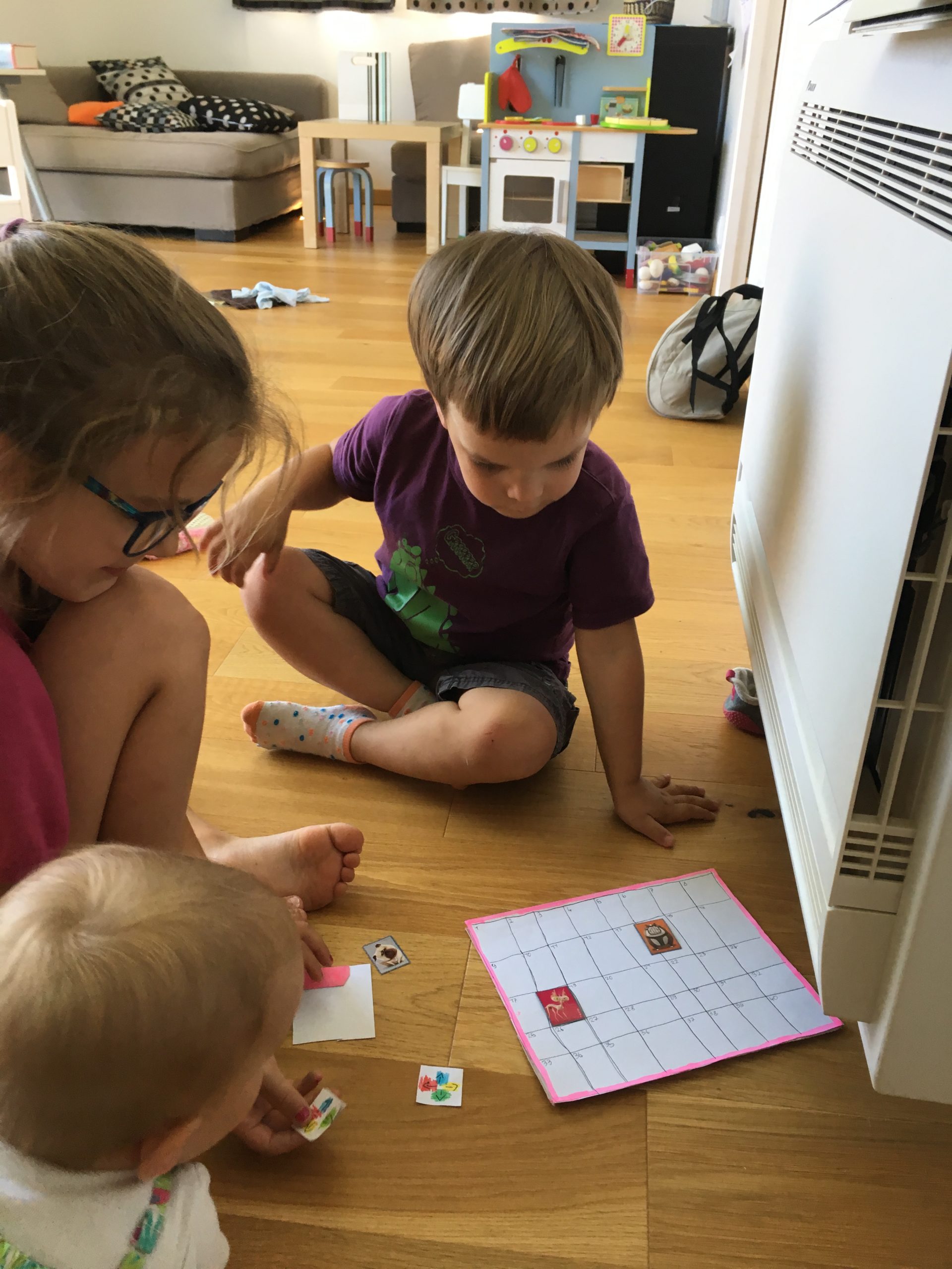 Lucie a fabriqué un jeu de société toute seule, elle y joue avec son frère, et Odile adore soulever les rabats !