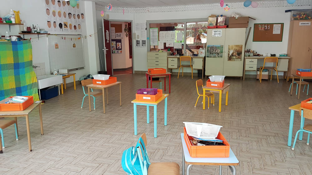 Des petits bureaux ont été installés pour qu’on ne soit pas trop près et à la récré on doit rester à 1m de distance et les jeux sont inaccessibles.