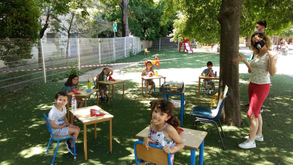 La cantine est fermée, les maitresse nous donnent des repas froids et certains jours on peut manger dehors.