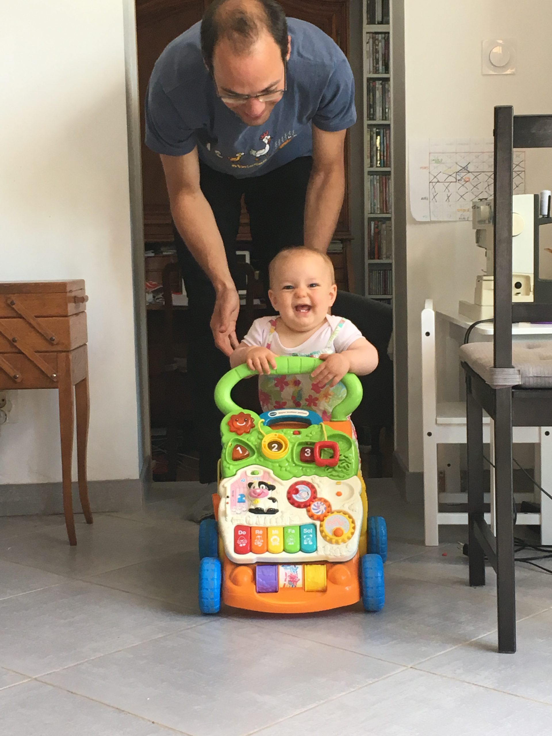 Les règles à la crèche sont moins strictes, puisque les enfants peuvent interagir entre eux, et partagent les jeux. Les parents ne peuvent rentrer dans aucun bâtiment, ni à l’école ni à la crèche. Émile a passé une très bonne journée, bien débutée avec une gourde de crème de marron !