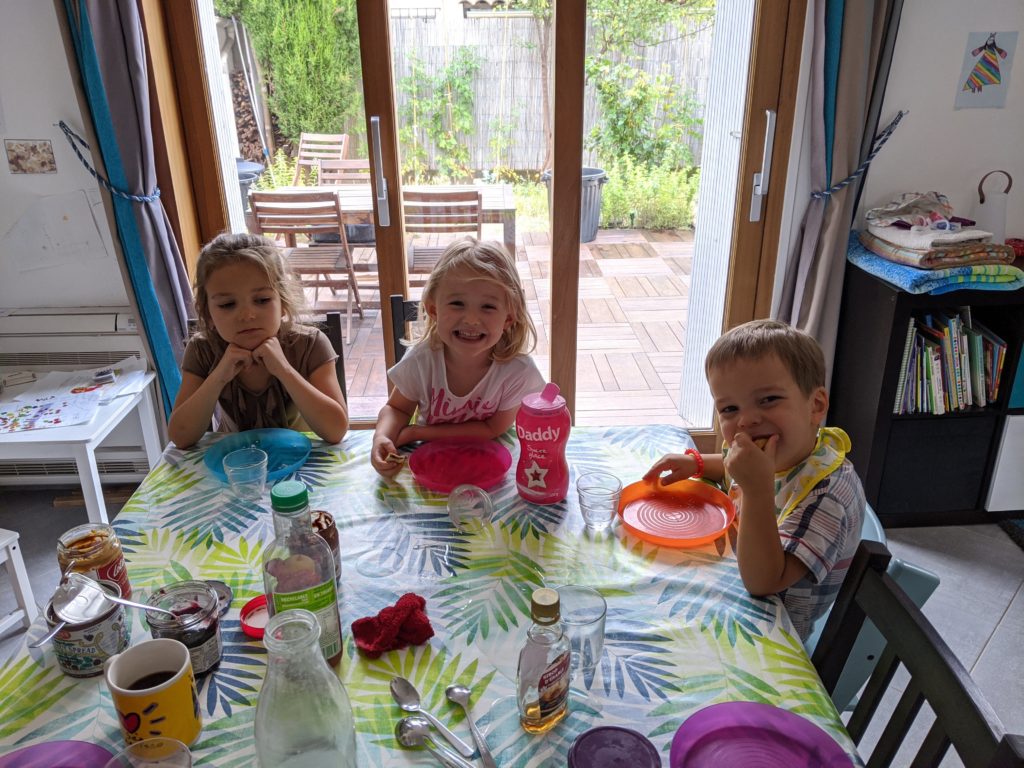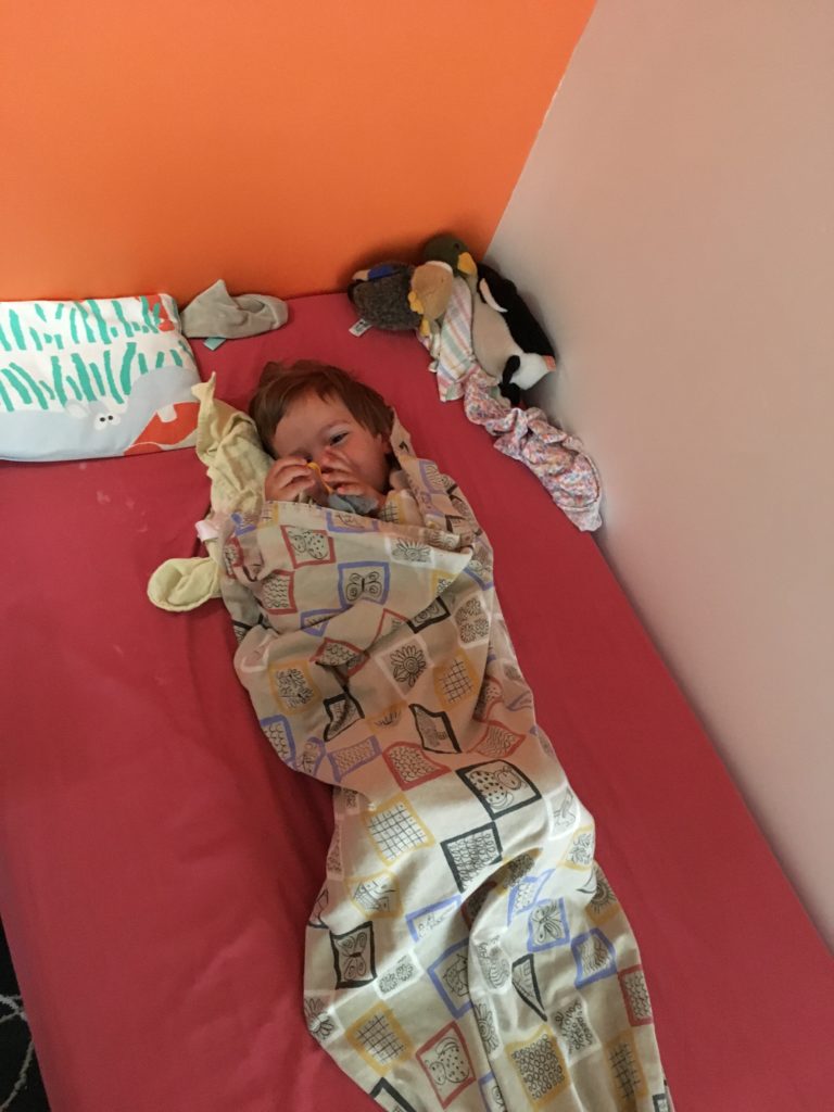 Ce soir, Jeanne dort à la maison. Les 3 sont dans la même chambre !