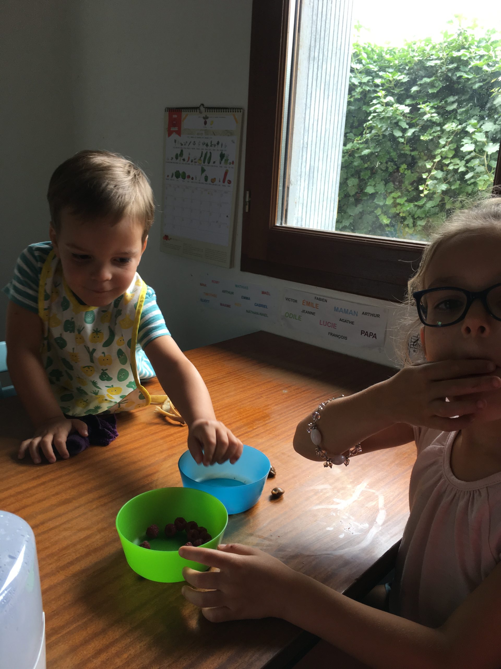Délicieuses framboises du jardin ! La plupart de nos plants viennent de Préfailles, et pour notre plus grand bonheur, ils ont l’air de se plaire chez nous également ! Même Émile adore ça. Lui qui était si difficile pour les fruits et légumes, il commence à apprécier les fruits rouges et certains légumes verts (en plus des oranges qu’il mangeait déjà volontiers) … comme quoi, il ne faut jamais perdre espoir !