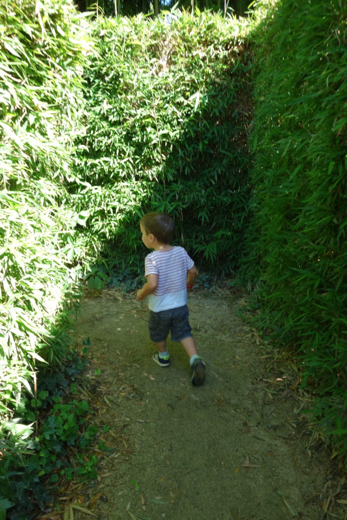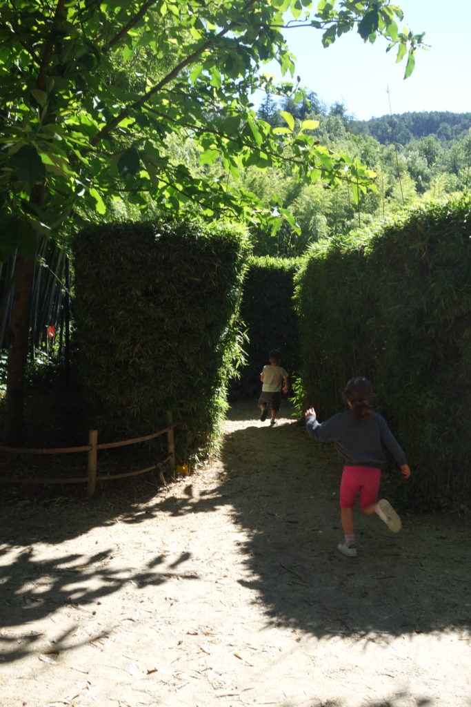 Le lendemain, après avoir rendu la maison, nous sommes allés à la Bambouseraie. Les enfants ont adoré le labyrinthe – les filles y étaient très à l’aise et retrouvraient assez facilement la sortie, ils ont donc pu y jouer tous les 4 sans trop se perdre.