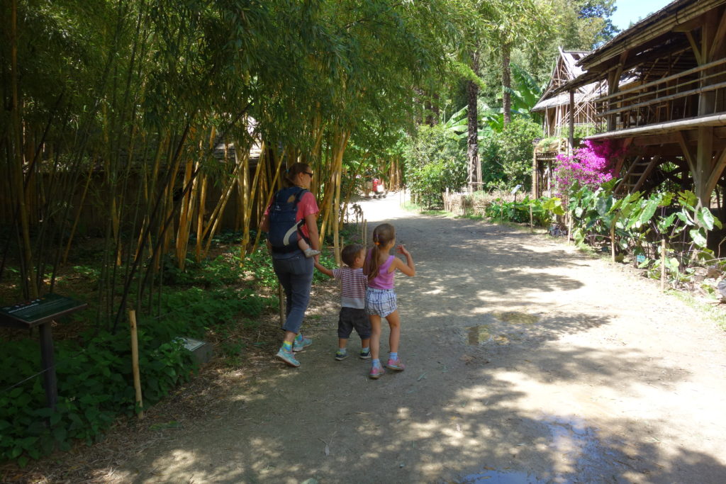 Le picnic était interdit à l’intérieur (et le port du masque obligatoire), mais nous avons pu y retourner après avoir mangé, regarder un peu le village tout en bambou, et voir quelques animaux.
