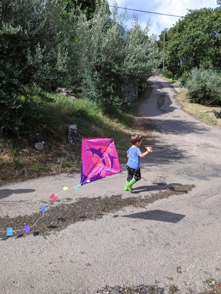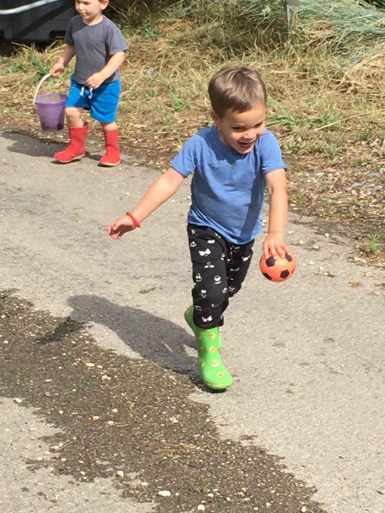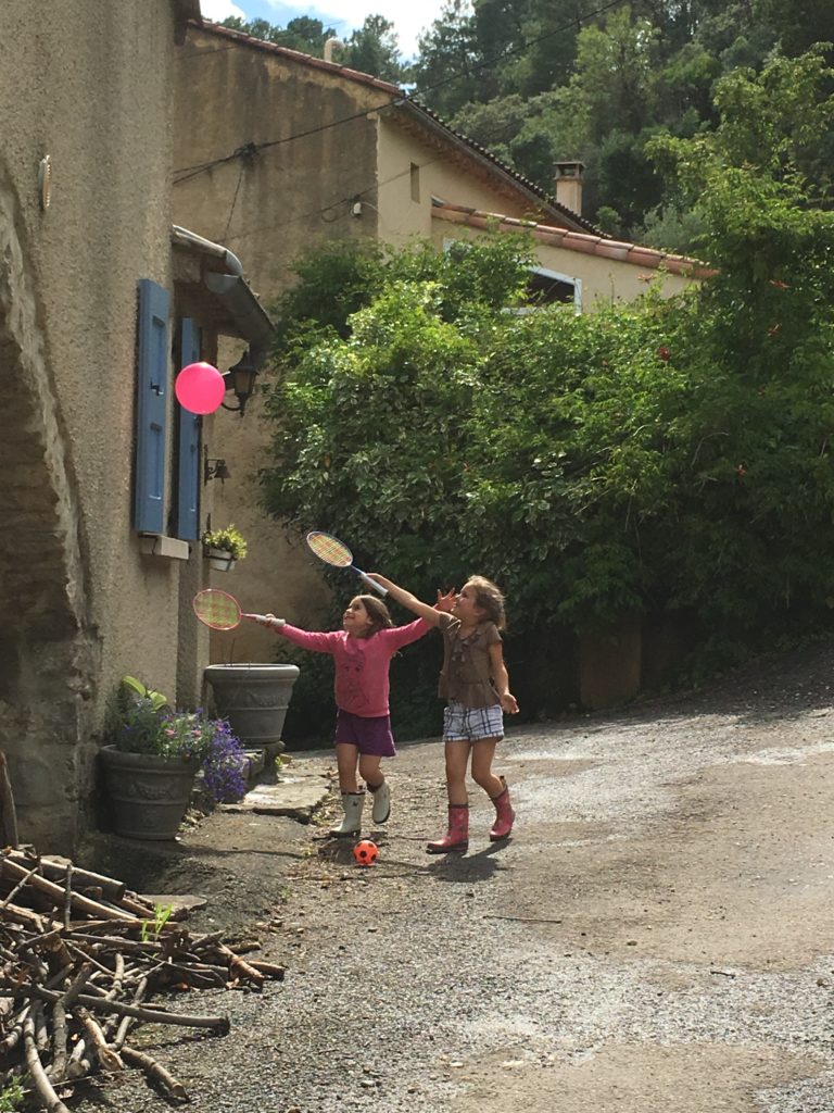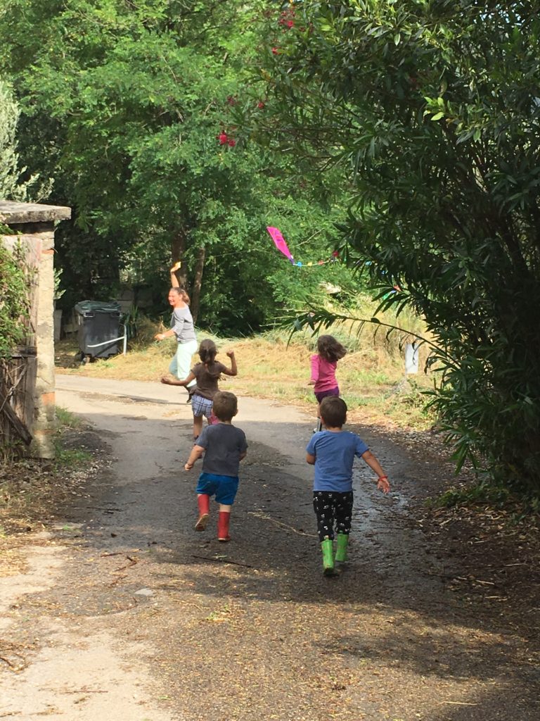 Puis, le soleil étant revenu, nous sommes tous allés gouter, puis jouer dehors. Les filles ont joué au badminton avec un ballon de baudruche, les garçons ont patouillé dans les graviers, et tout le monde a couru derrière le cerf-volant !