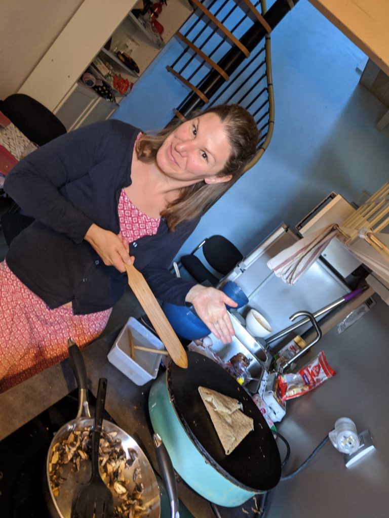 Le soir, nous avons mangé en deux services, car un peu à l’étroit !