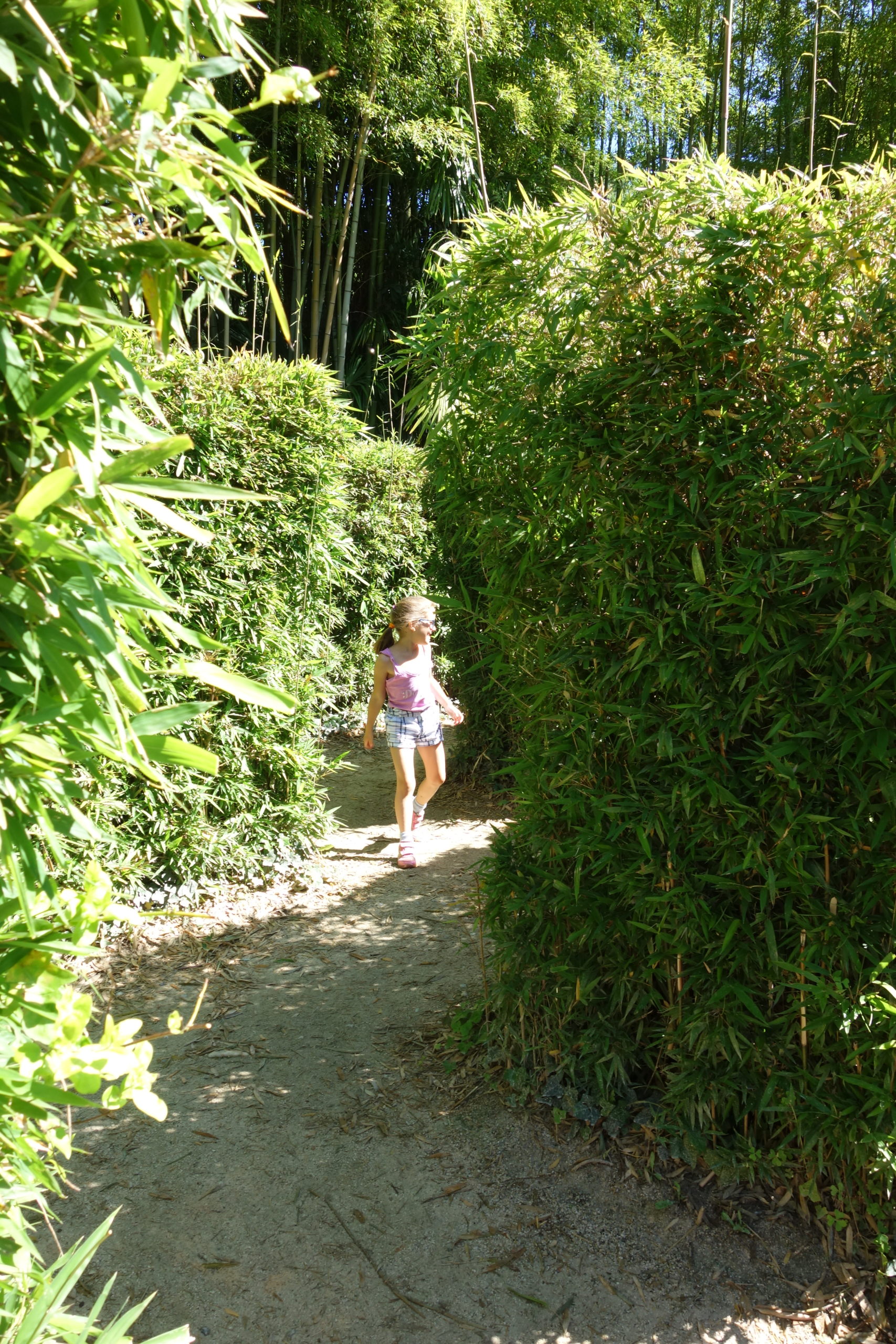 Le lendemain, après avoir rendu la maison, nous sommes allés à la Bambouseraie. Les enfants ont adoré le labyrinthe – les filles y étaient très à l’aise et retrouvraient assez facilement la sortie, ils ont donc pu y jouer tous les 4 sans trop se perdre.
