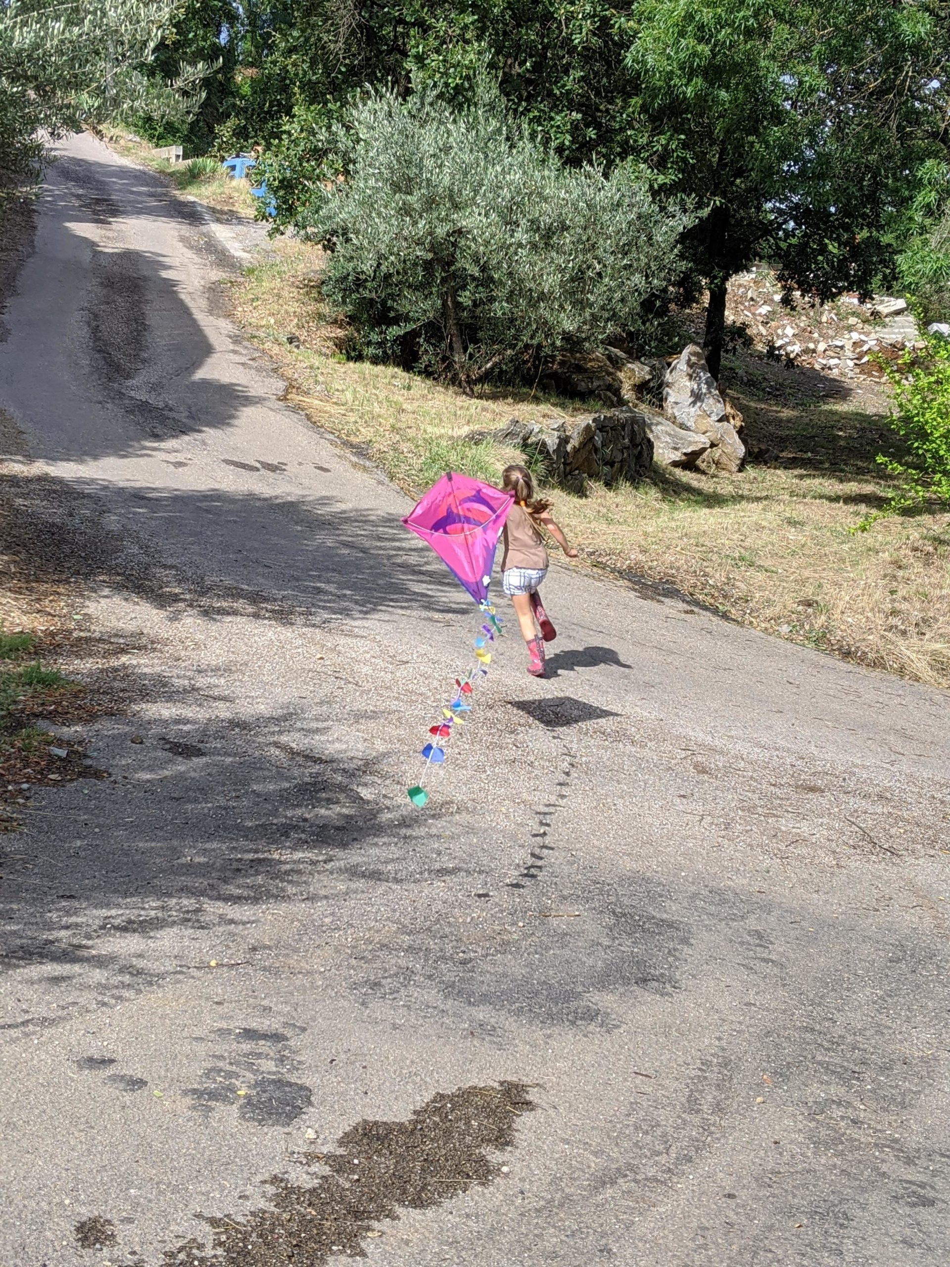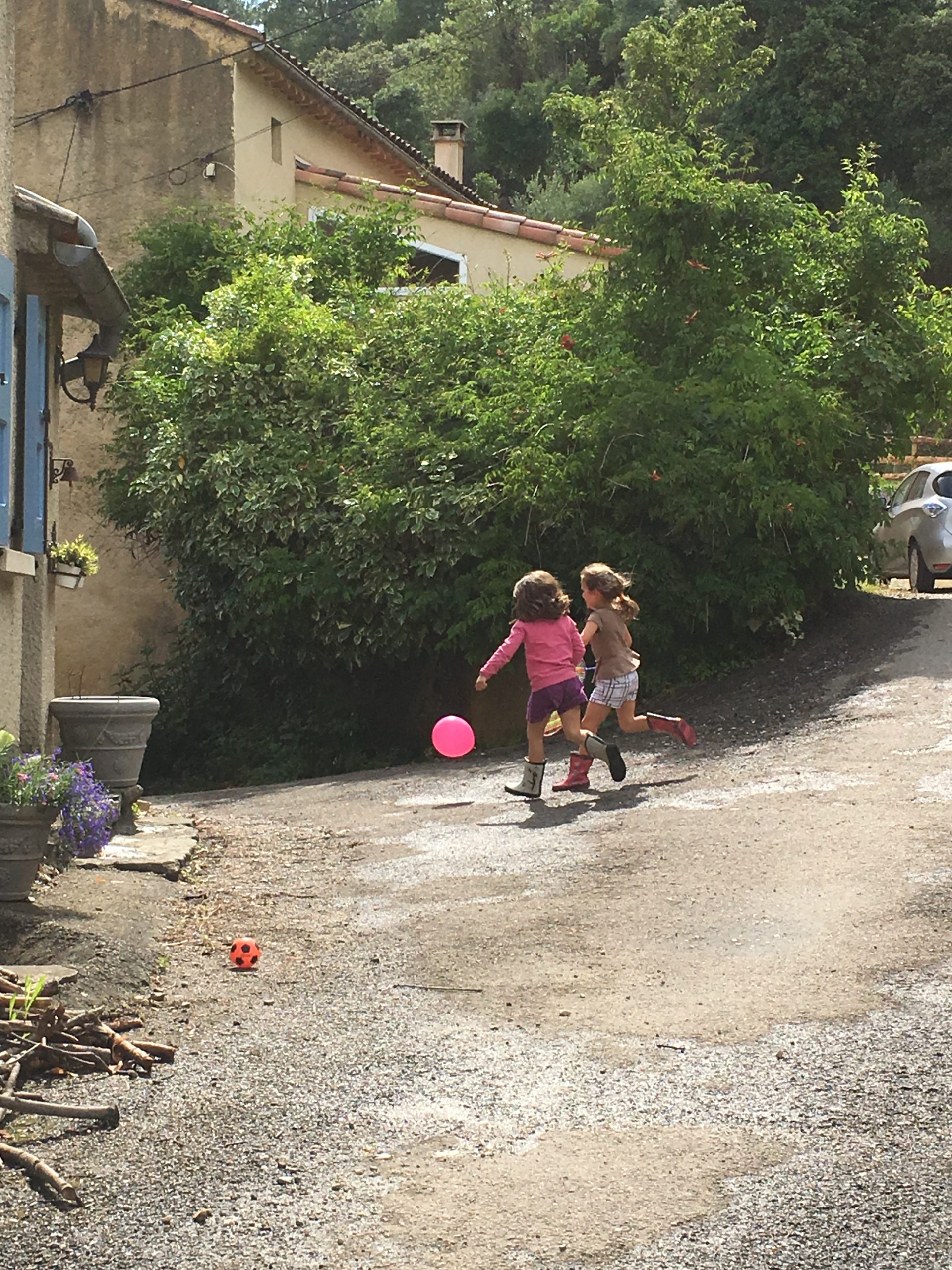 Puis, le soleil étant revenu, nous sommes tous allés gouter, puis jouer dehors. Les filles ont joué au badminton avec un ballon de baudruche, les garçons ont patouillé dans les graviers, et tout le monde a couru derrière le cerf-volant !