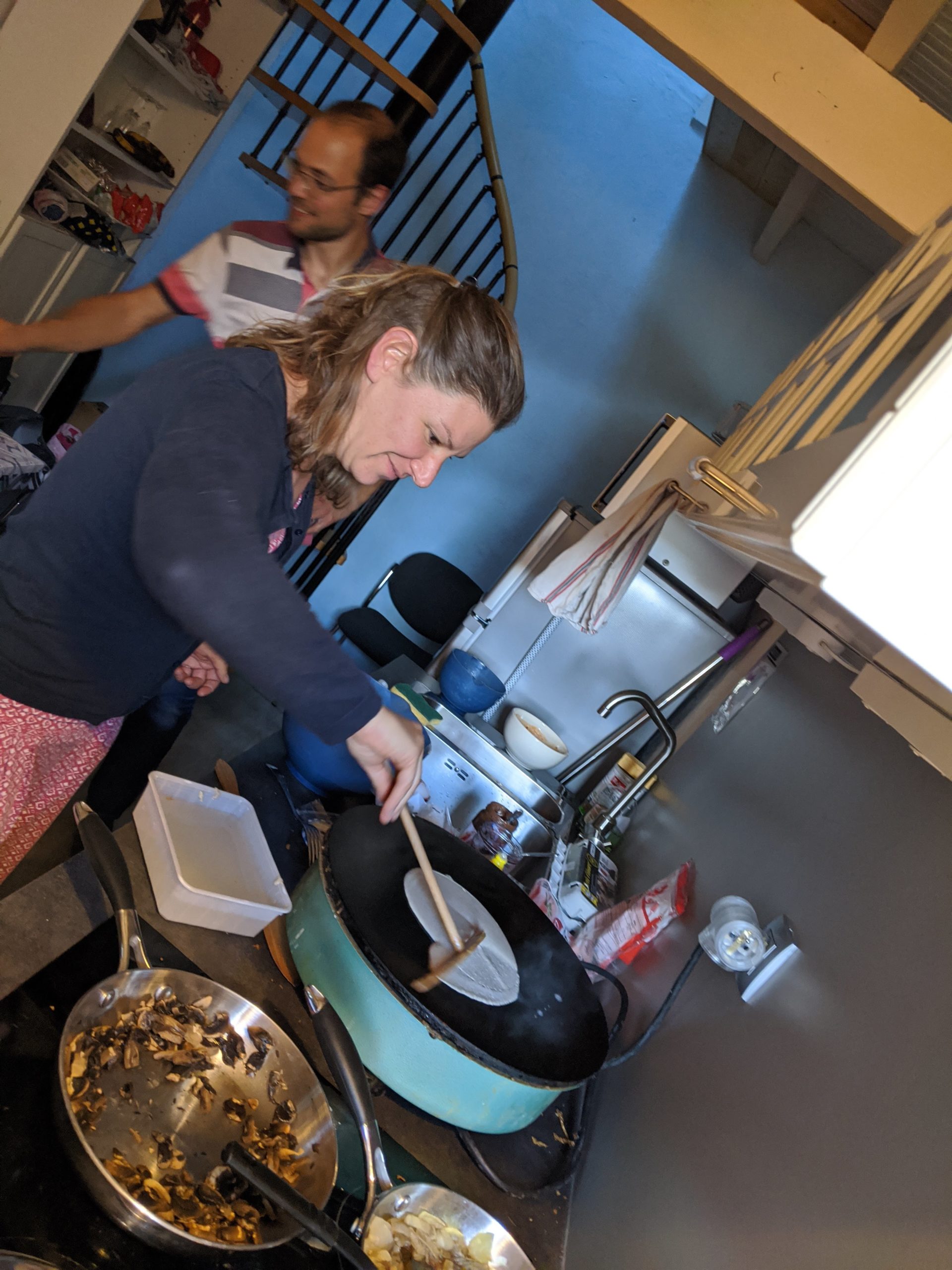 Le soir, nous avons mangé en deux services, car un peu à l’étroit !