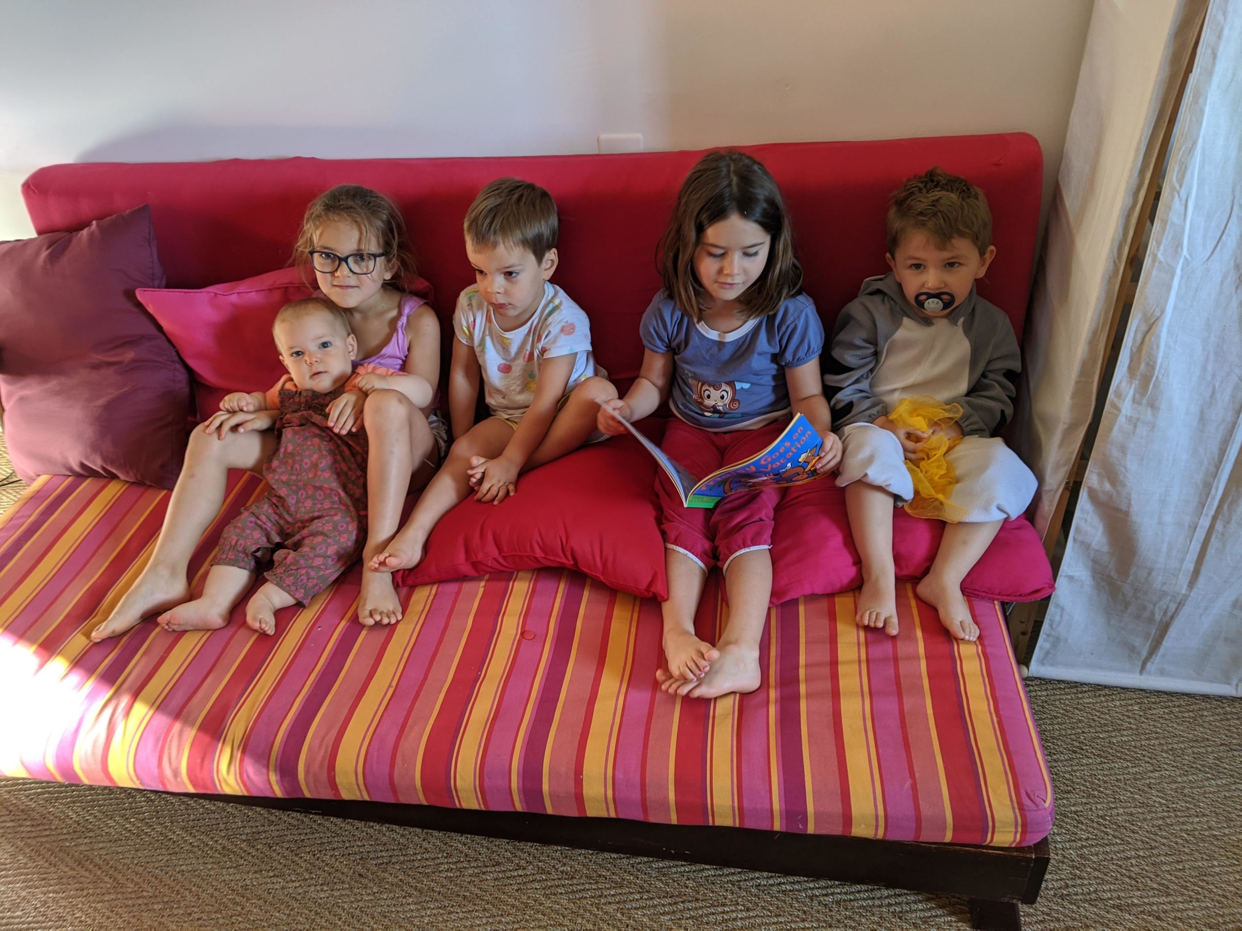 Les 4 “grands” ont dormi ensemble. Justine et Maxime ont même commencé la nuit dans la même lit (Lucie était très jalouse, et voulait elle aussi avoir son petit frère dans son lit), mais ils n’ont pas tenu longtemps 😉