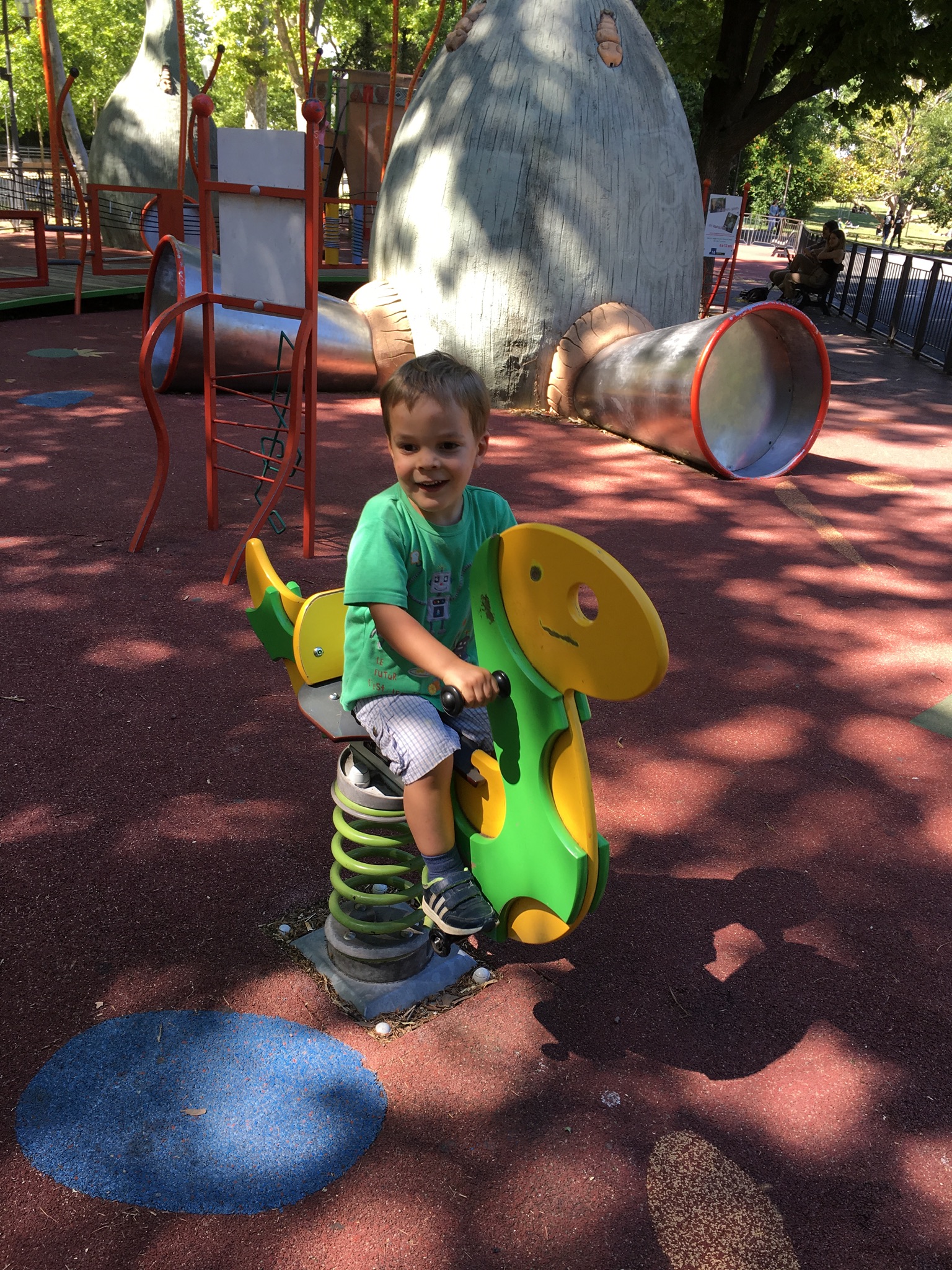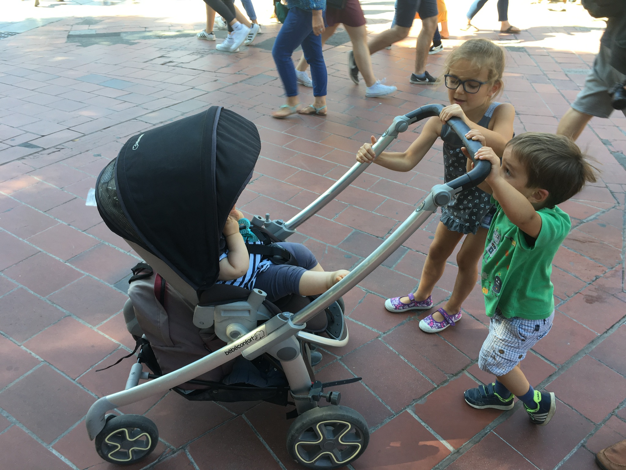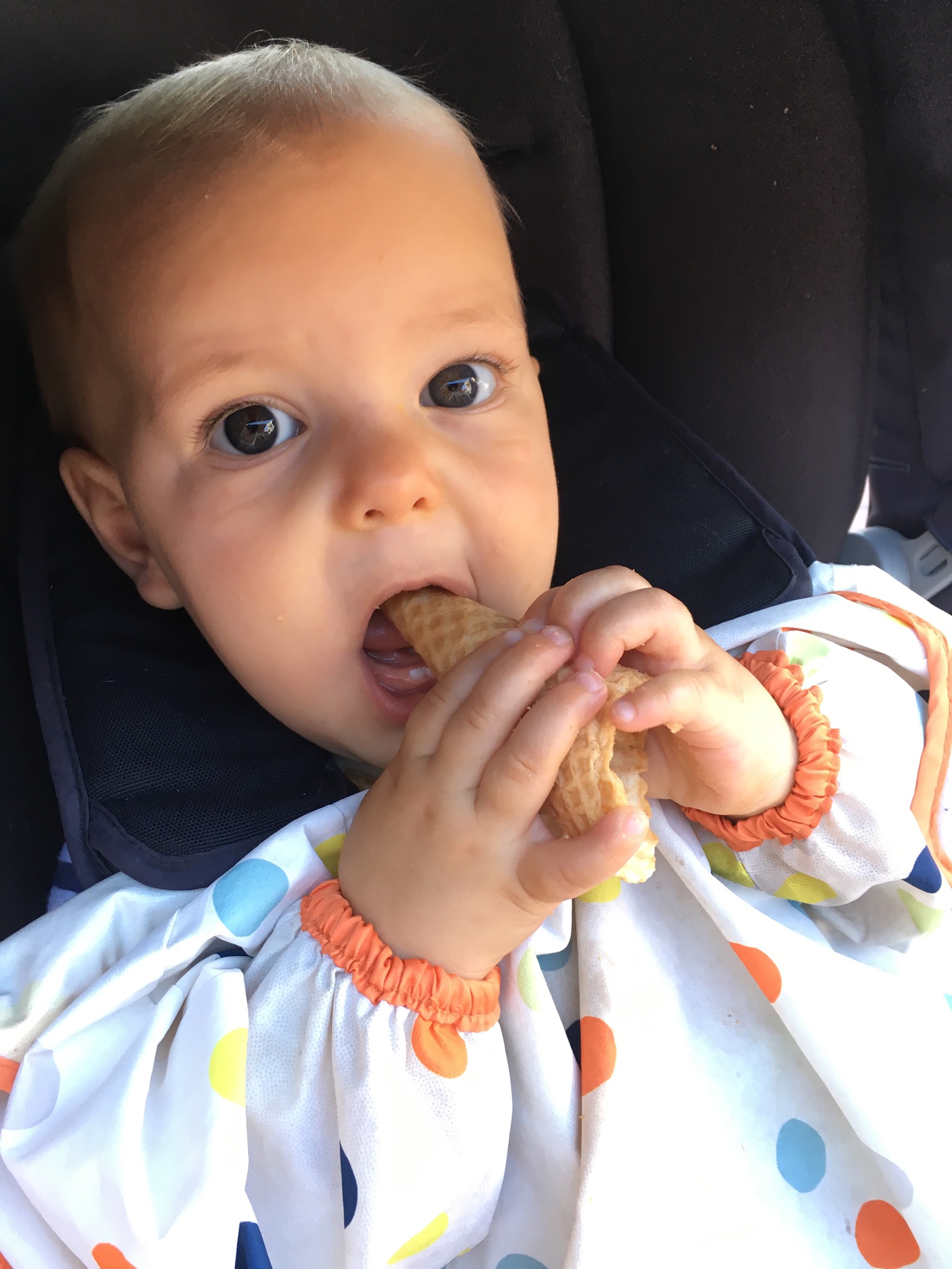 Cette après-midi, première glace en ville de la saison 🙂 Et Odile a mangé son premier cornet. Miam !