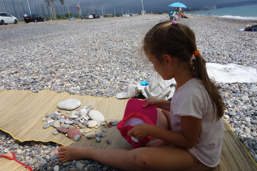 Ce matin, nous sommes allés acheter la partition de Lucie, avant de nous rendre à la plage pour un picnic. Les enfants ont bien aimé jouer dans les galets, et ils ont sélectionné leurs préférés pour les ramener à la maison.