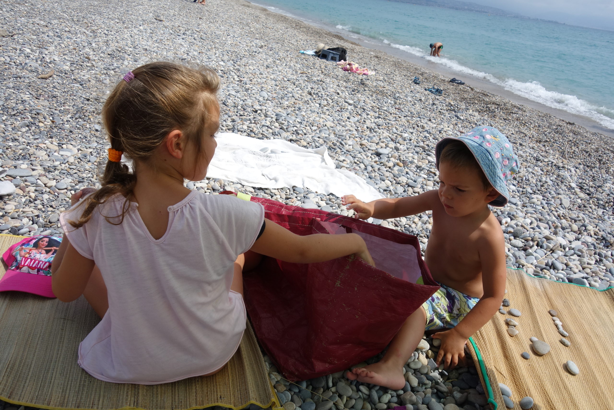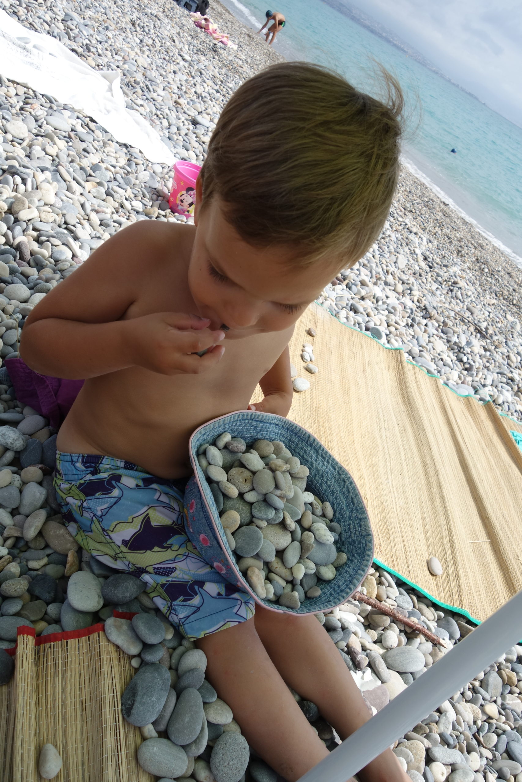 Ce matin, nous sommes allés acheter la partition de Lucie, avant de nous rendre à la plage pour un picnic. Les enfants ont bien aimé jouer dans les galets, et ils ont sélectionné leurs préférés pour les ramener à la maison.