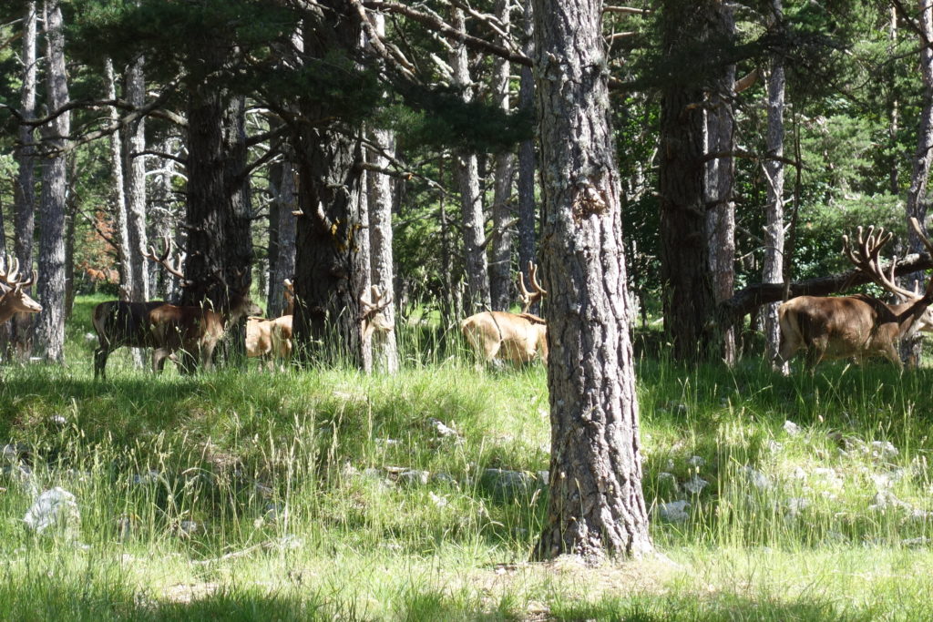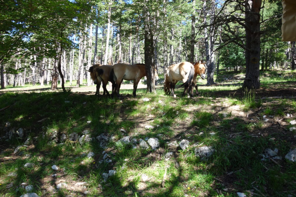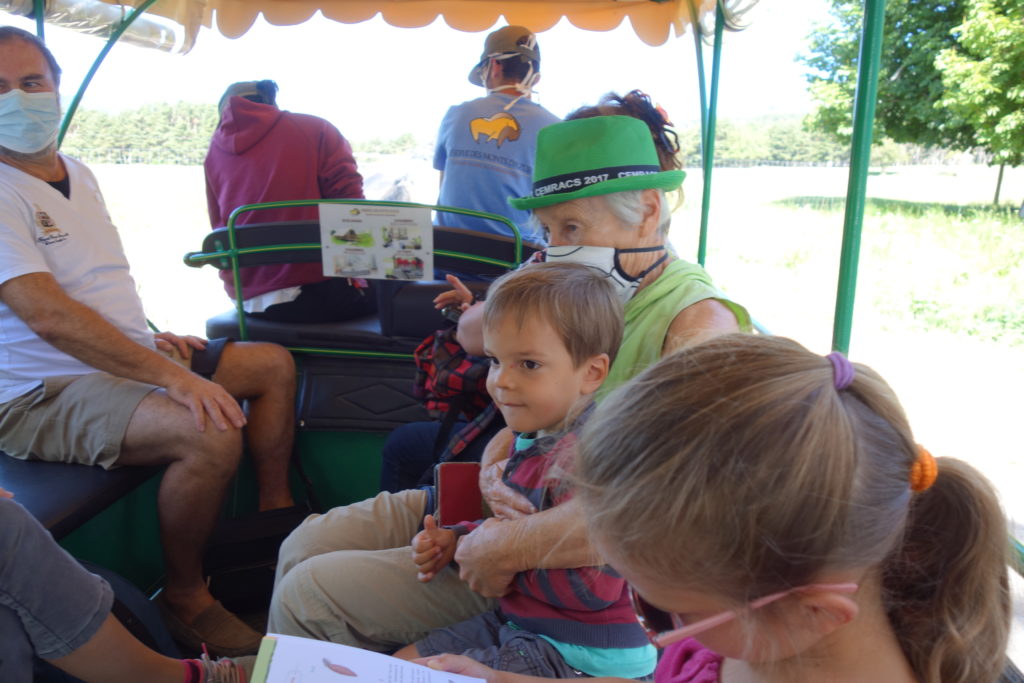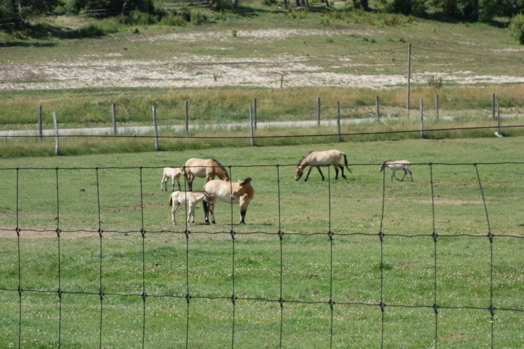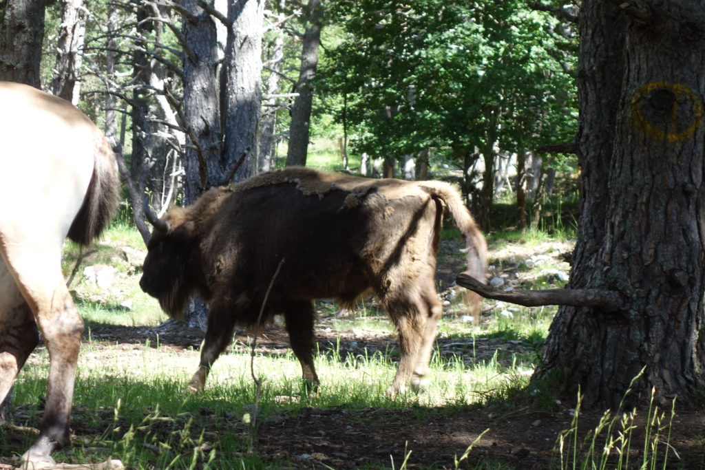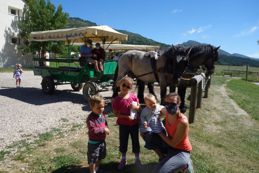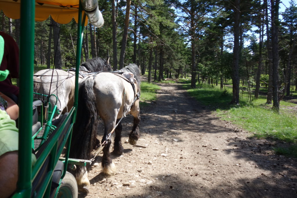 Ce matin, nous sommes allés à la reserve des Monts d’Azur faire un tour en calèche pour voir des bisons, des chevaux de Przewalski, des cerfs et des sangliers. Nous étions tirés par Sahara et Balzac (une jument et son fils), conduits par un stagiaire et sa monitrice. Les enfants ont été très sages sur la calèche, qui secouait énormément. Et nous avons vu tous les animaux promis. Les cerfs et leurs bois gigantesques nous ont beaucoup impressionnés, et nous avons adoré voir courir les marcassins derrière leur maman 🙂