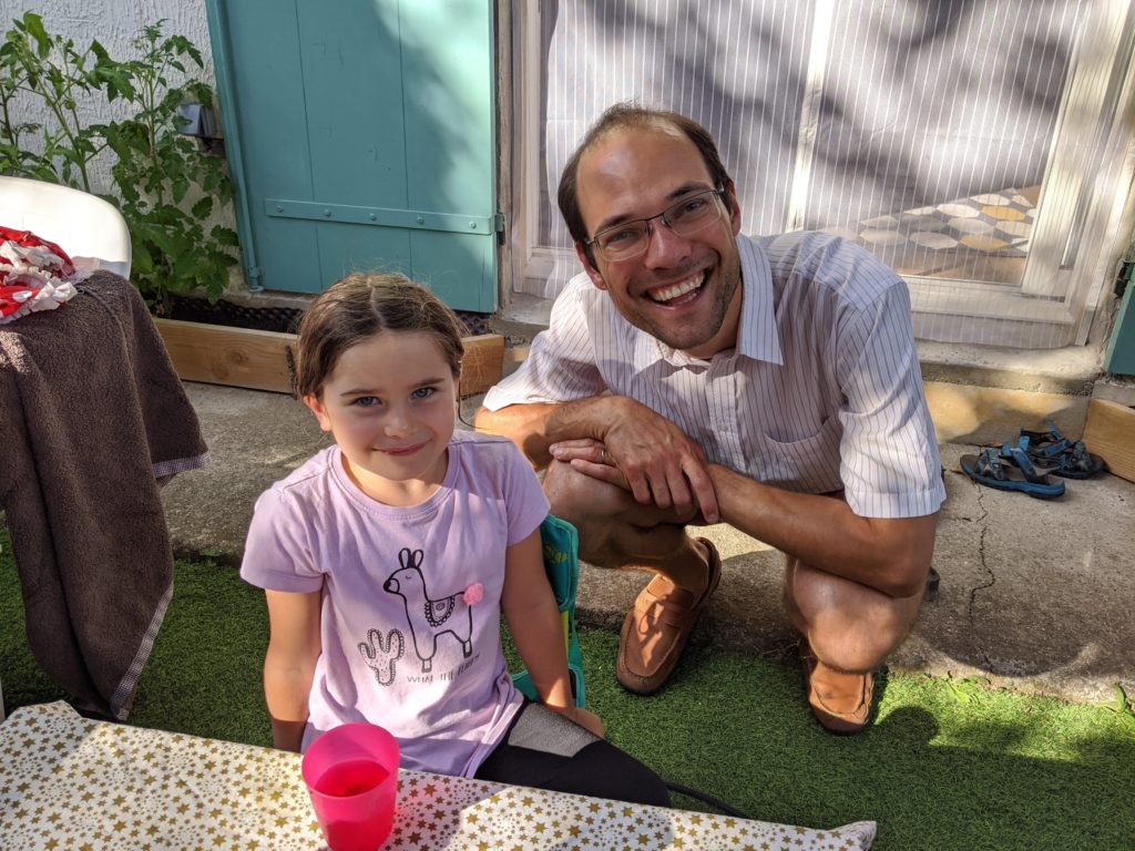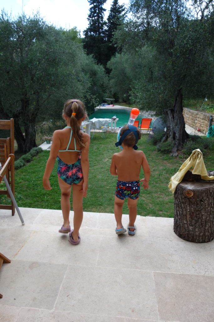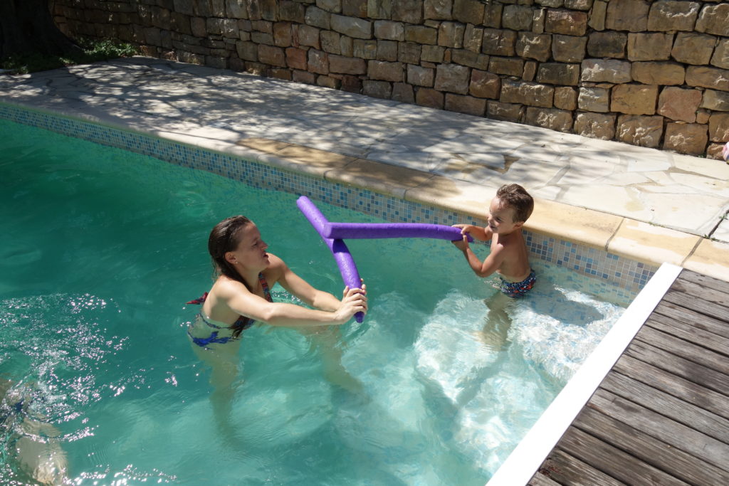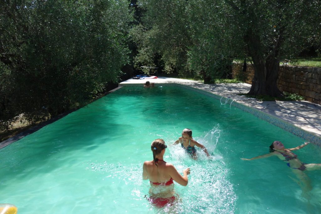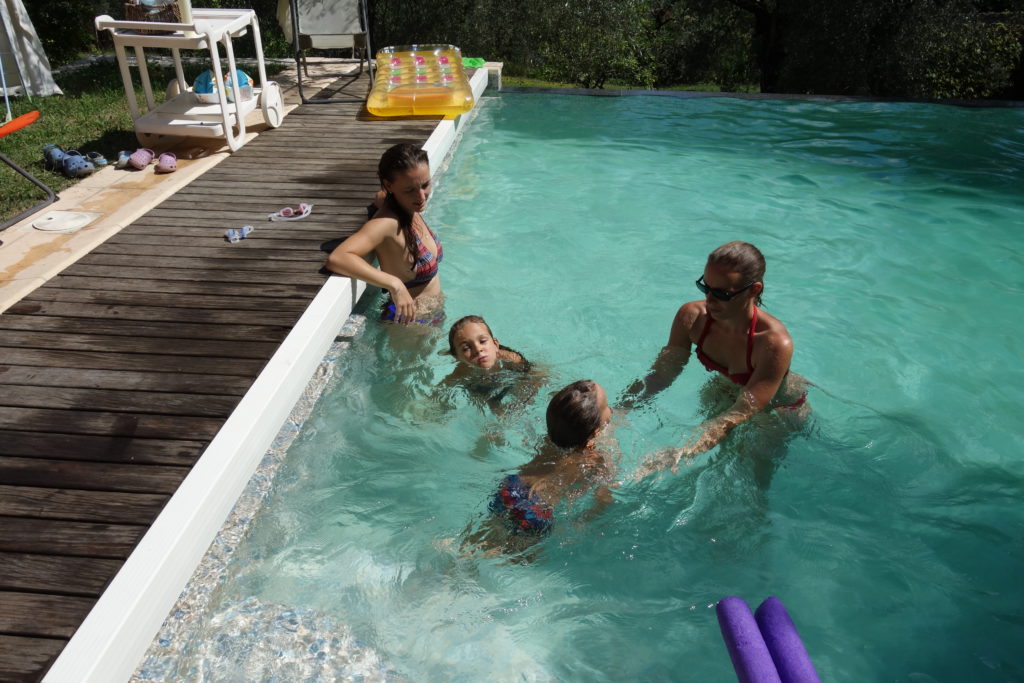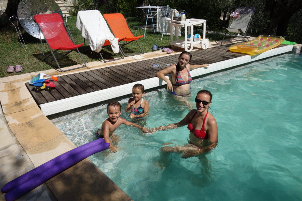 Jeanne a ensuite passé l’après midi avec nous au bord de la piscine. Les filles ont beaucoup aimé l’écouter jouer du violoncelle avec Grand-papa.