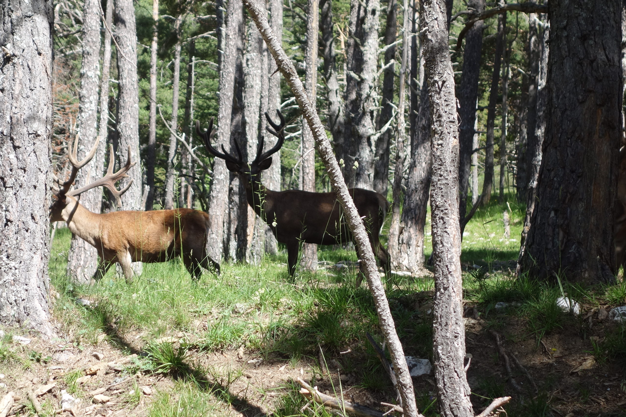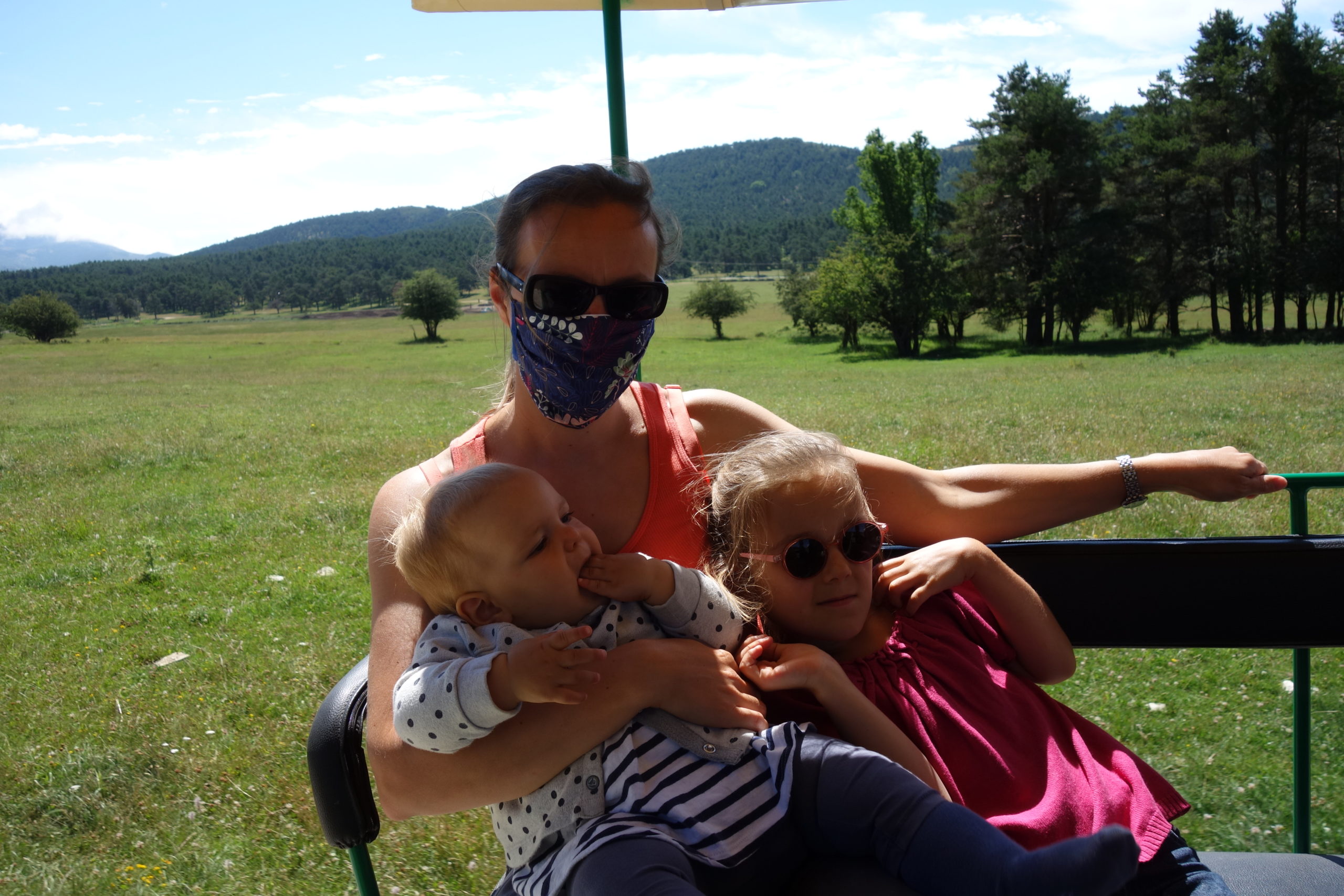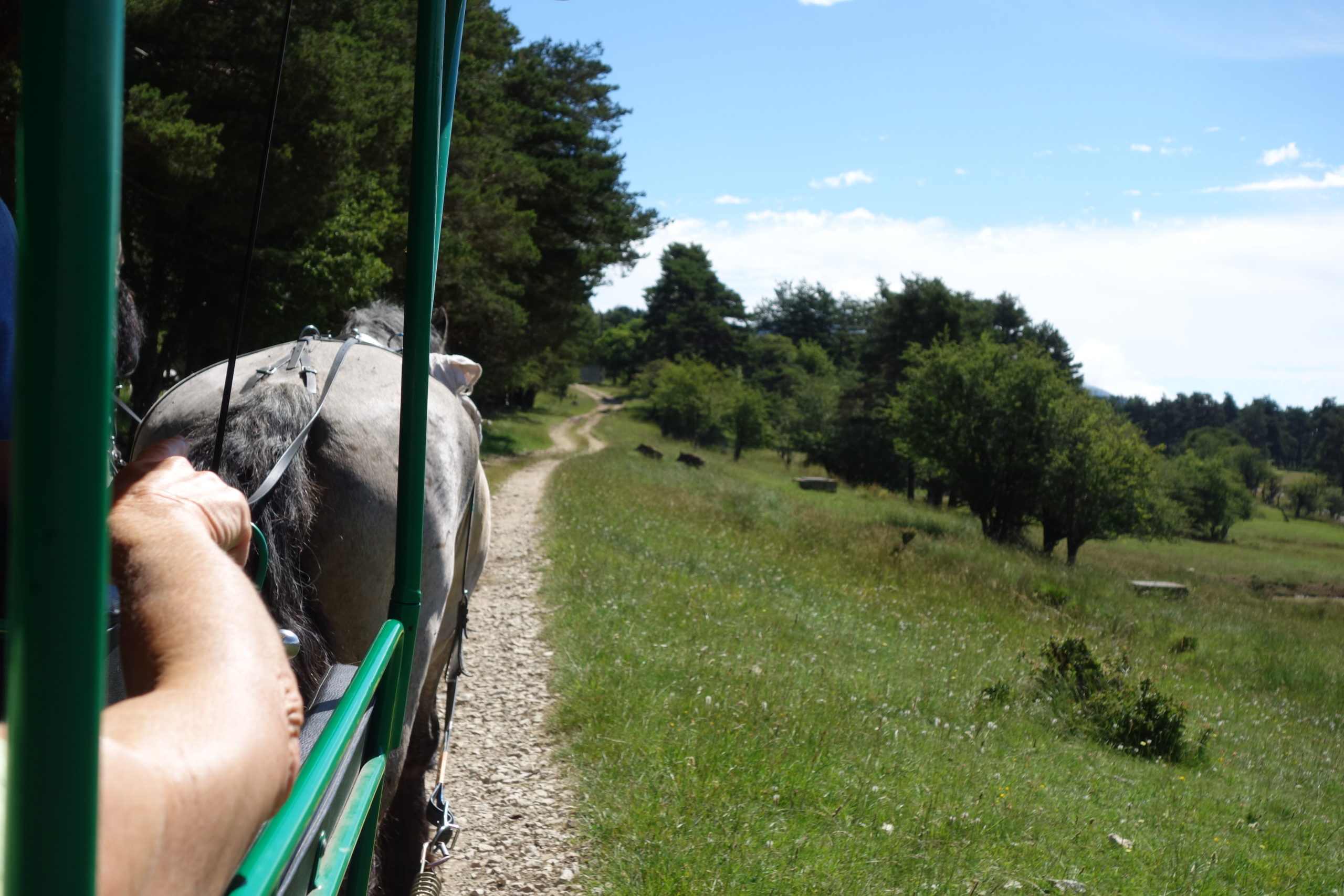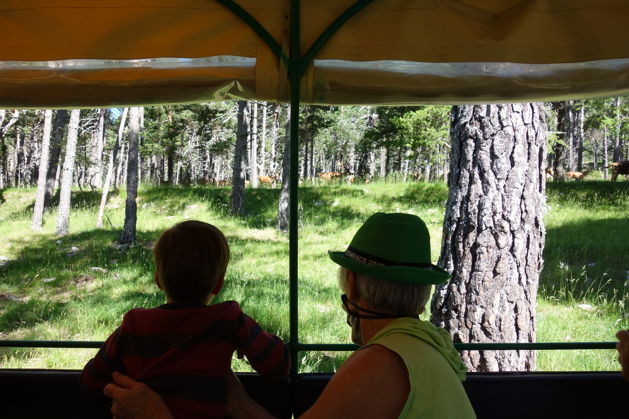 Ce matin, nous sommes allés à la reserve des Monts d’Azur faire un tour en calèche pour voir des bisons, des chevaux de Przewalski, des cerfs et des sangliers. Nous étions tirés par Sahara et Balzac (une jument et son fils), conduits par un stagiaire et sa monitrice. Les enfants ont été très sages sur la calèche, qui secouait énormément. Et nous avons vu tous les animaux promis. Les cerfs et leurs bois gigantesques nous ont beaucoup impressionnés, et nous avons adoré voir courir les marcassins derrière leur maman 🙂