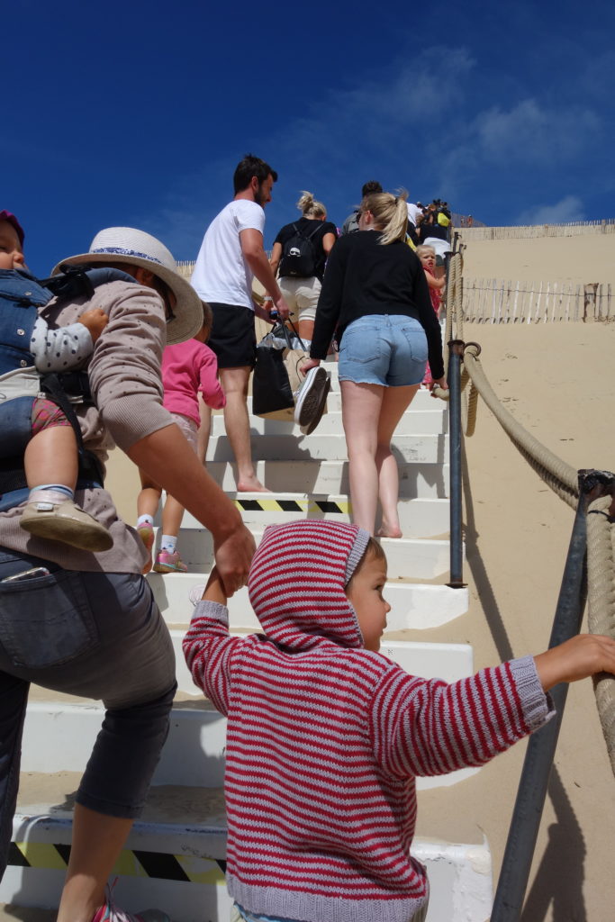 Réveil sous la pluie ce matin… Nous avons quand même décidé de maintenir notre projet d’aller grimper sur la dune du Pilat.
