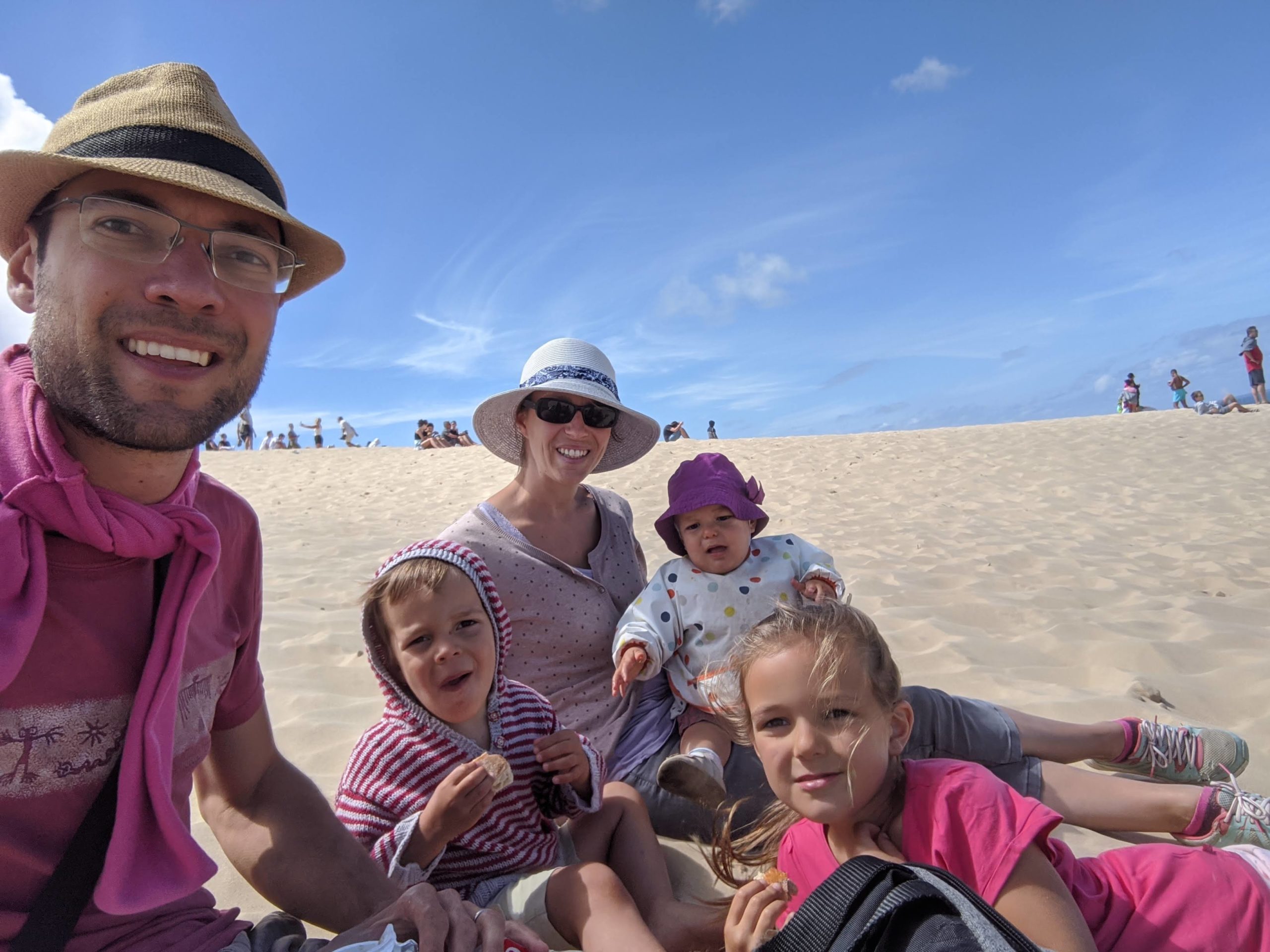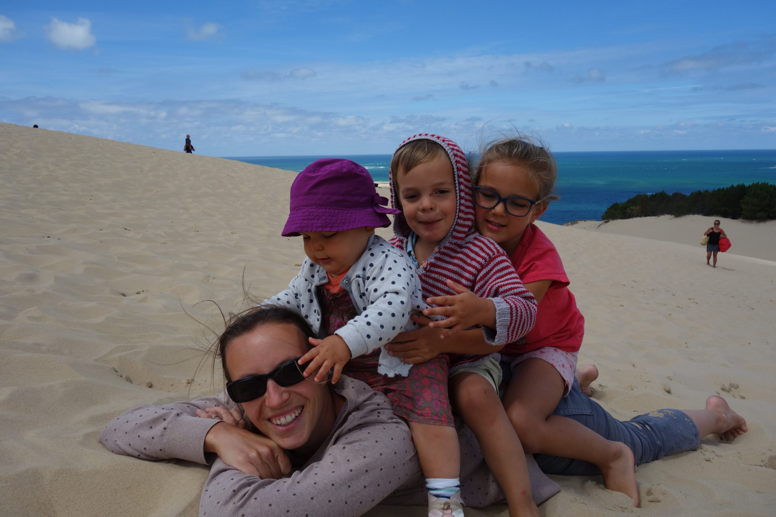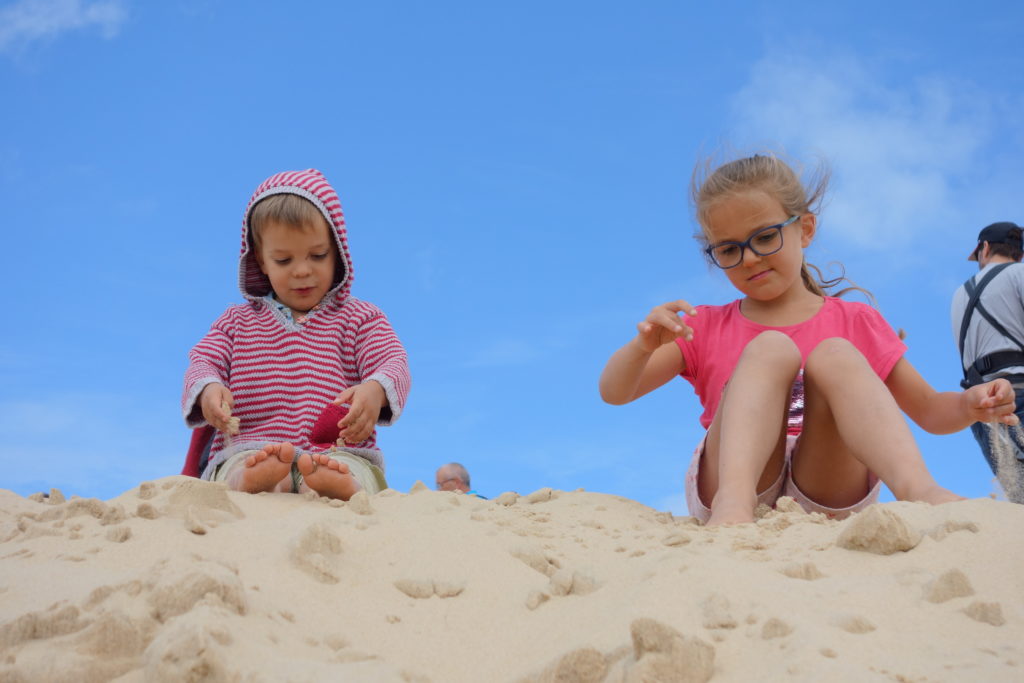 Nous avons passé un chouette moment au sommet de la dune. Galipettes, roulades, courses, pyramides et picnic au programme.