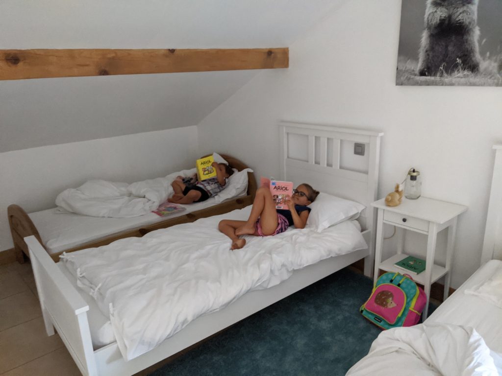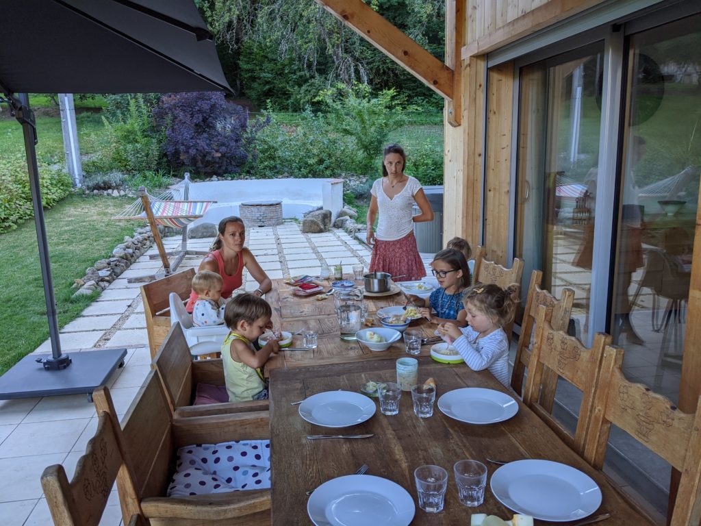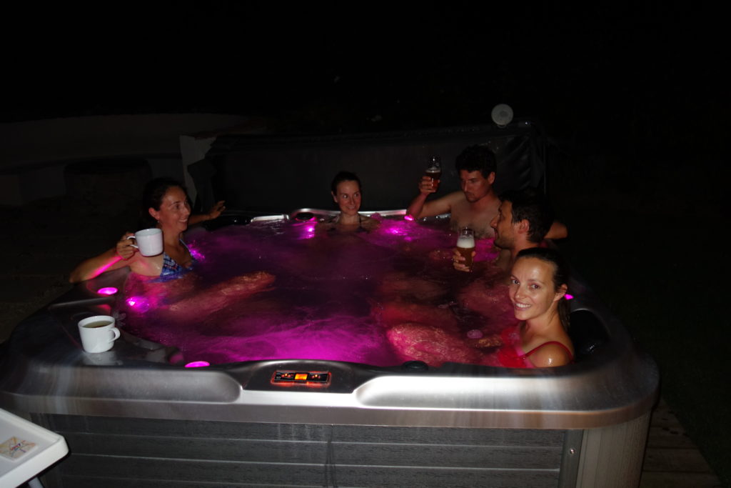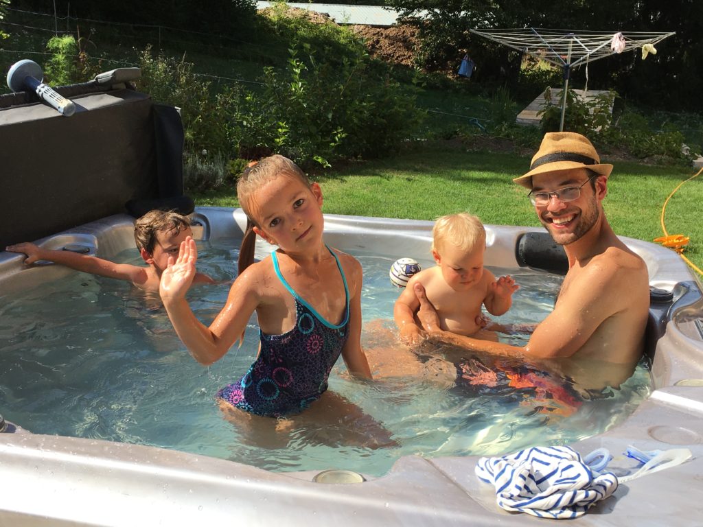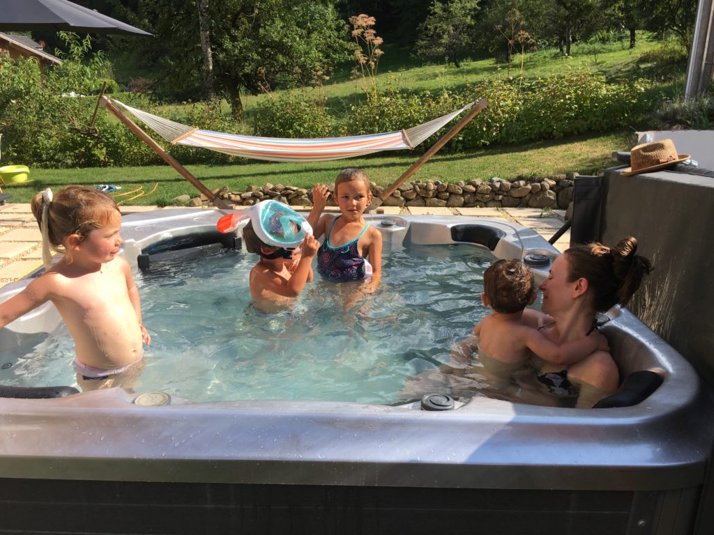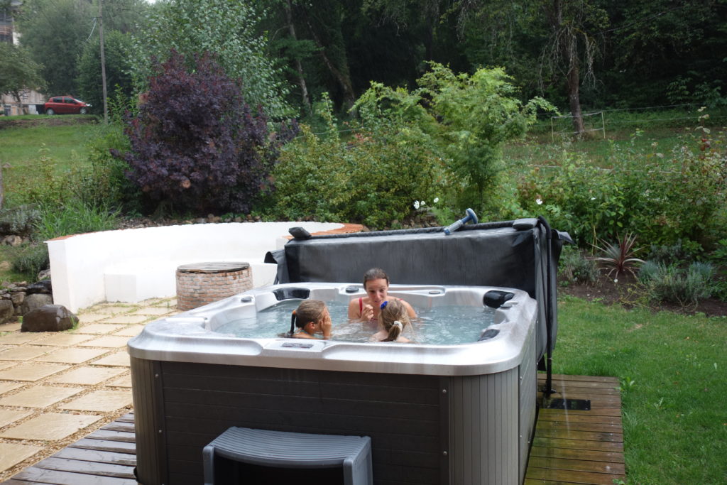 Et notre maison disposait également d’un jacuzzi extérieur, qui a fait le bonheur des petits et des grands, même sous la pluie. Notre confiture de mirabelles oubliée dans la maison a même débordé pendant que nous étions tous dans le jacuzzi !