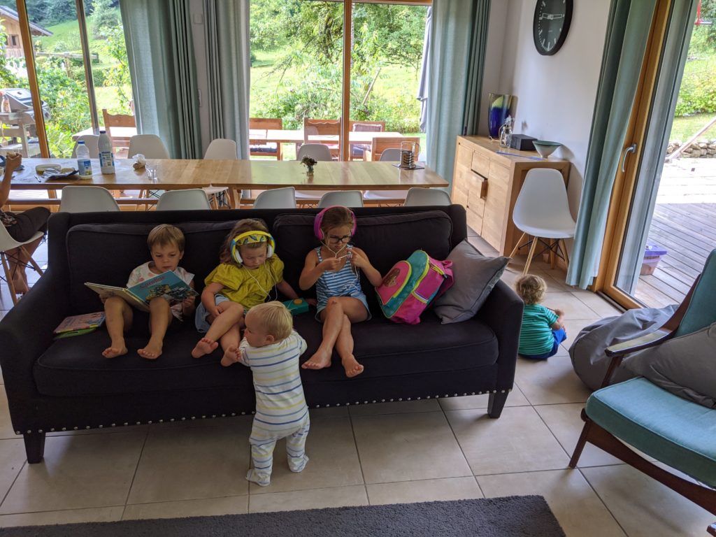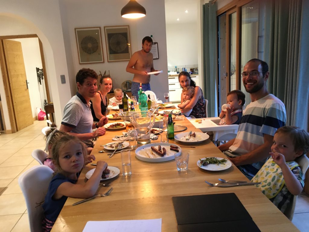 Nous avons passé une semaine avec Eliott, Romain, Isa, Antonin, Ariane, Pierre et Morgane. Nous avions loué une grande maison confortable à Samoëns. Les petits et les grands ont bien profité de l’intérieur de la maison. Antonin a notamment montré une affection un peu débordante pour Odile, qui était assez impassible.