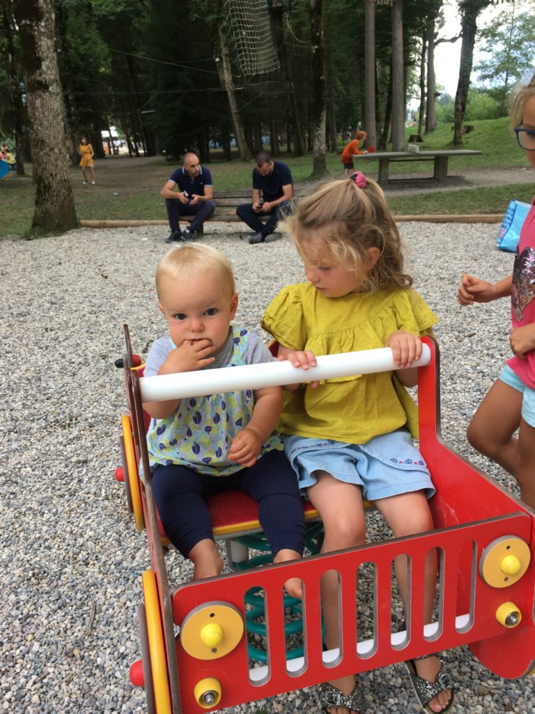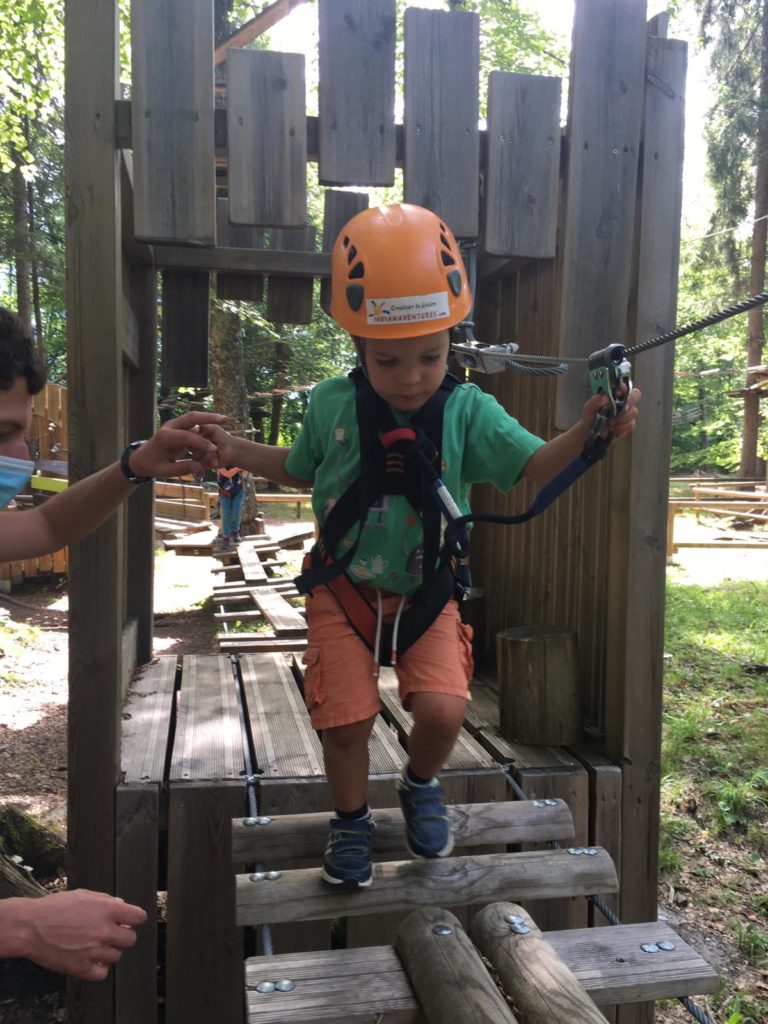 Le mardi 11 août, nous avons amené les grands enfants à l’accrobranche de la base de loisirs du lac. Lucie a pu faire un parcours de grande, Ariane et Émile sont restés sur un parcours près du sol, qui leur a bien suffi. Puis Pierre, Isa et Thomas sont allés l’après-midi commencer un accrobranche, interrompu par une grosse pluie.