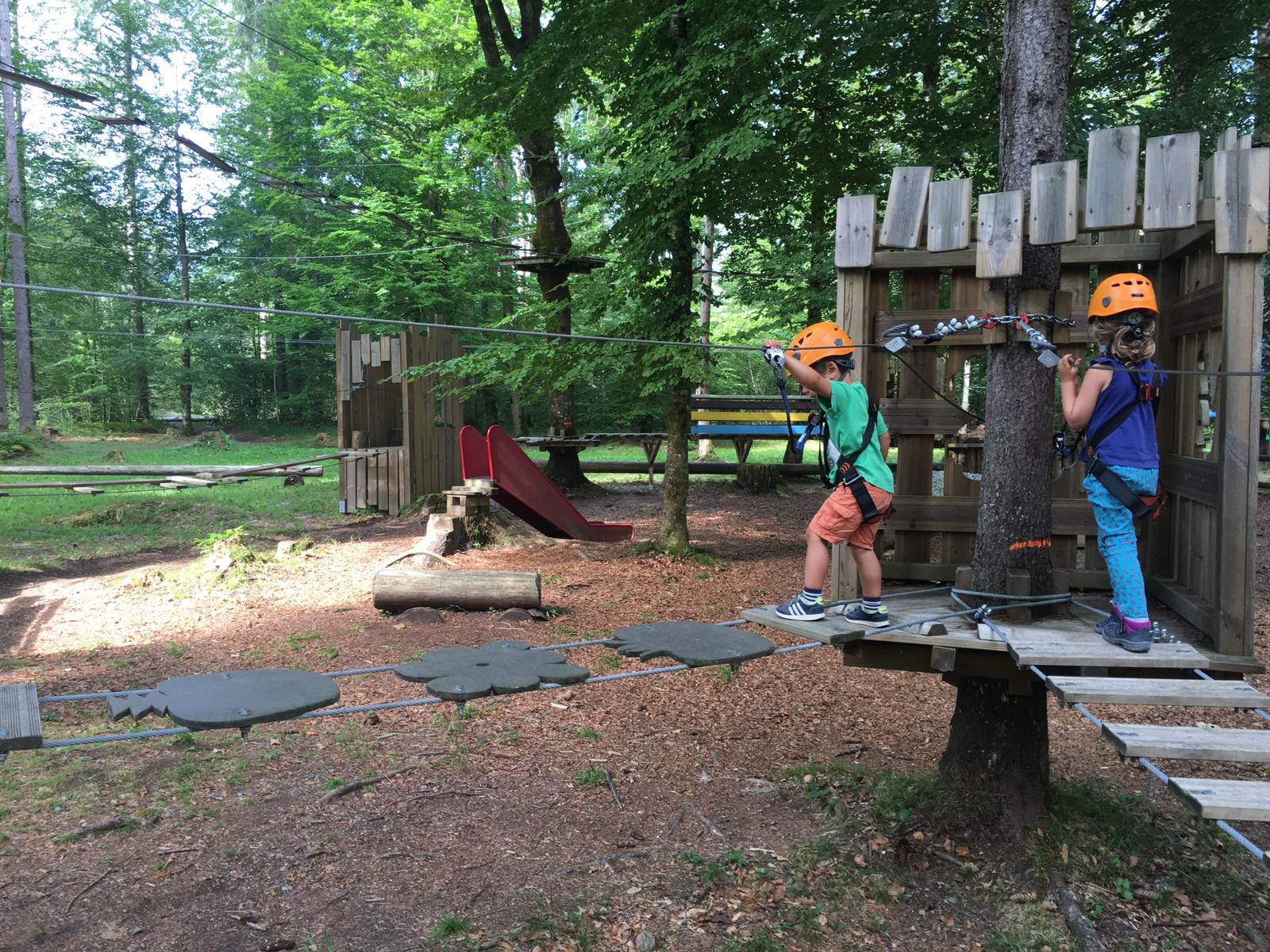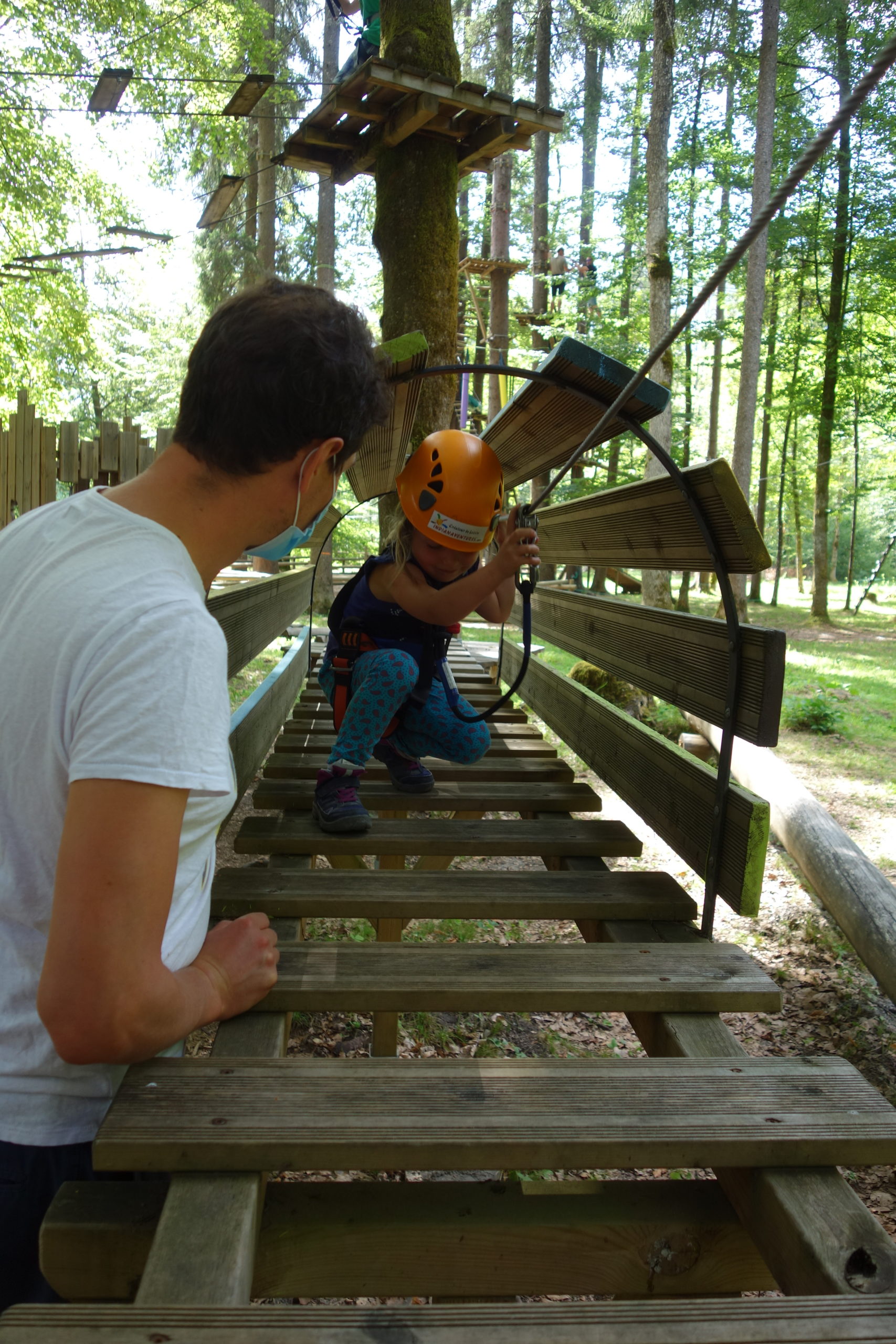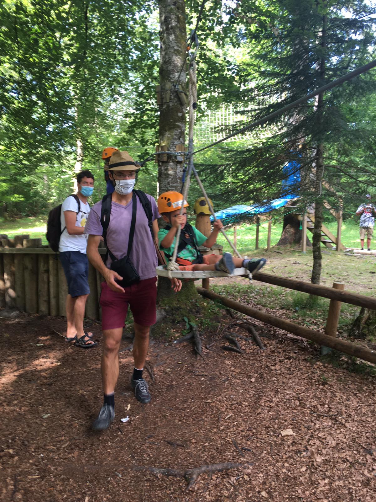 Le mardi 11 août, nous avons amené les grands enfants à l’accrobranche de la base de loisirs du lac. Lucie a pu faire un parcours de grande, Ariane et Émile sont restés sur un parcours près du sol, qui leur a bien suffi. Puis Pierre, Isa et Thomas sont allés l’après-midi commencer un accrobranche, interrompu par une grosse pluie.