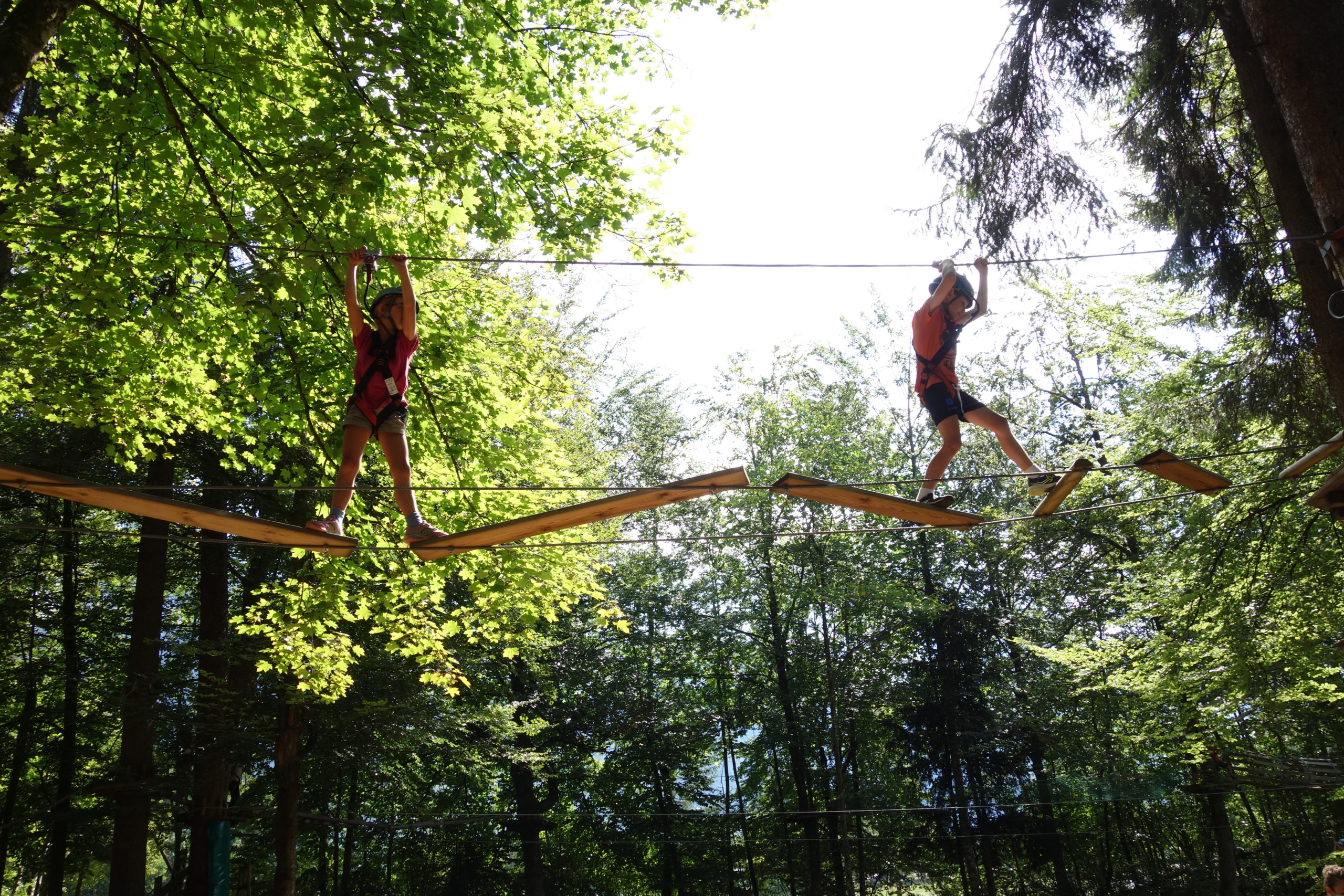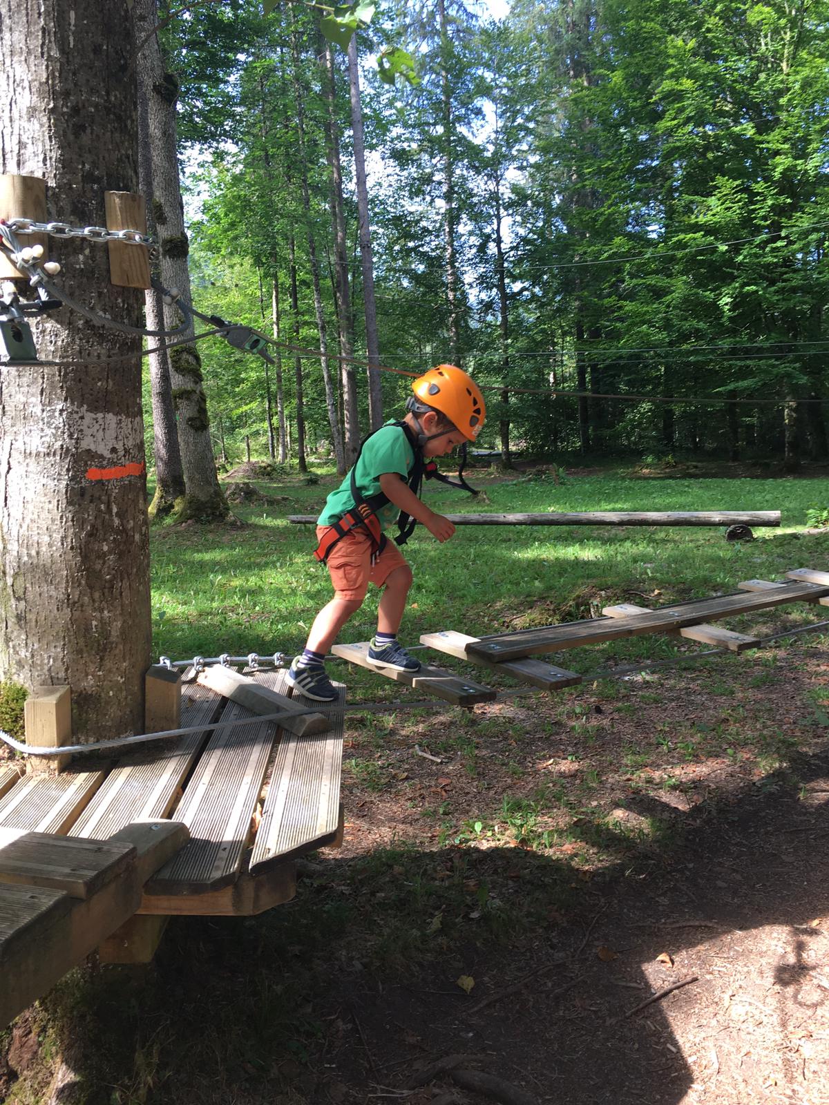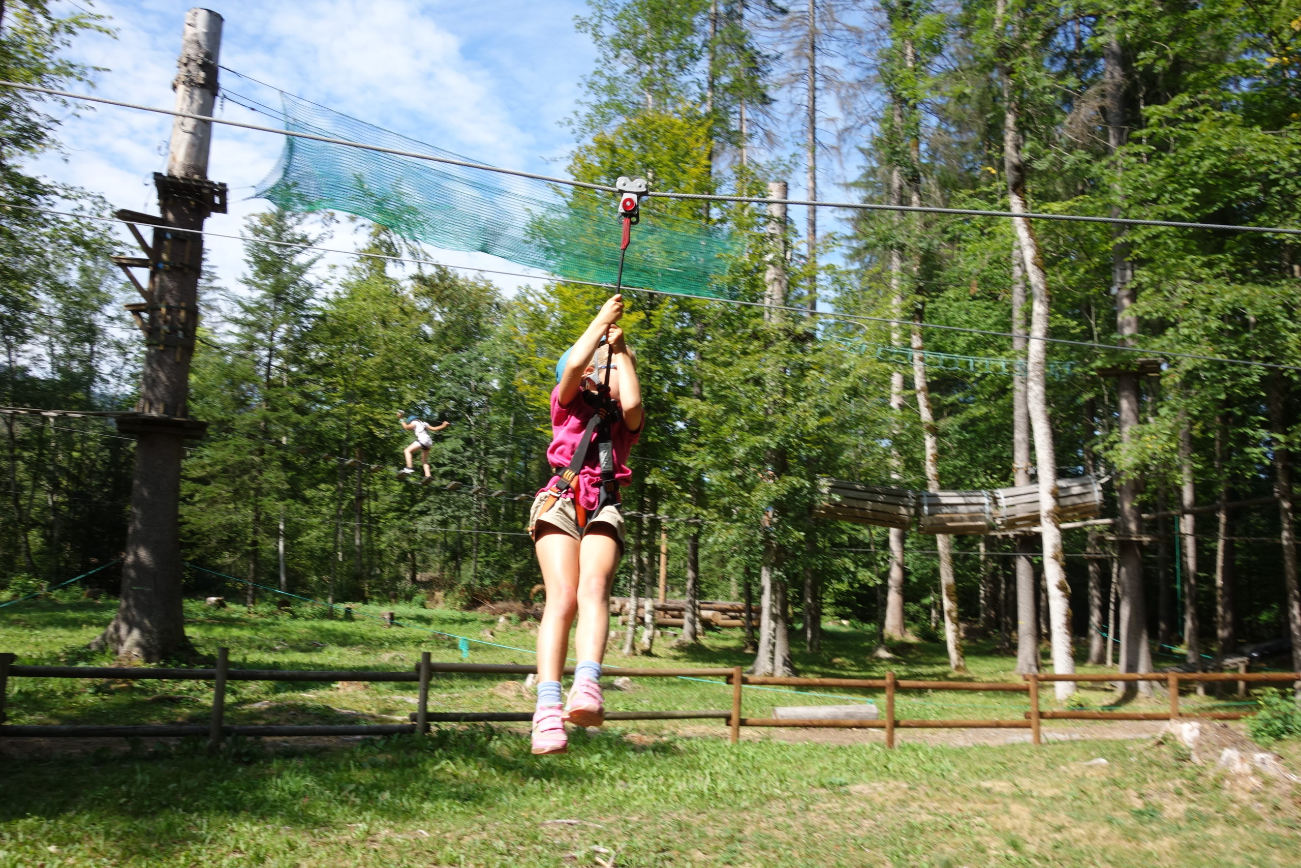 Le mardi 11 août, nous avons amené les grands enfants à l’accrobranche de la base de loisirs du lac. Lucie a pu faire un parcours de grande, Ariane et Émile sont restés sur un parcours près du sol, qui leur a bien suffi. Puis Pierre, Isa et Thomas sont allés l’après-midi commencer un accrobranche, interrompu par une grosse pluie.