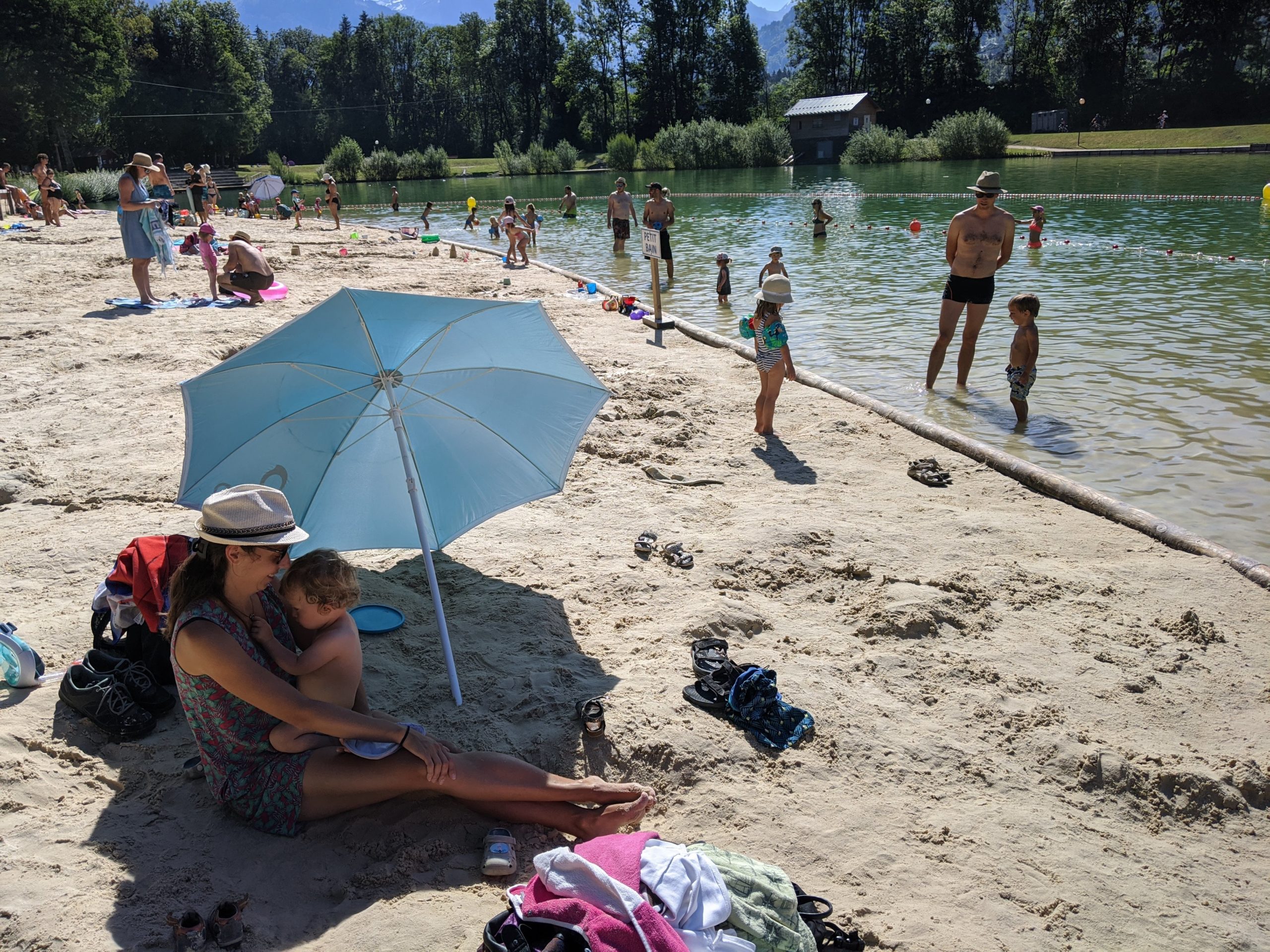 Côté balades, le samedi 8 août nous sommes allés sur la plage au bord du lac bleu de Morillon :