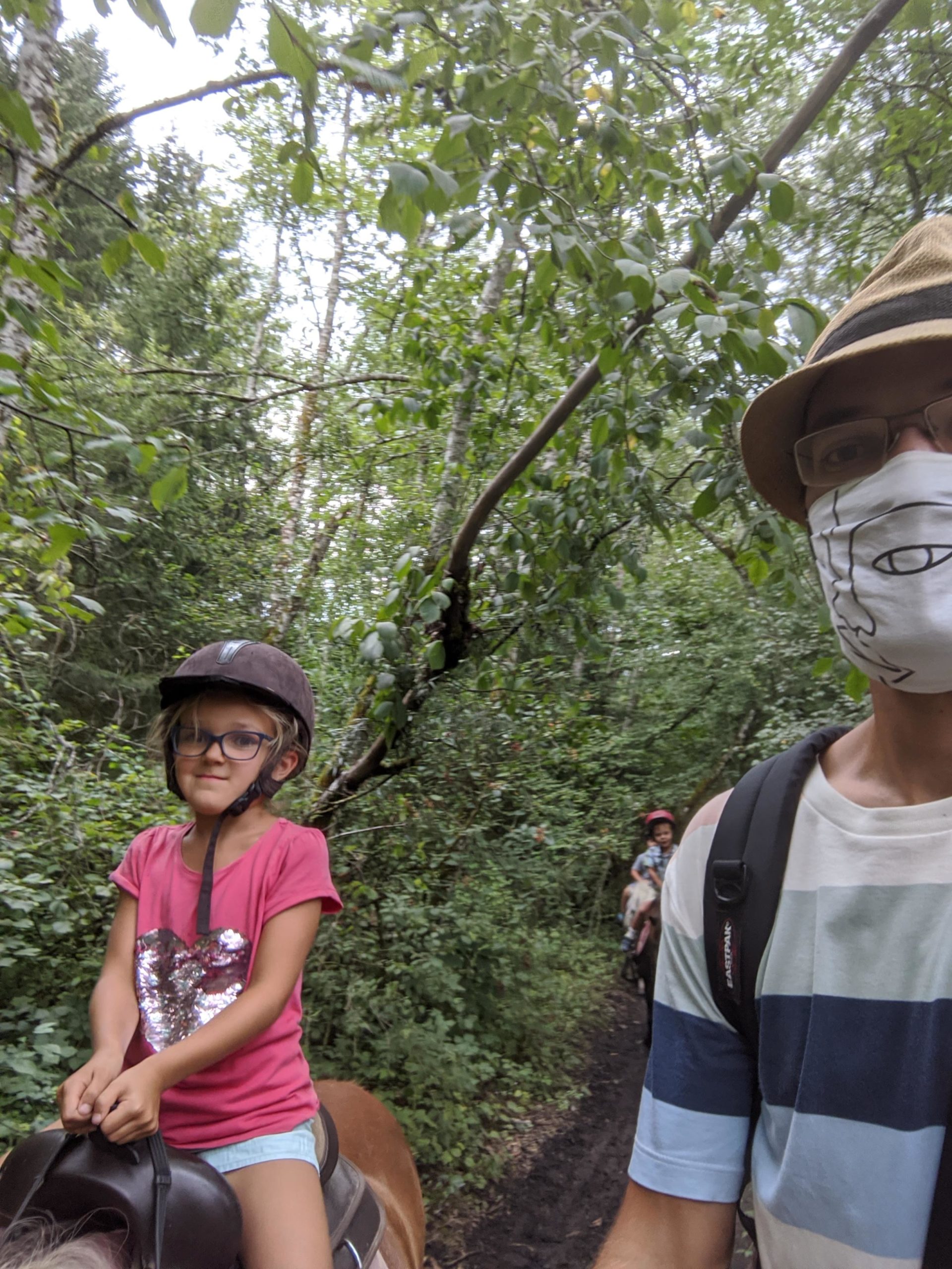 Et le dernier jour, Lucie et Émile ont pu faire une balade à poney autour du lac :