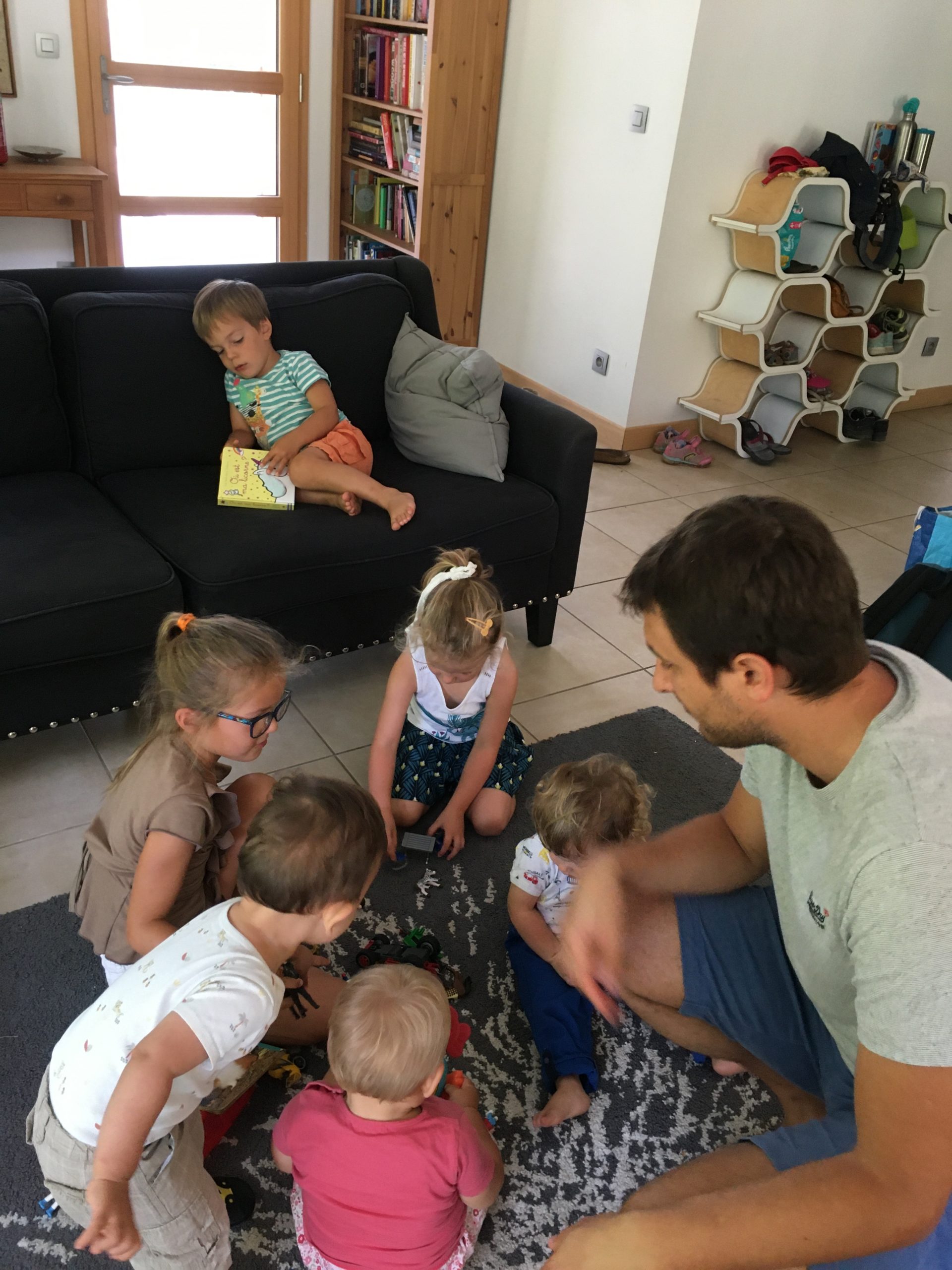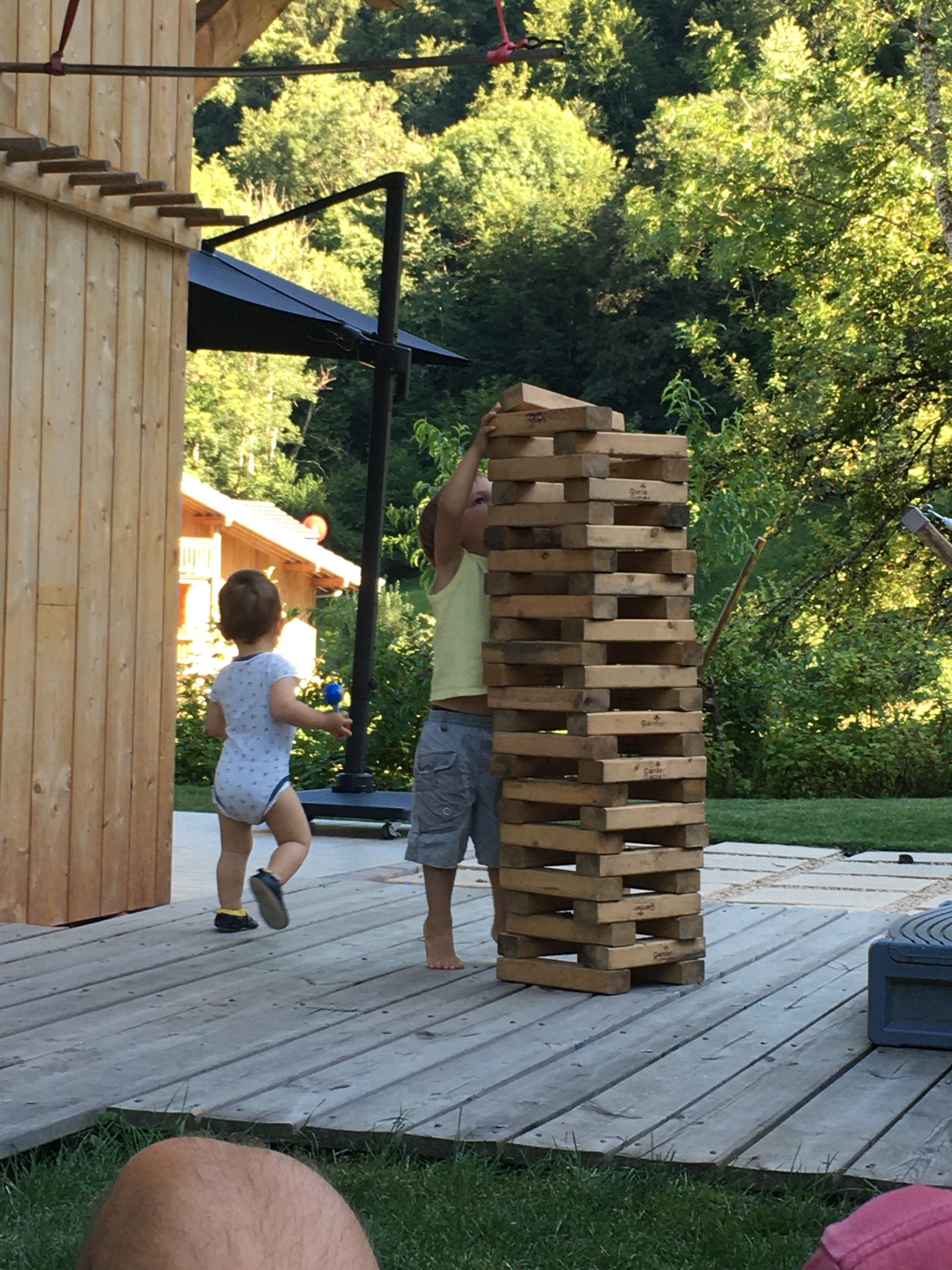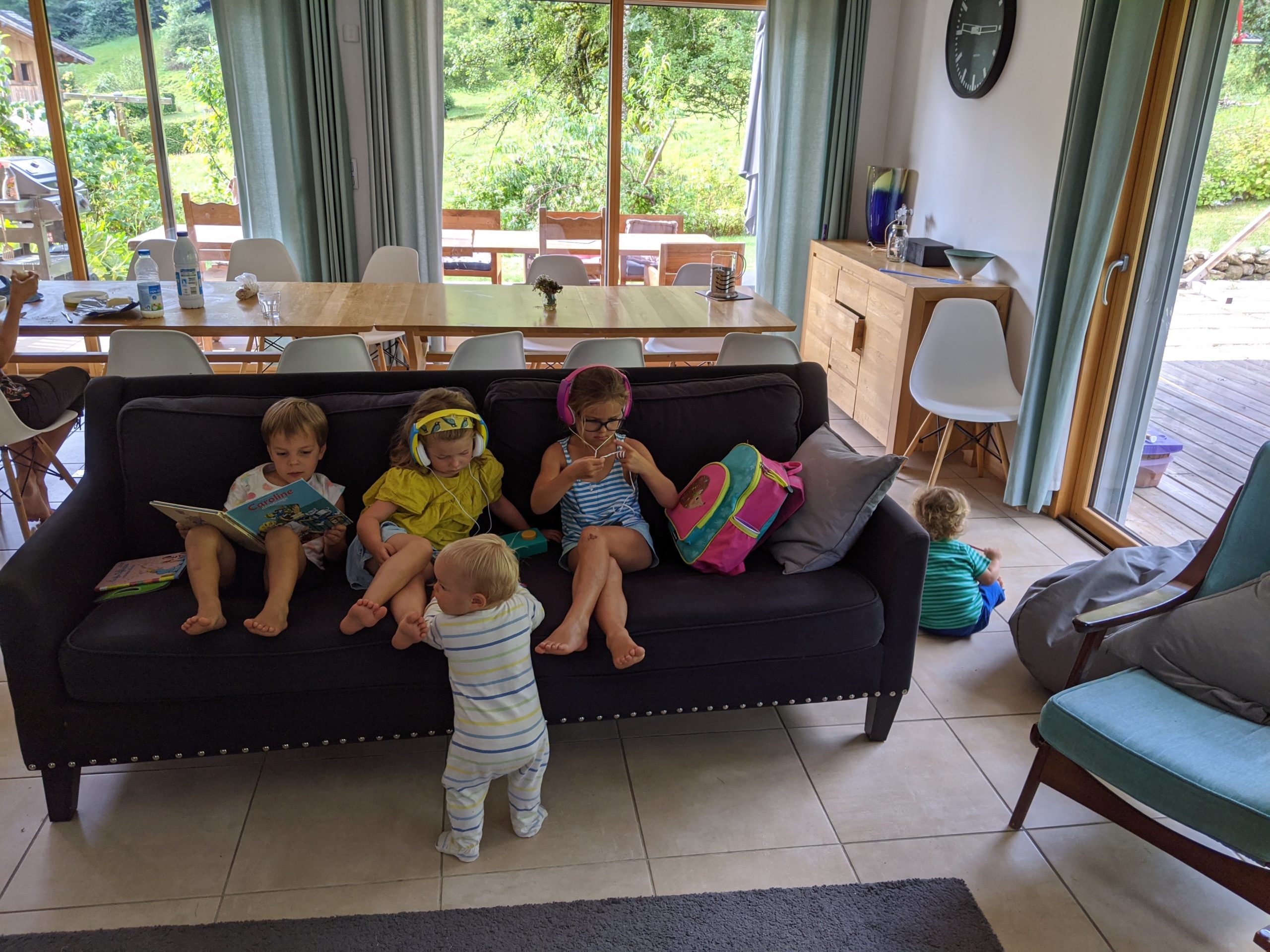 Nous avons passé une semaine avec Eliott, Romain, Isa, Antonin, Ariane, Pierre et Morgane. Nous avions loué une grande maison confortable à Samoëns. Les petits et les grands ont bien profité de l’intérieur de la maison. Antonin a notamment montré une affection un peu débordante pour Odile, qui était assez impassible.