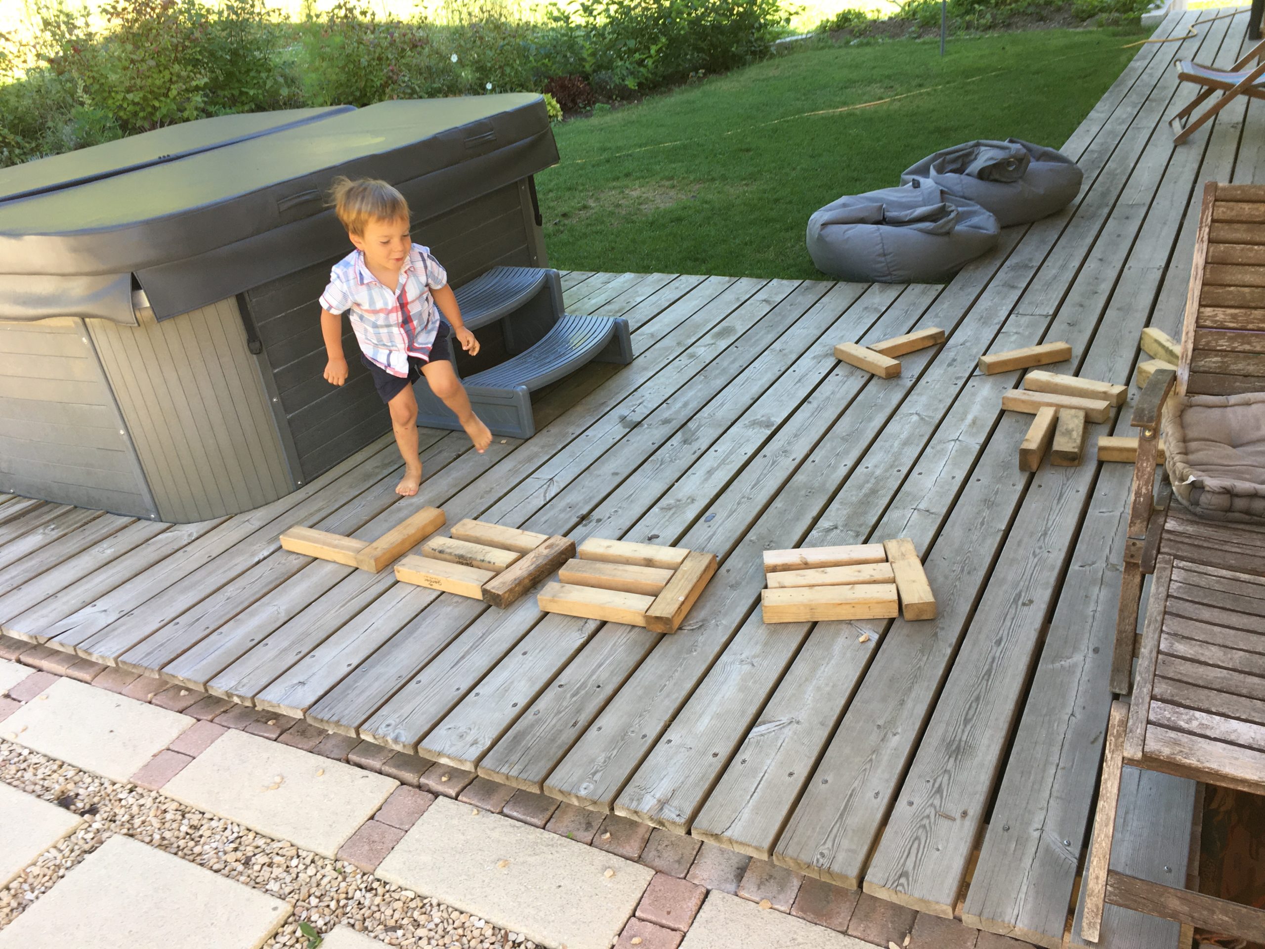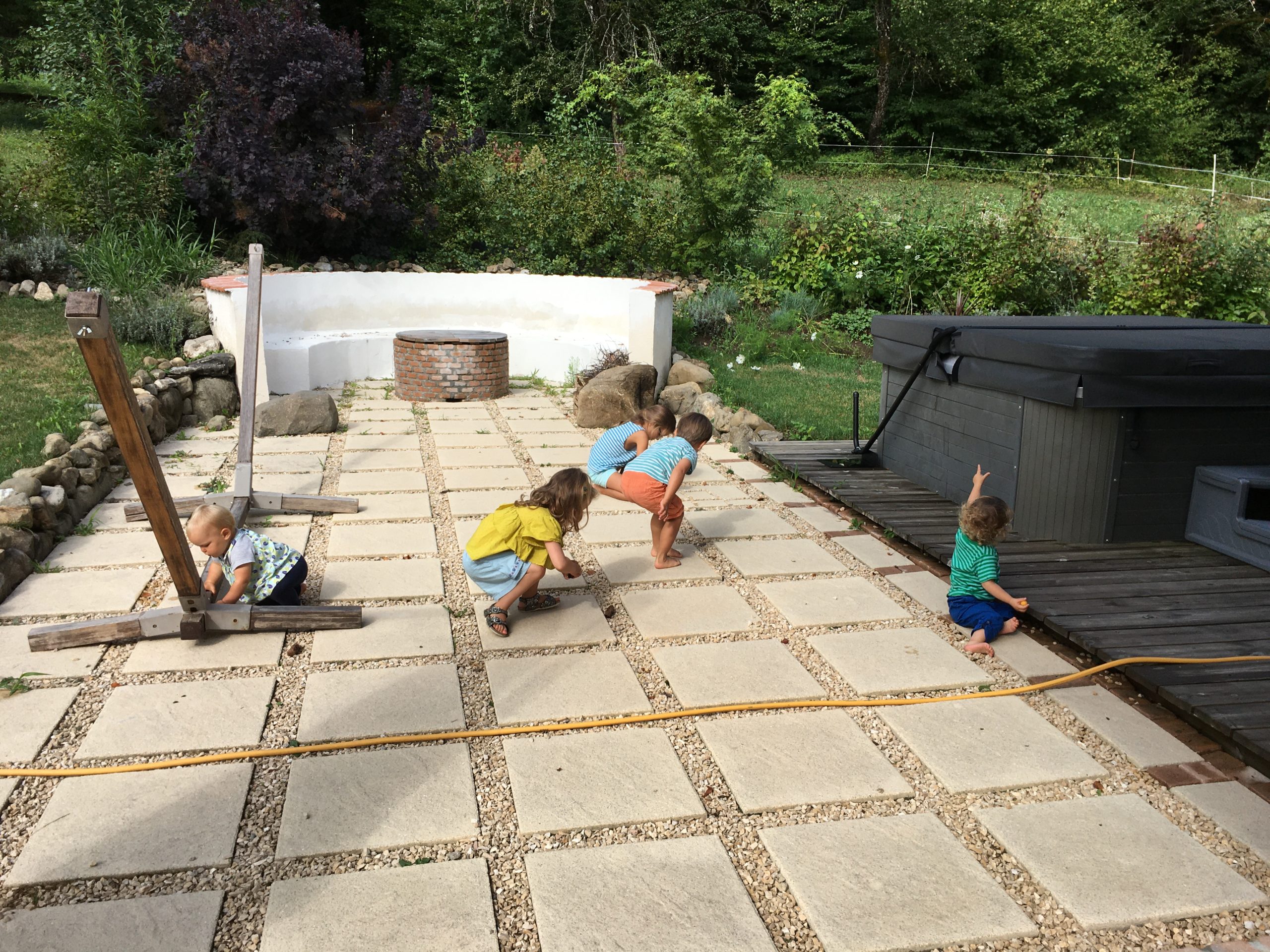 Et notre maison disposait également d’un jacuzzi extérieur, qui a fait le bonheur des petits et des grands, même sous la pluie. Notre confiture de mirabelles oubliée dans la maison a même débordé pendant que nous étions tous dans le jacuzzi !