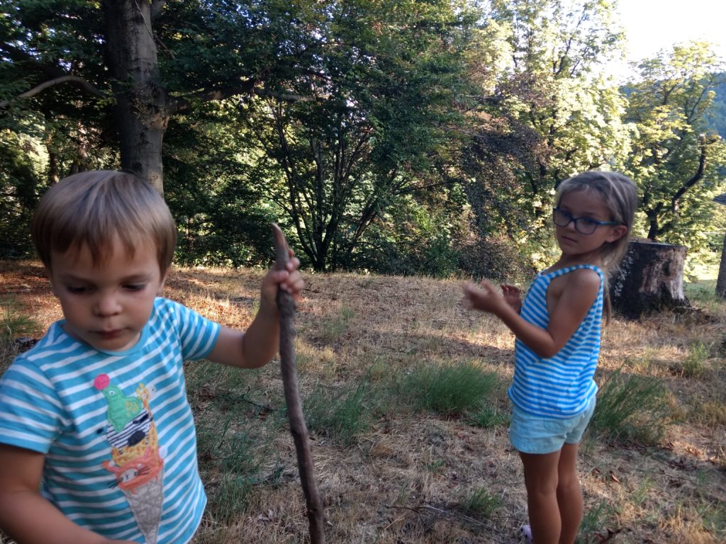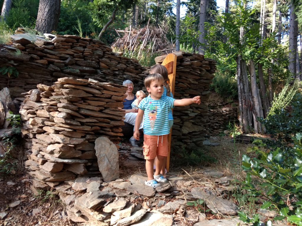Nous ne sommes pas restés longtemps, juste le temps d’explorer un peu la nouvelle cabane, avec une porte, mais sans toit, et le temps de dîner tous ensemble.