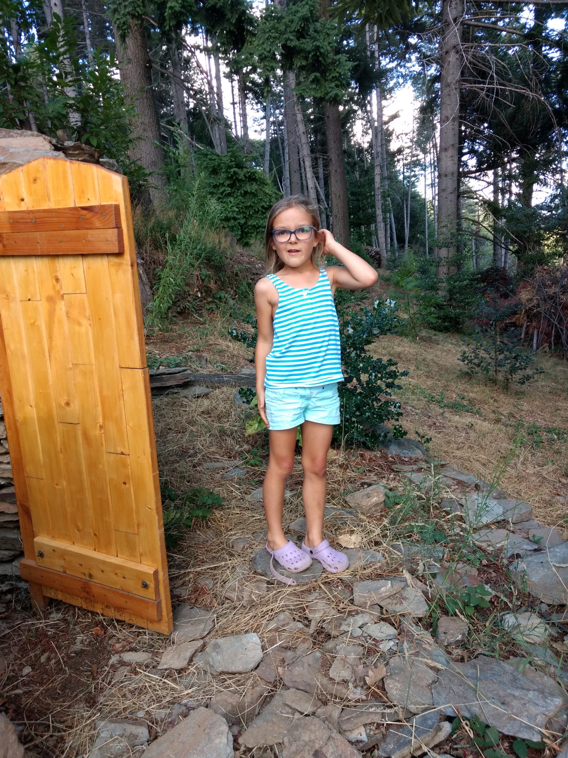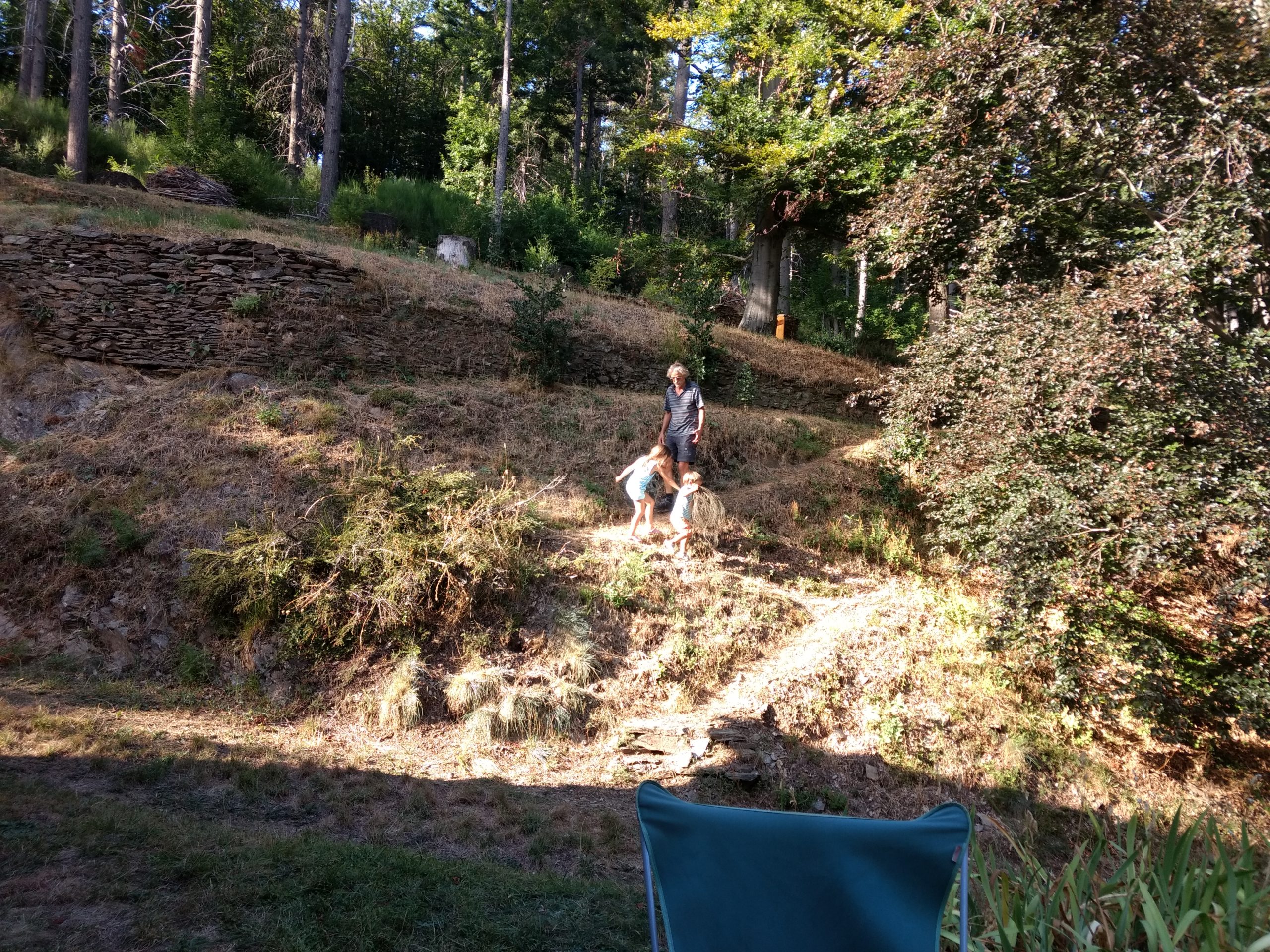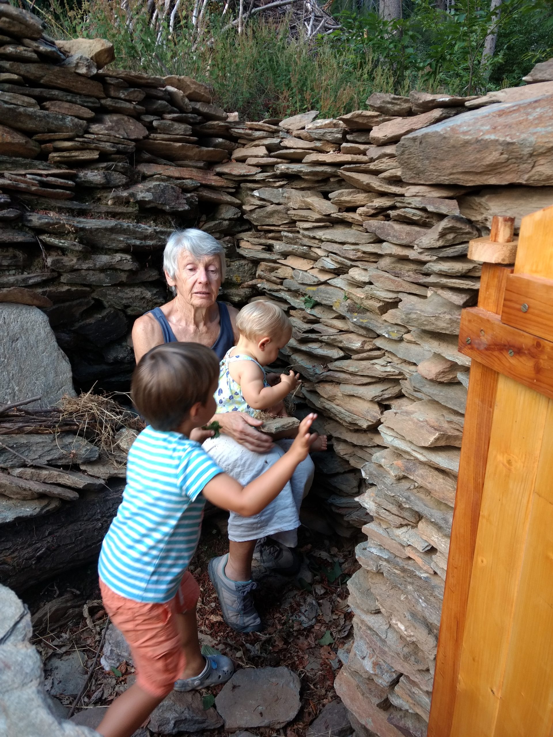 Nous ne sommes pas restés longtemps, juste le temps d’explorer un peu la nouvelle cabane, avec une porte, mais sans toit, et le temps de dîner tous ensemble.